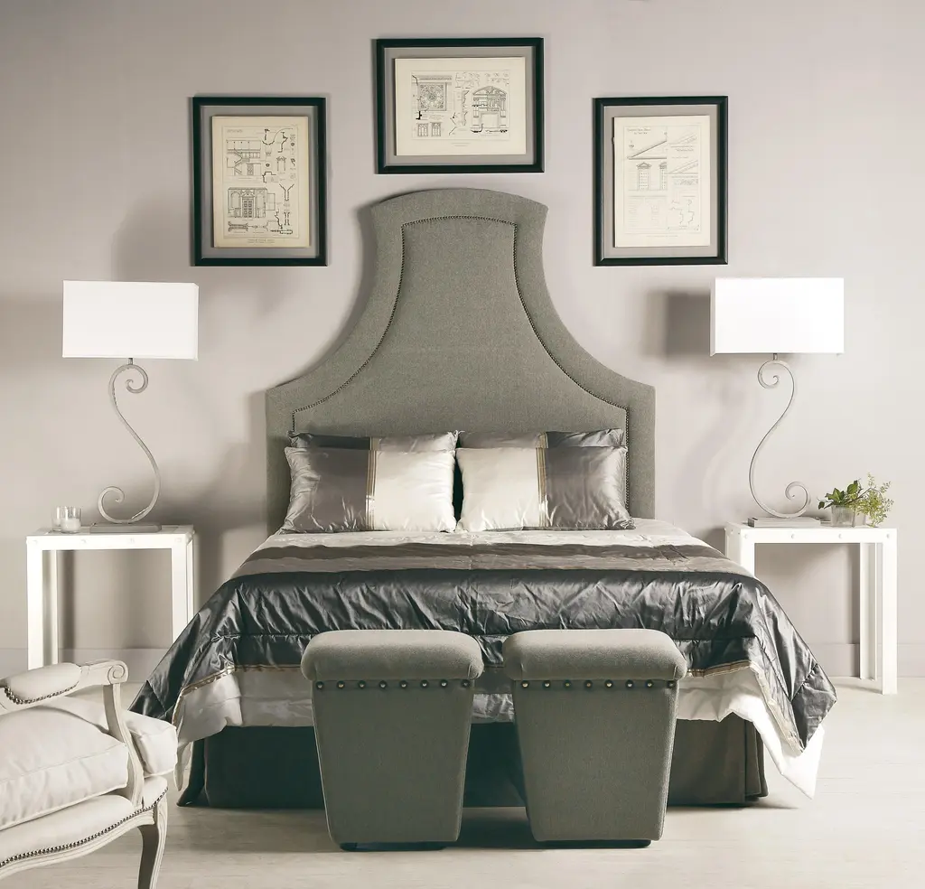 Designed by Isabella Costantini and elegantly crafted by artisans, the Emma stool features contrasting lines: a rectangular structure and soft curved top with a studded border. Signed by Maker,Signed by Maker