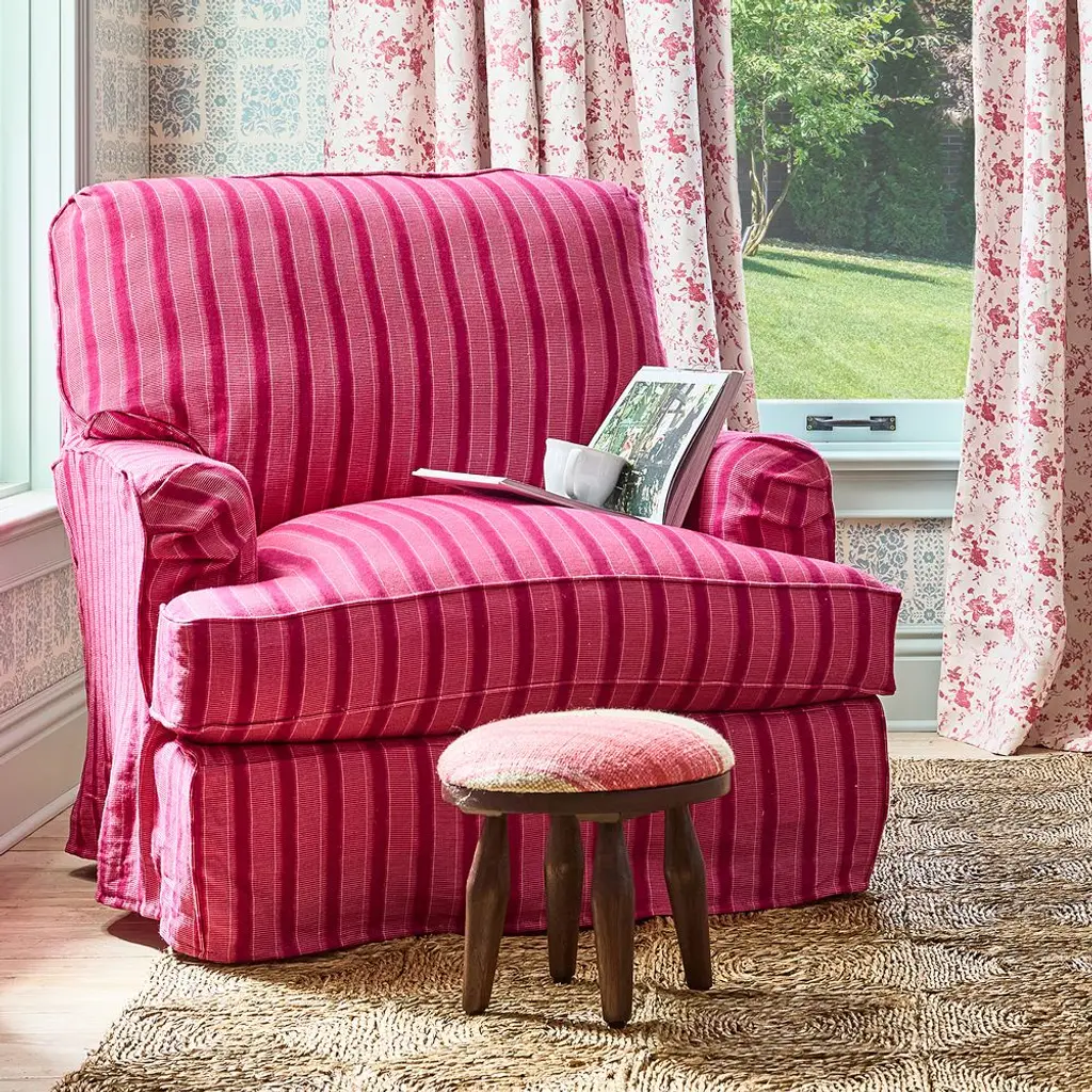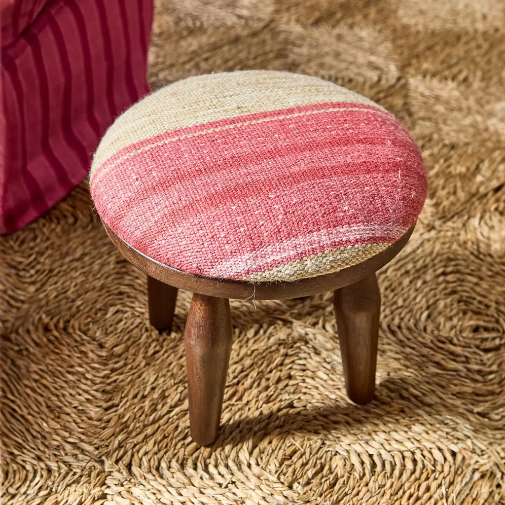 A little lift. Upholstered in a recycled poly kilim rug, this FSC®-certified stool can be a footrest, extra seat, or cushioned step for a child or pet. Tapered solid wood legs wear beautifully over time.