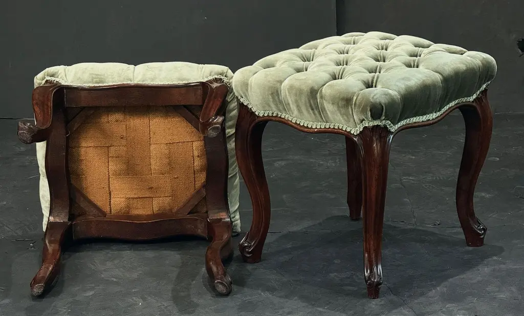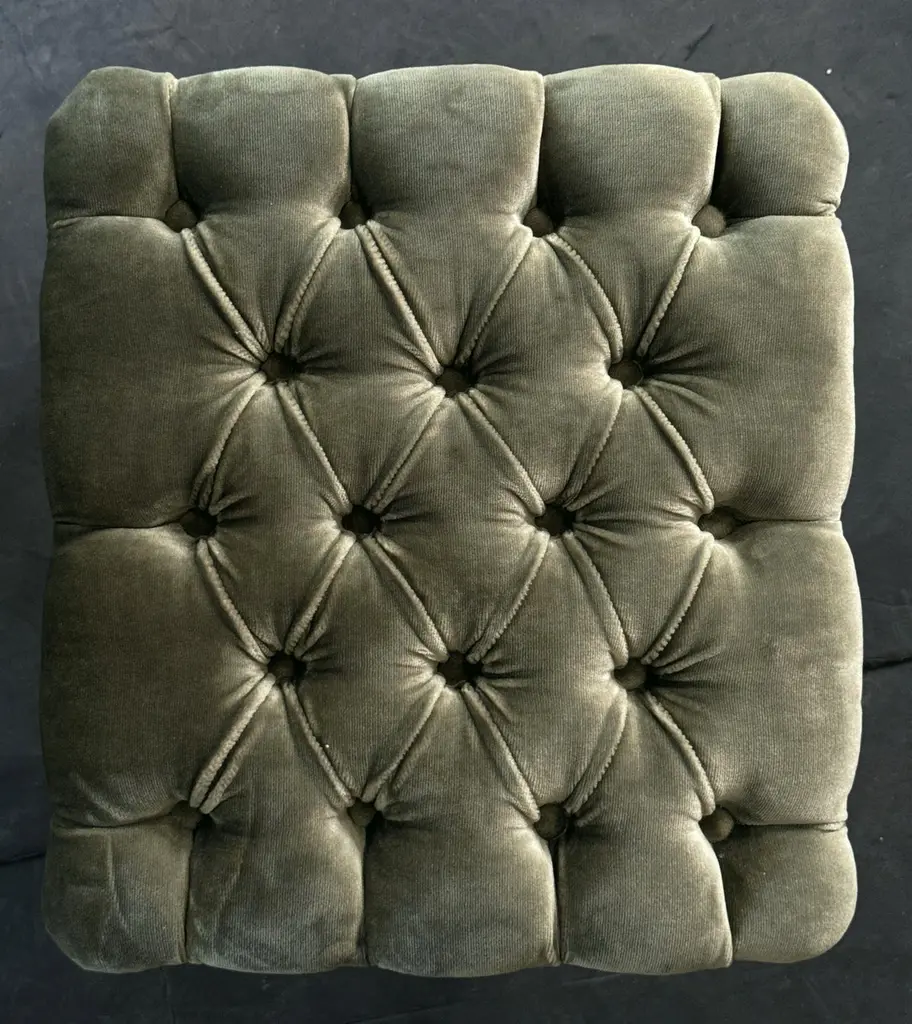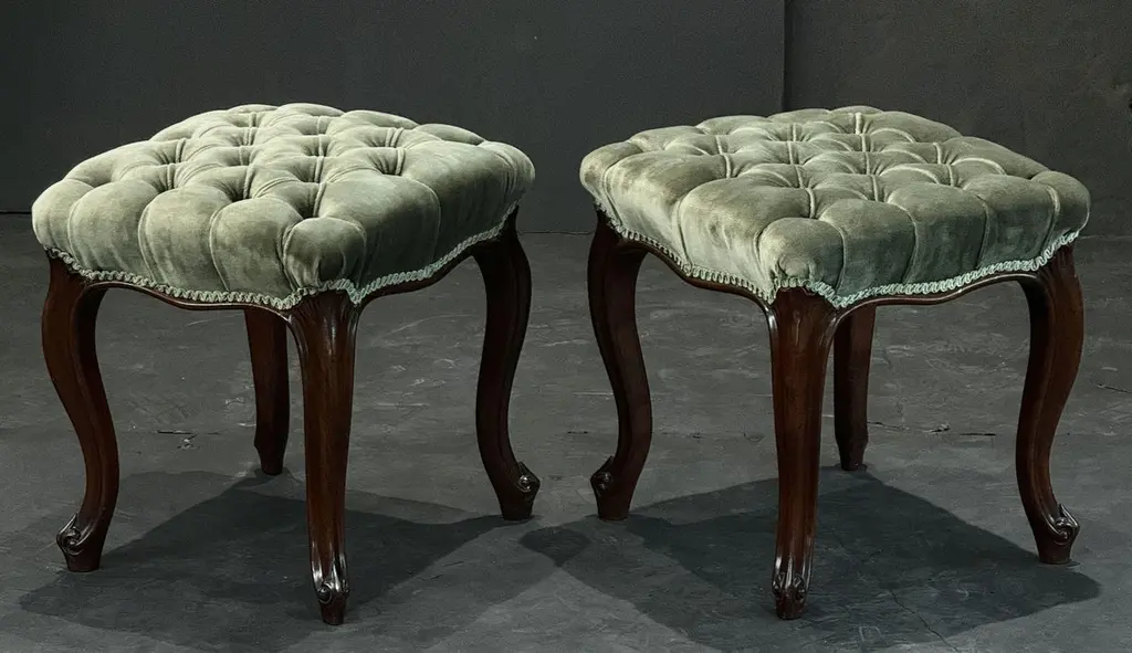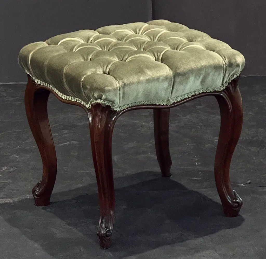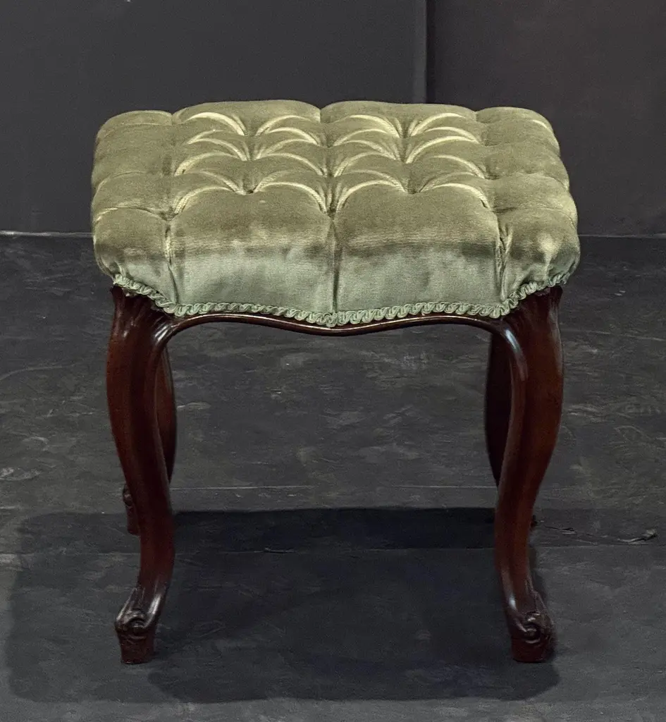 English Upholstered Stool Of Tufted Velvet On Cabriole Legs - Two Available