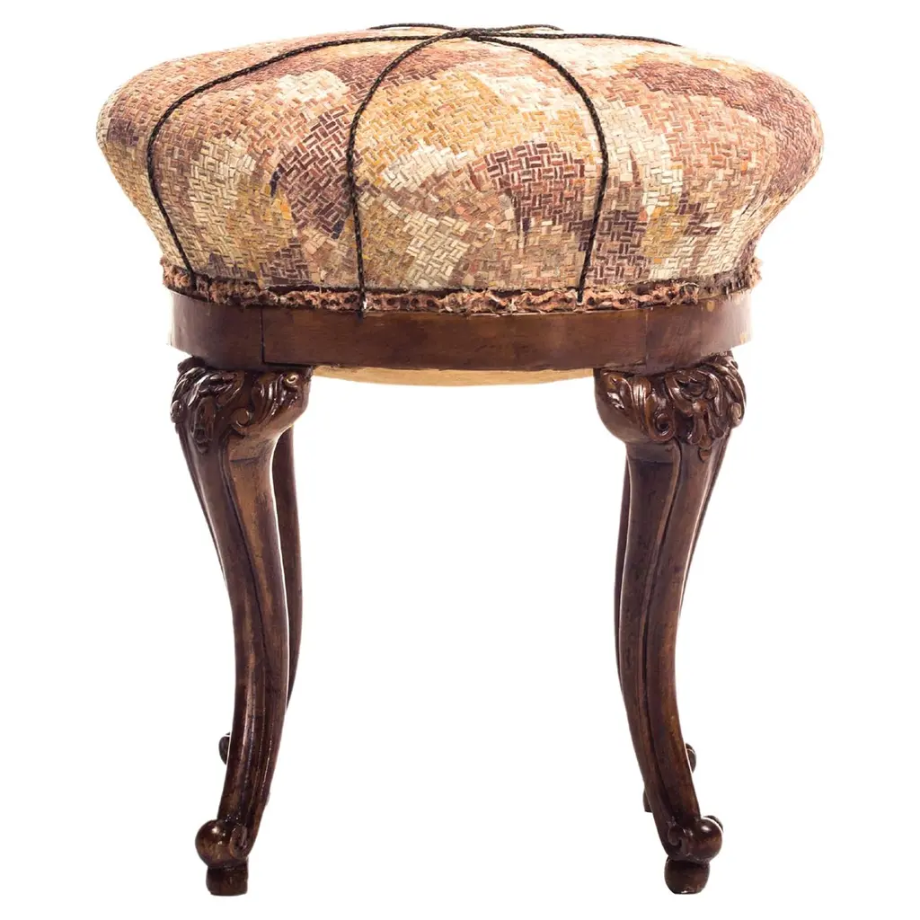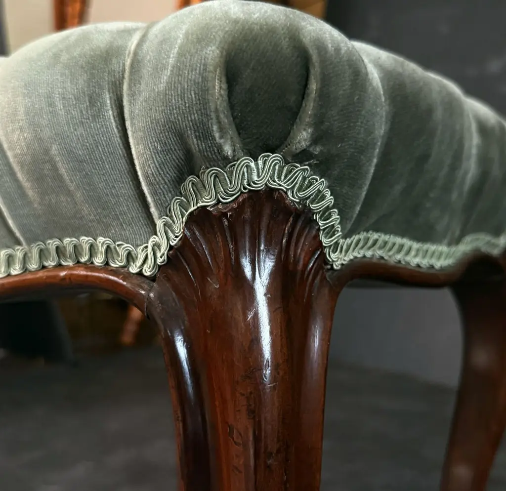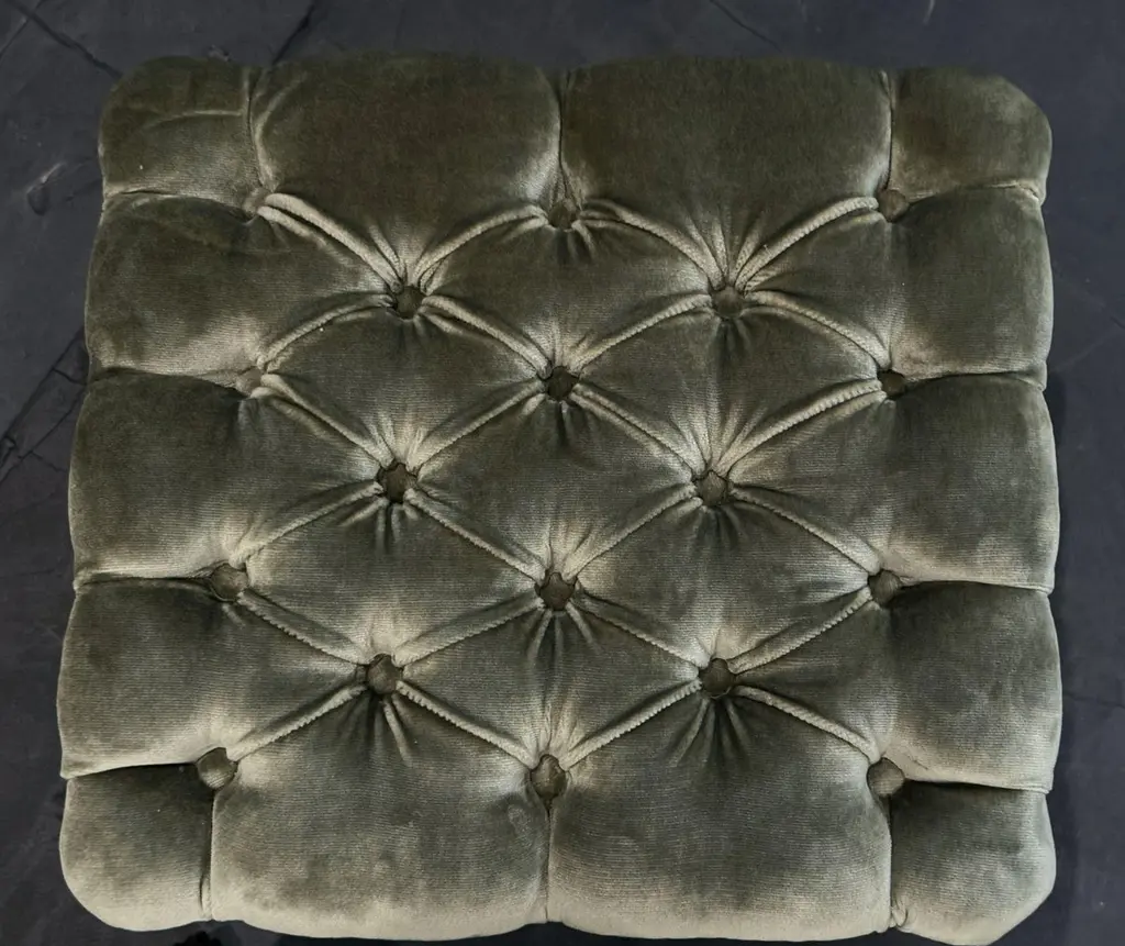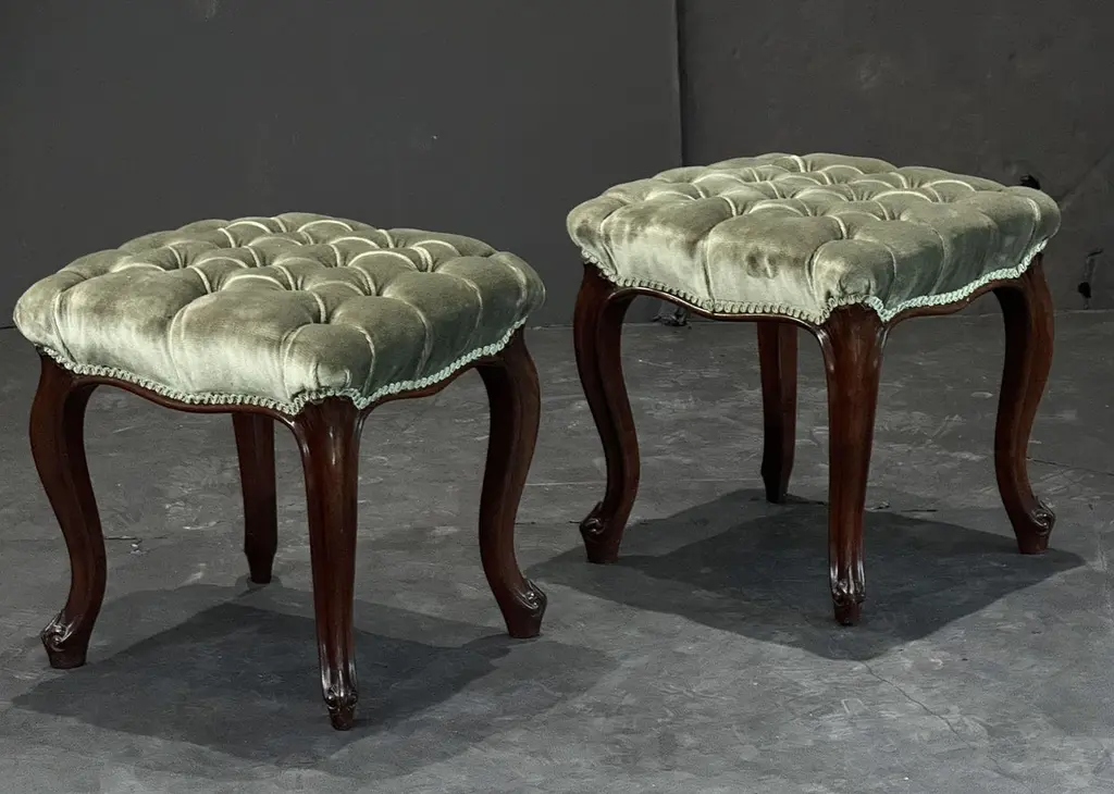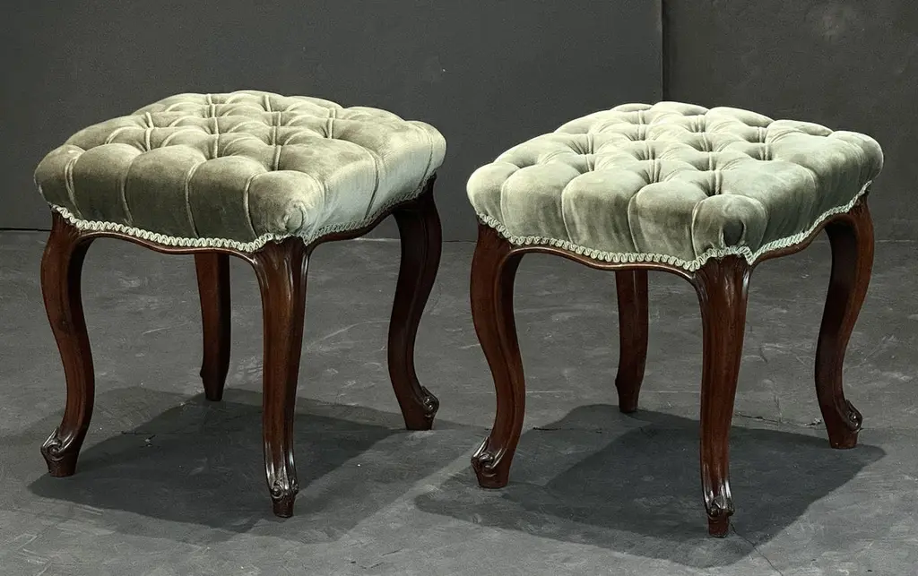 English Upholstered Stool Of Tufted Velvet On Cabriole Legs - Two Available