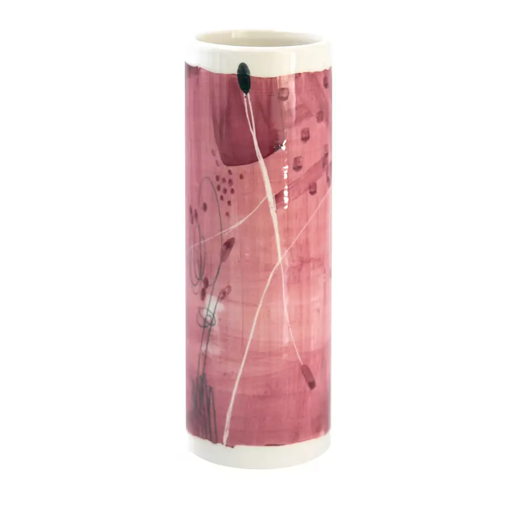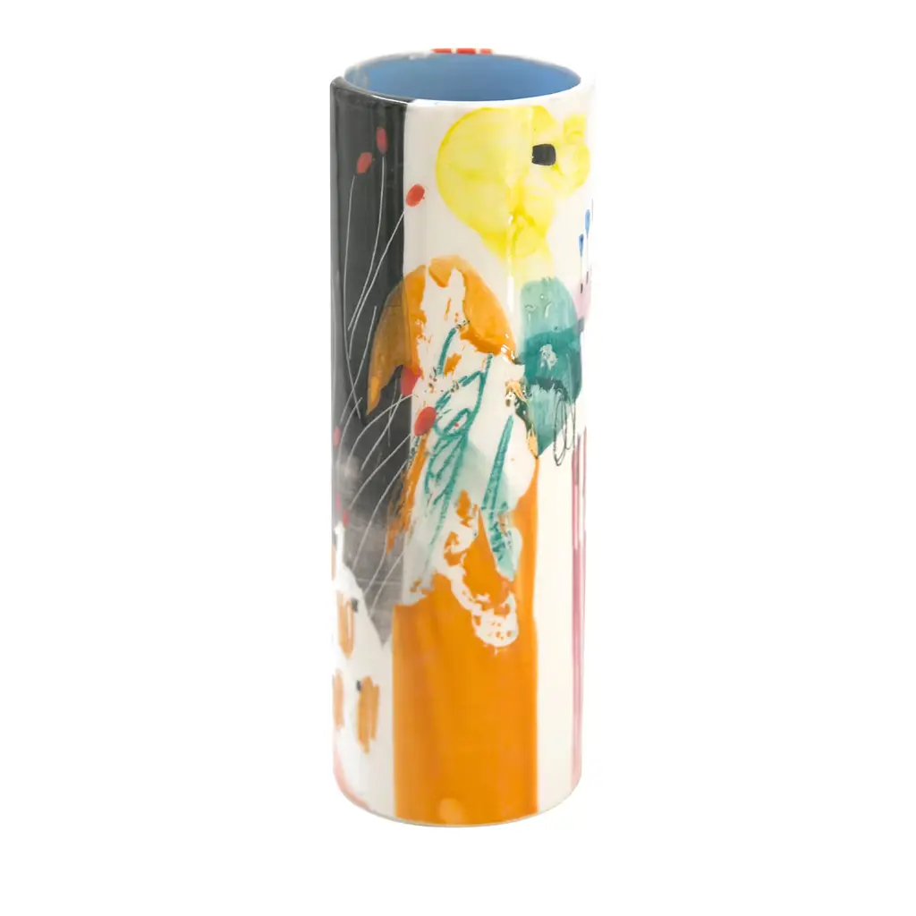 A cylindrical volume raised on three feet and extensively decorated with a triumph of casual multicolor brushstrokes lends this ceramic stool its intriguing artistic character. From a collaboration collection between Luisa Longo and Rometti, a historic Umbrian forgery, it is a deftly handmade and manually decorated piece whose colorful motif emerges in all its vibrancy from a glossy black backdrop.