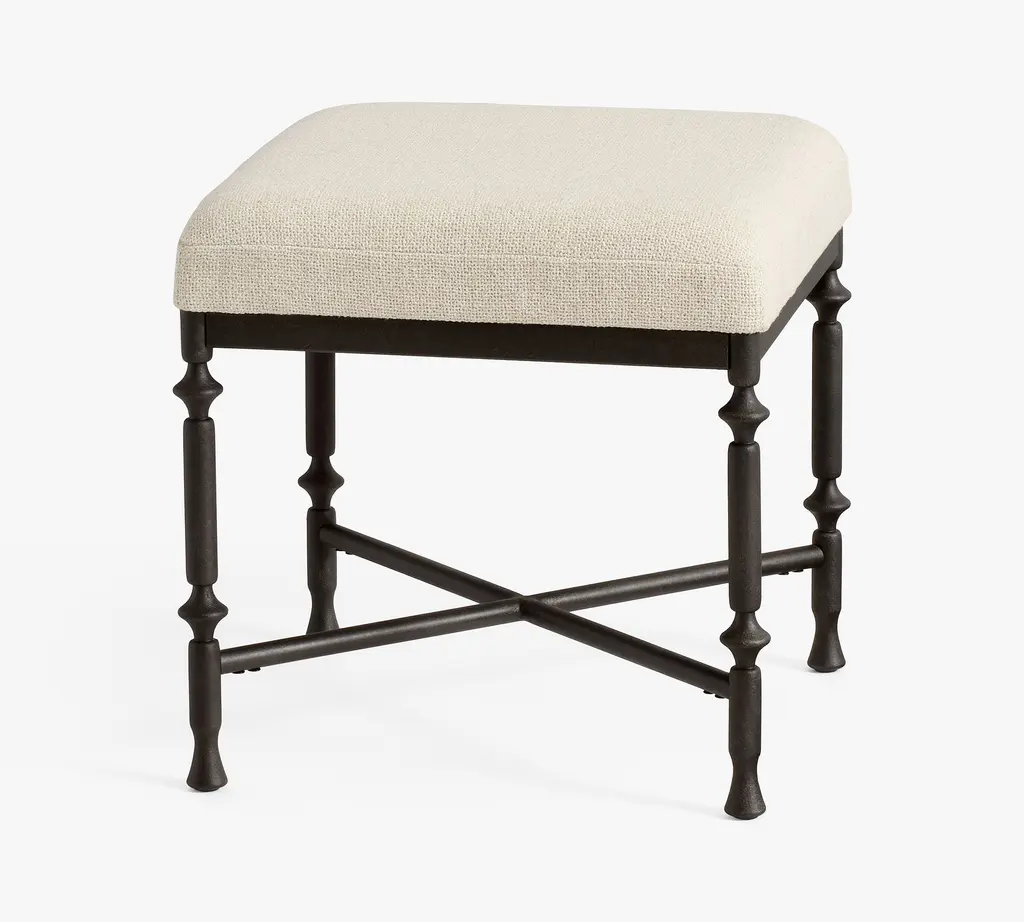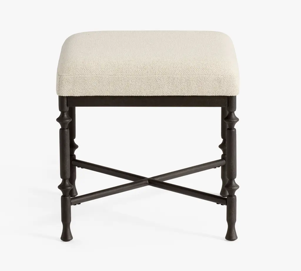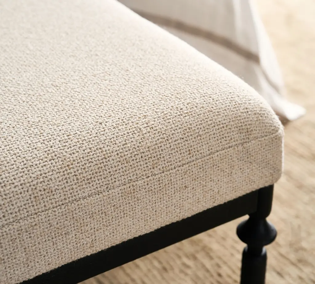 Modern meets traditional. Rich with contrast, Estelle combines cozy upholstery with a hand-cast frame and a lathe-turned look. Light and dark, soft fabric and metal, it offers an effortless blend of beauty and comfort.