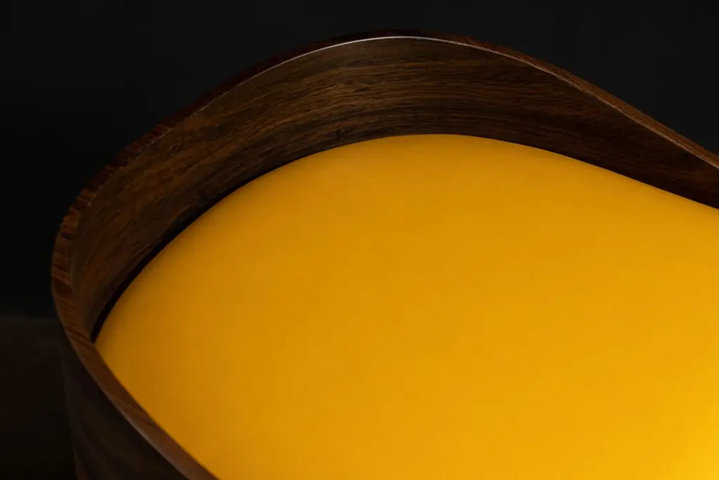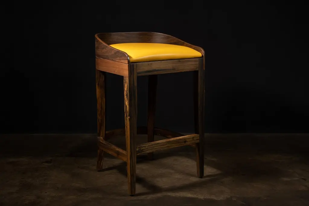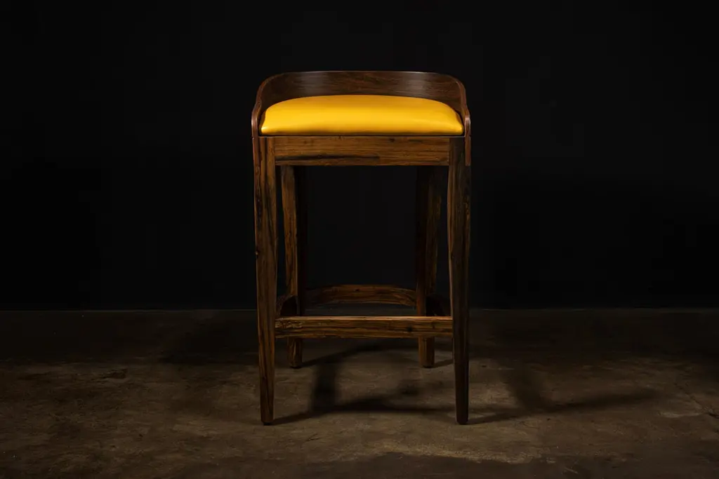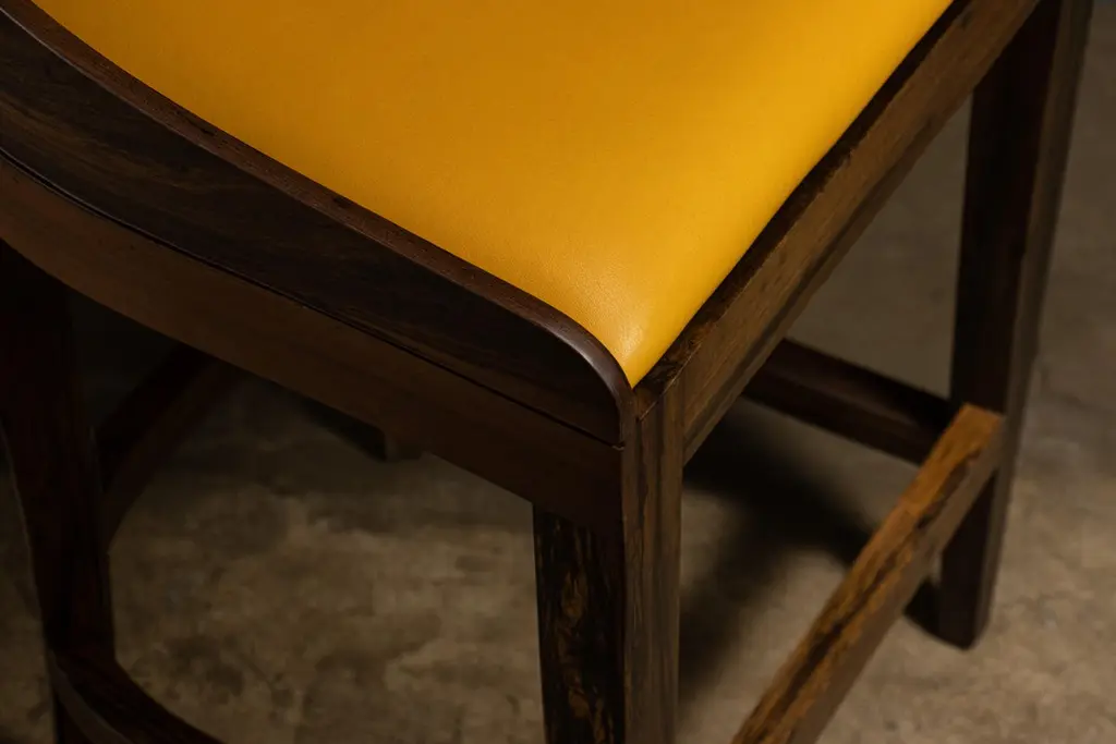 Pia Exotic Contemporary Wood Stool in Yellow Leather by Costantini- In StockSee it in person at our London pop up in the Pavoni leather showroom in the Chelsea Design Centre through June of 2025.Costantini prides itself in using the hardest and most beautiful hardwoods in the construction of its line of seating. The Pia Stool features a solid Argentine Rosewood frame with a wrapped leather seat and low wood back. Available in several different colored leathers and frame finishes. Customizable.Dimensions: 18" W x 18" D x 28" H 26" SHAbout Costantini DesignCostantini has been a trusted source for customizable furniture, objects and lighting for a global client base since 2002. Its founder and owner, William Stuart, is a designer and artist who began his career as a multimedia artist and sculptor, practices which continue to inform the work. With a studio showroom in New York and a team of artisans at their own workshop in Buenos Aires, the Costantini team is able to connect artisans and artists with acclaimed clientele around the world. Its artisans work across many varied materials such as bronze, solid wood, fiberglass, steel, plaster, goatskin, leather, rush, iron, marble, sheepskin and more. Their work has been featured in publications such as Architectural Digest, Galerie Magazine, the Wall Street Journal, Interior Design Magazine, Luxe, and more. Visit their New York or Buenos Aires locations by appointment.