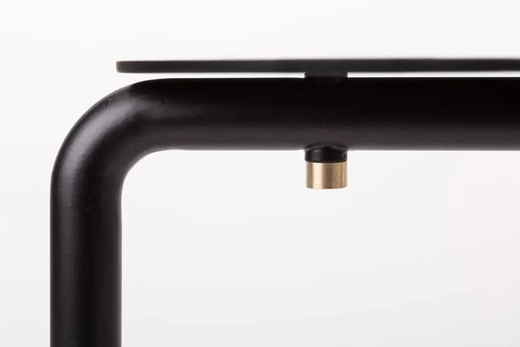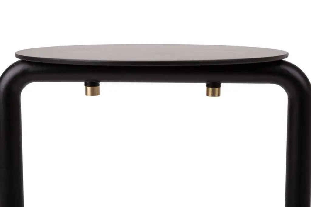The finesse of the artisan is met with the practicality and directness of the working factory, forging a series of living objects to serve as highly adaptable utility.The series of objects draws the beauty present in the robust and highly functional structures.The Factory Series structural premise is understated, though highly adaptable, offering many uses within a fluctuating living or commercial application. The common three or four leg frame trope is exchanged for a T-construction, allowing the object to appear mobile and inviting graphical application to the space.Measures: Diameter 34 x height 46 cm.Available in natural brass top and burnished or varnished iron structure.