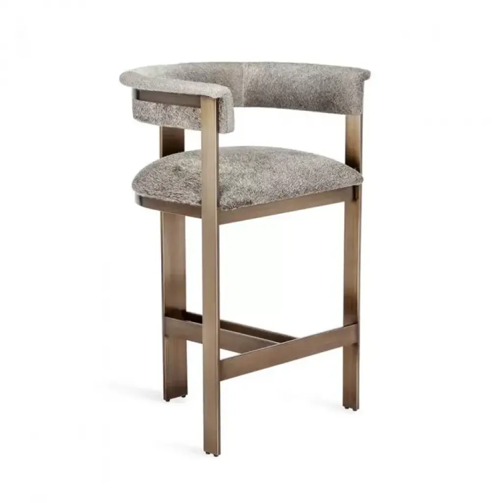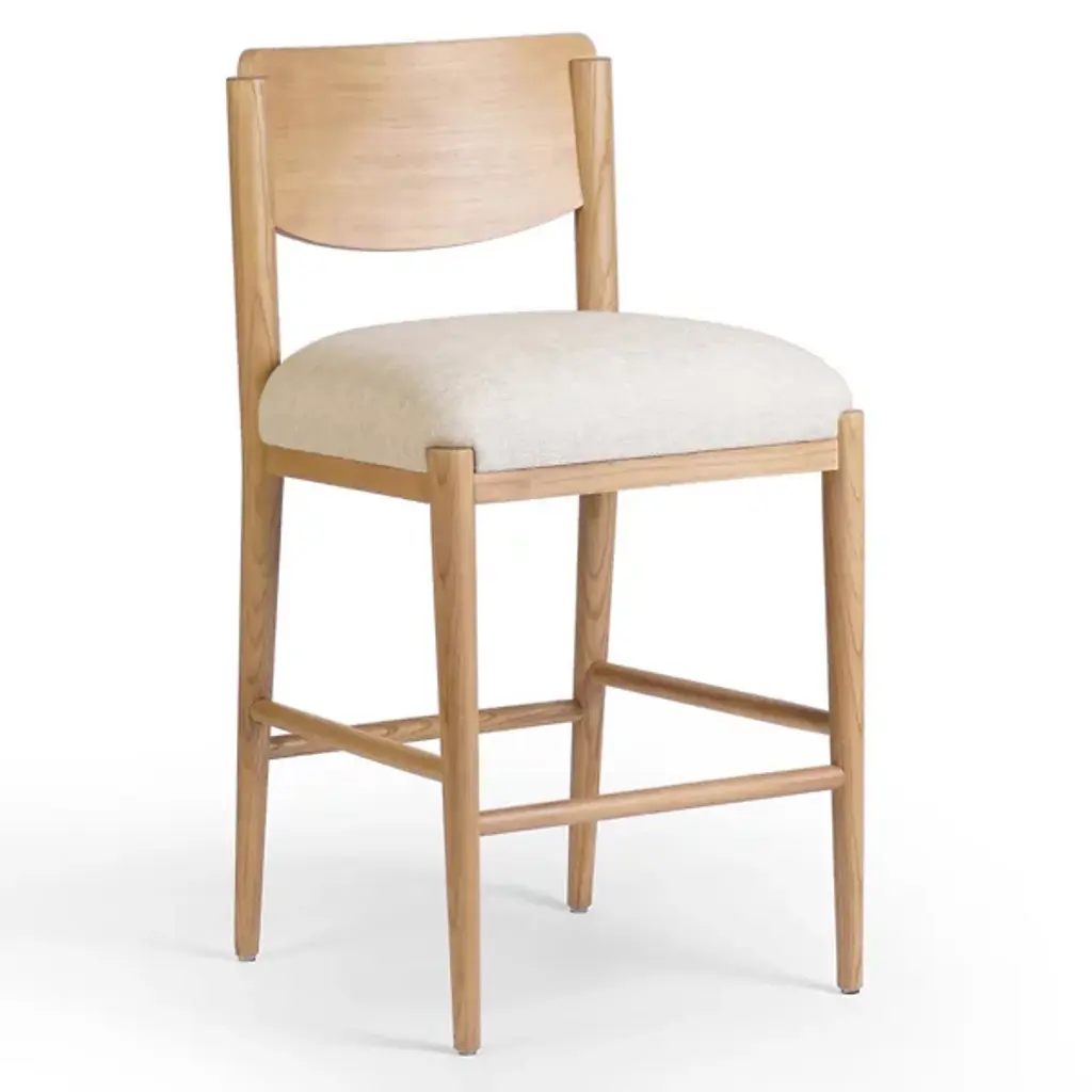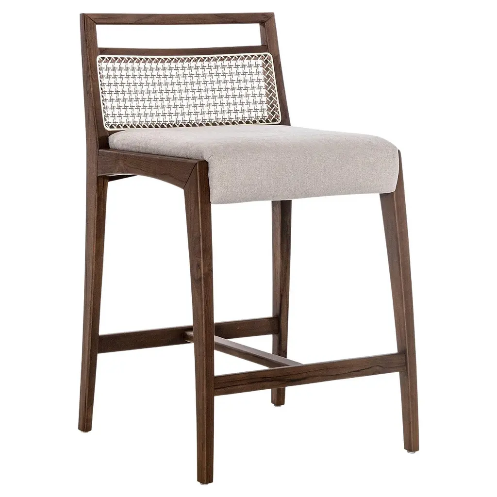 Effortlessly combining straight and sinuous lines for tracing its elegant dried-beech silhouette, this stool is an exquisite example of Art Deco inspiration. The back's fluid lines are conceived to ensure impeccable support for an optimized level of comfort enhanced by the padded seat covered in rope-beige linen. A golden or silvery metal bar reinforcing the stretcher is also available upon request to the Concierge.