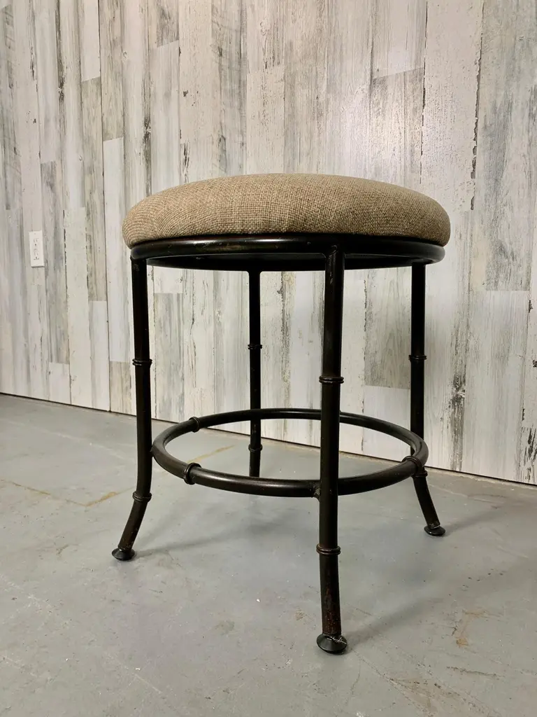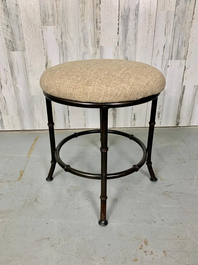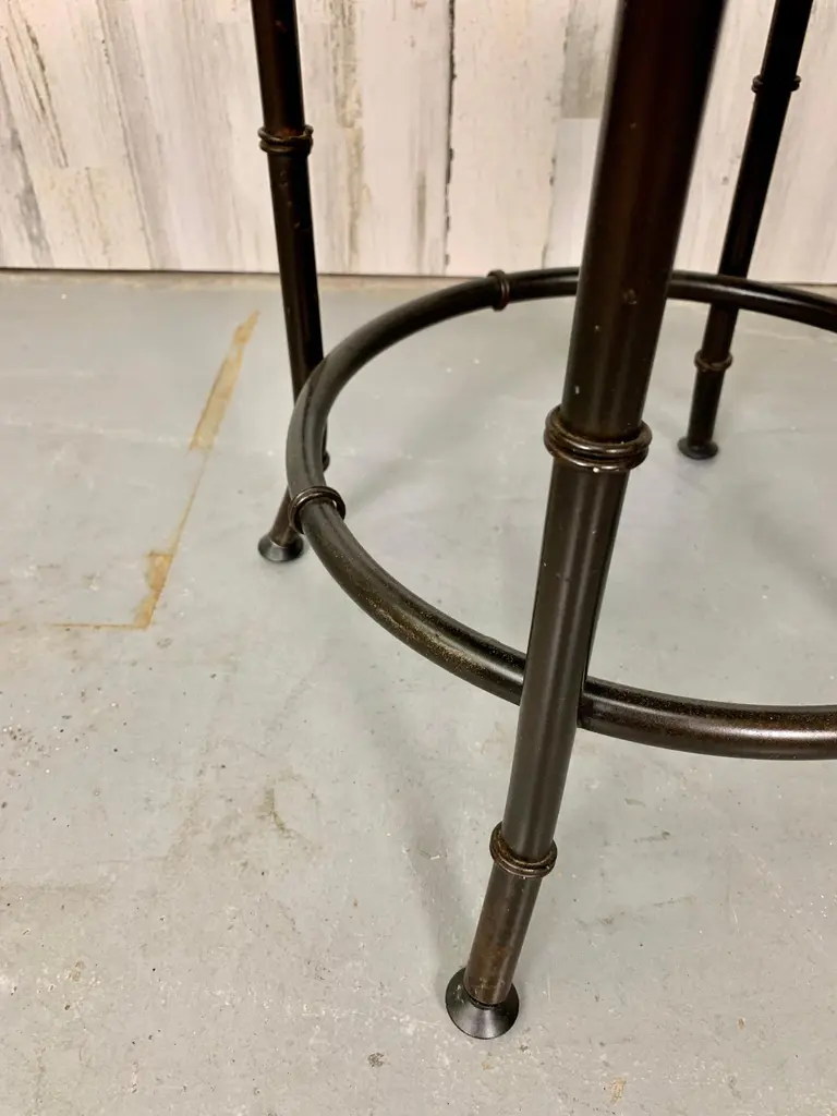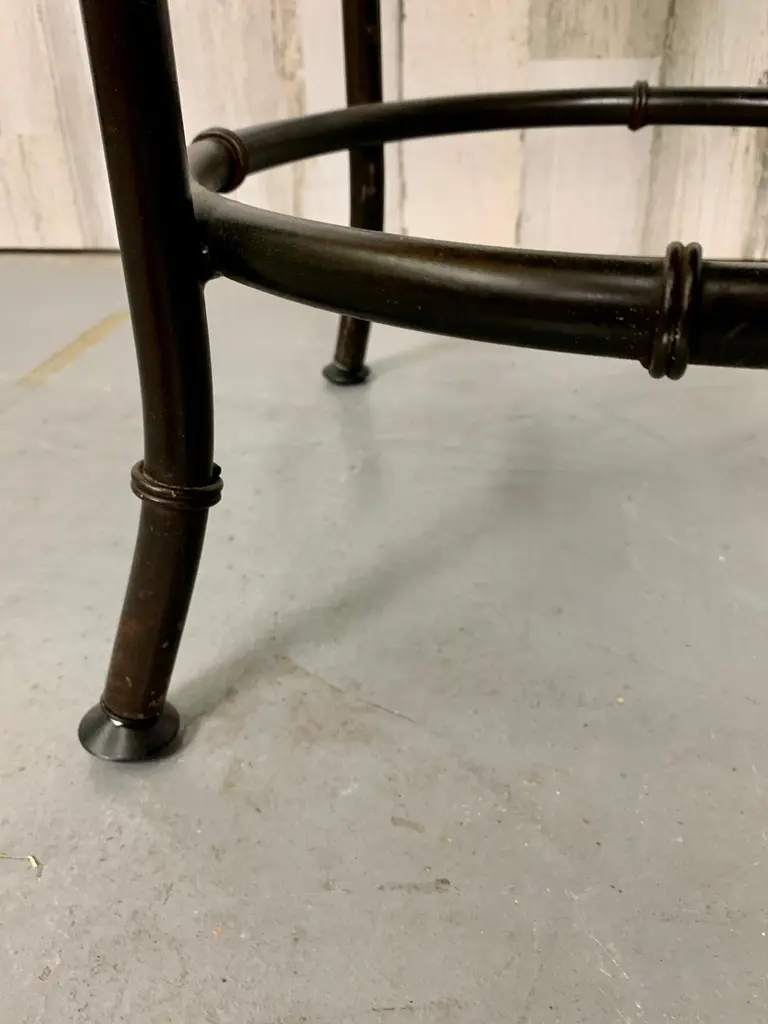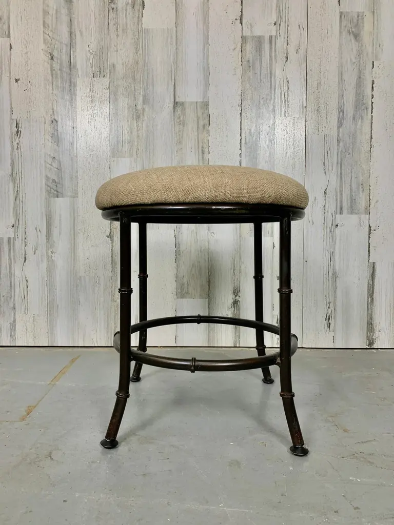 Faux bamboo metal stool in a bronze finish with new upholstery.There are three available.