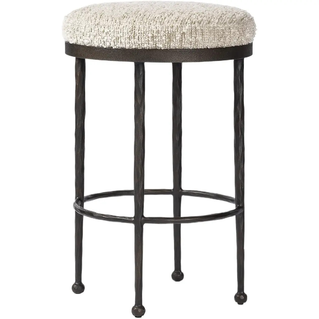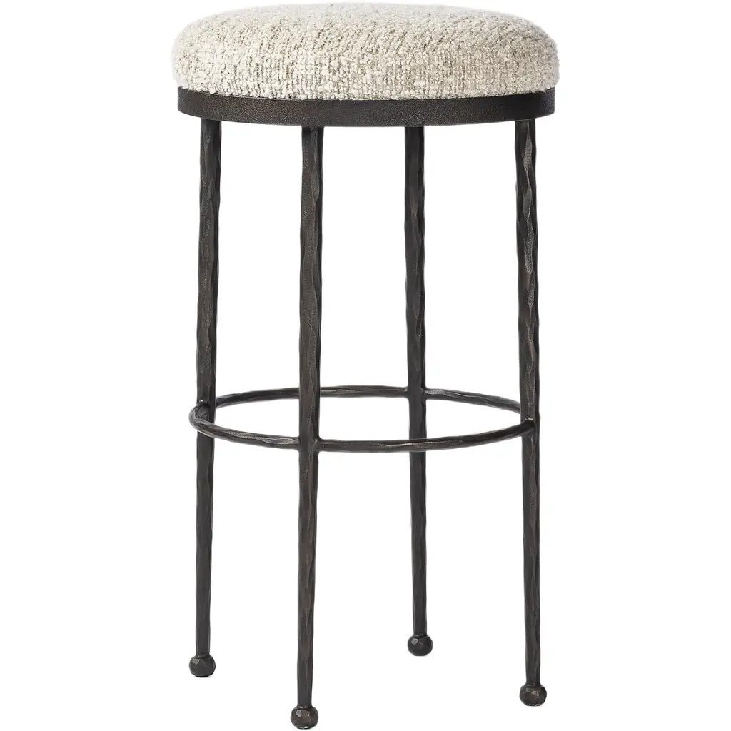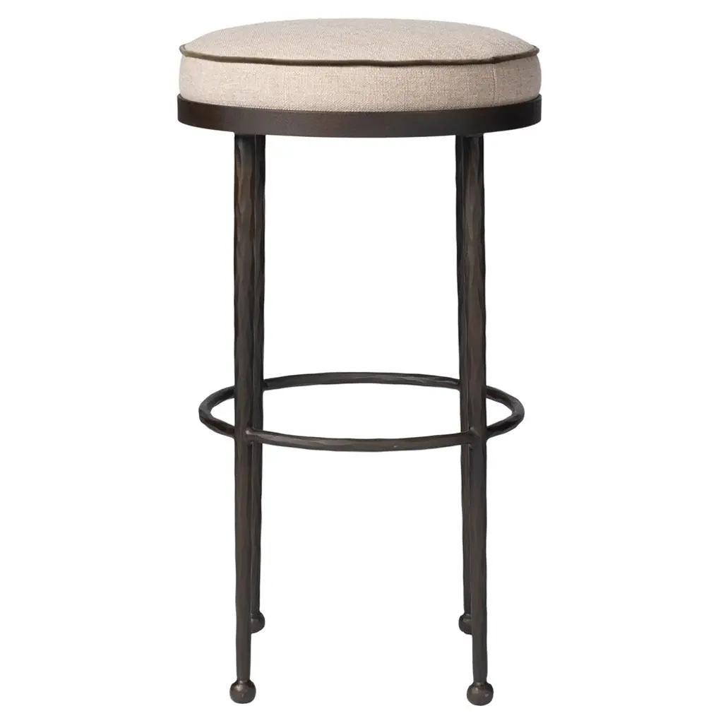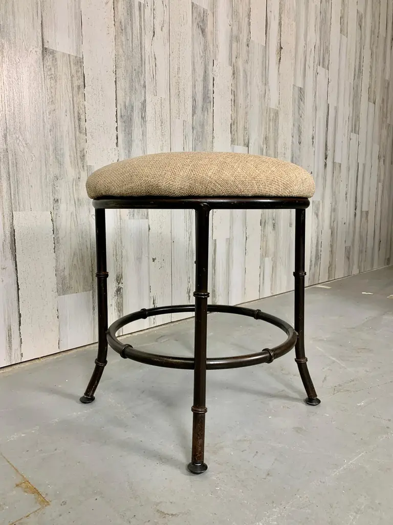 Faux bamboo metal stool in a bronze finish with new upholstery.There are three available.