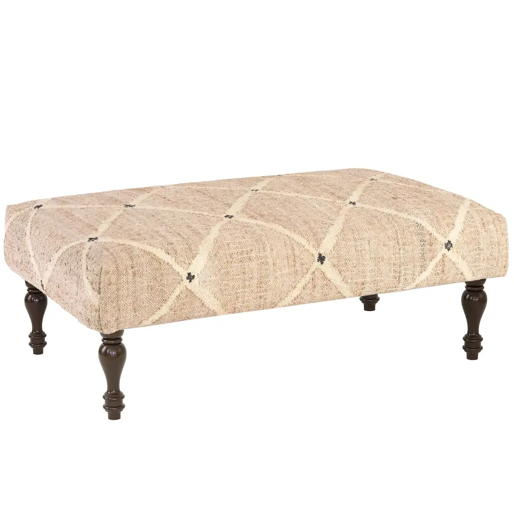 Hand upholstered in the UK with classical studding and hand polished solid beech legs, ideal for an extra seat or a centre piece in a living room.