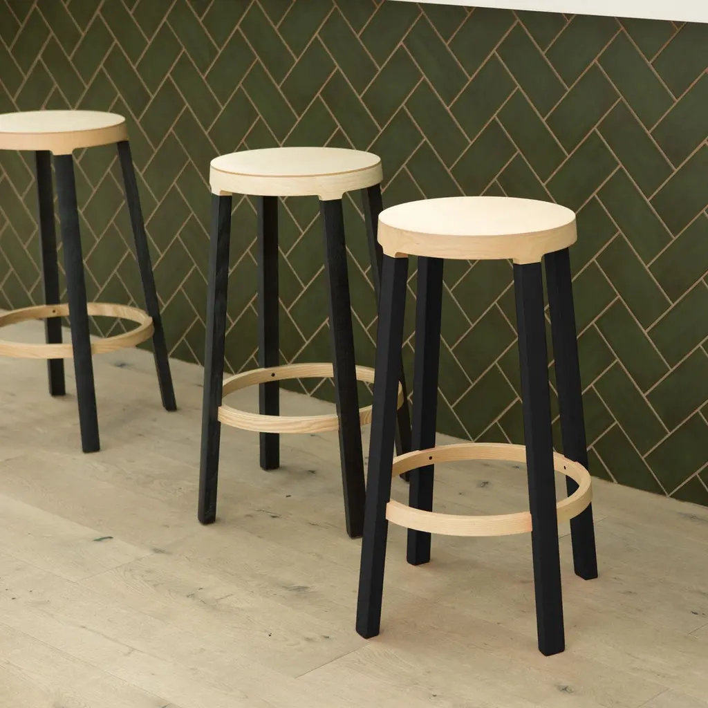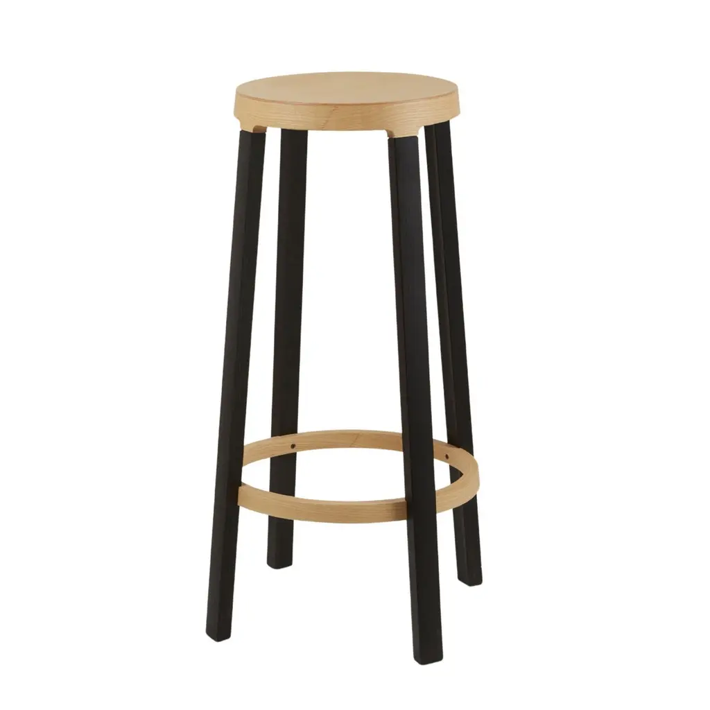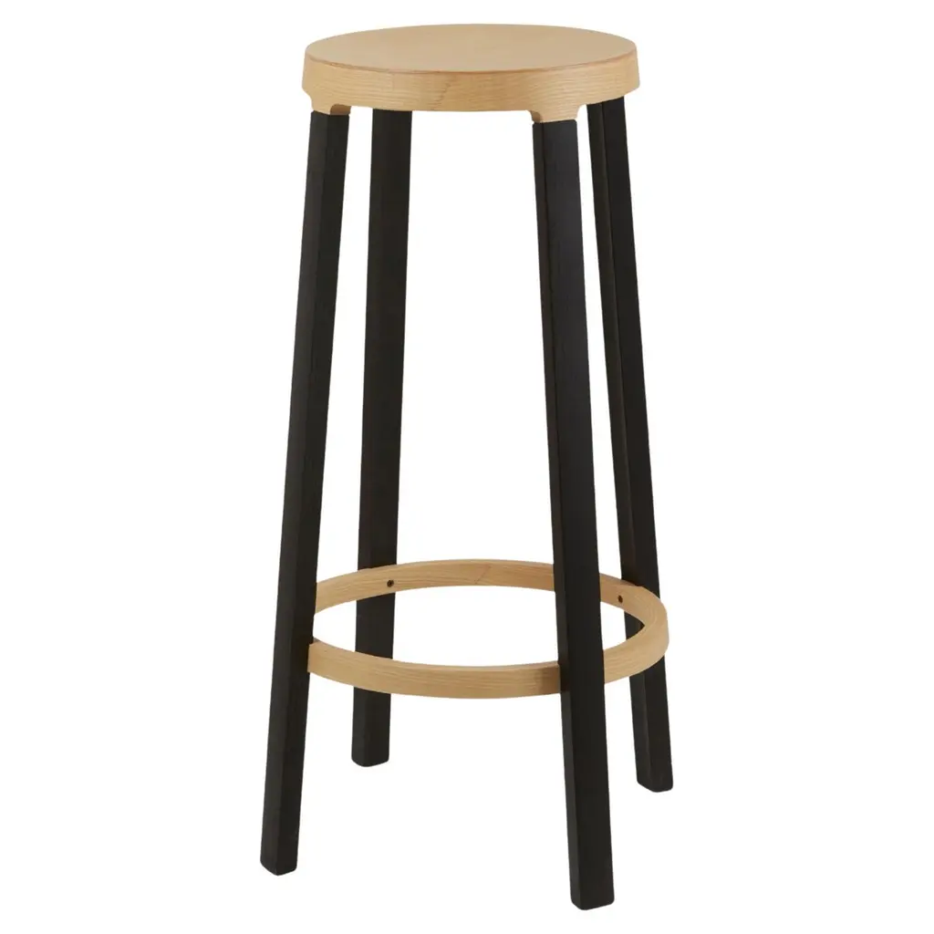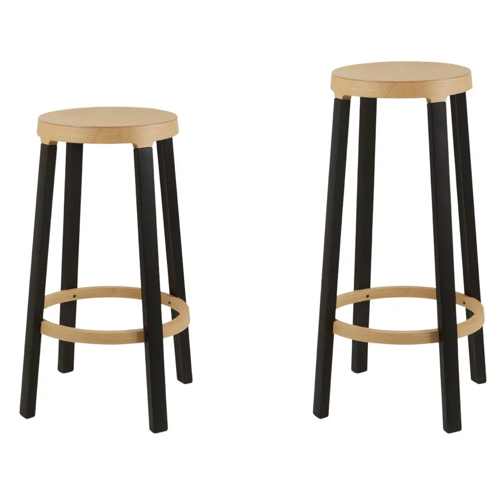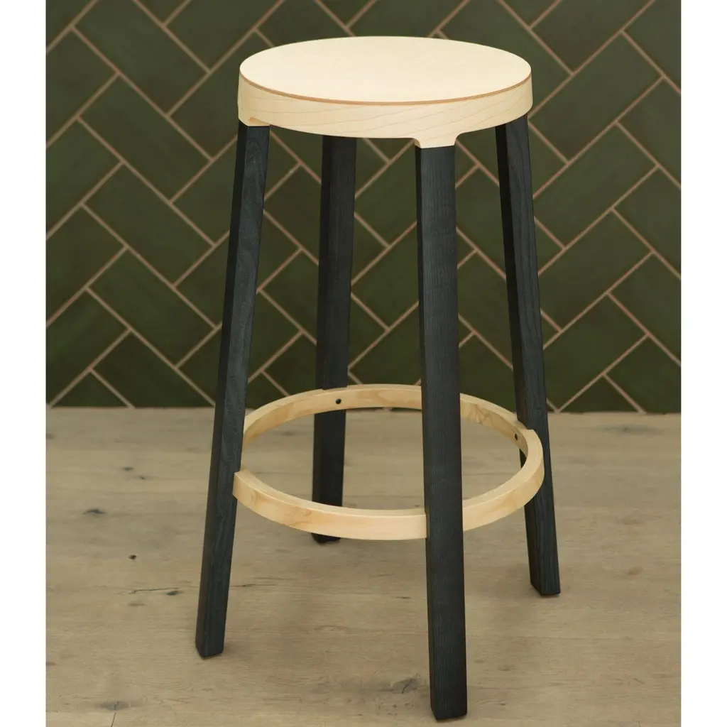 Federico Gregorutti 'Step’ Stool in Ash Wood for Established & SonsThe 'Step' uses wood-bending and a splash of color to create a modern design. Fabricated in solid Ash wood legs, stained in a dark blue black lacquer, and topped with a seat in natural Ash wood, the 'Step' is the perfect addition to the kitchen, bar or studio.Price per item. Available to order in unlimited quantities, in your choice of two heights and with plastic glides. Bespoke colors are available with a minimum order quantity of 20 - please inquire for details. This listing is for the shorter of the two 'Step' stool sizes offered.In stock and available to ship within 1-2 weeks, out of stock lead time can add up to 16 weeks or more. Lead time and availability are subject to change without notice. Please contact us for current lead time prior to placing time-sensitive orders.Please note, due to the organic properties of wood, some variation in the wood grain, texture, and color may occur between pieces. Established & Sons is a British brand representing all that is innovative in contemporary design. By collaborating with leading creators and supporting emerging talent, it produces imaginative and distinctive collections of furniture and lighting. The collection features iconic examples of 21st-century design, many of which are housed in international museums, galleries, and private collections worldwide. Established & Sons continues to shape the global design conversation.Made to order.All sales final.