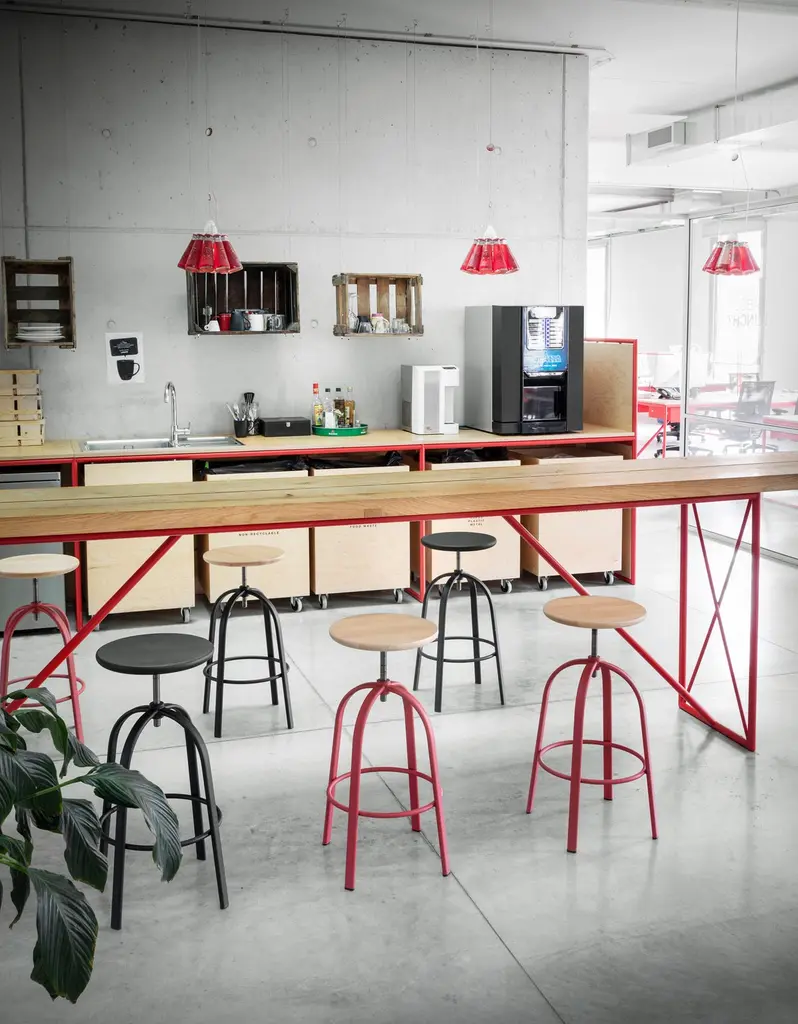Ferrovitos Stool In Beech Top With Marsala Red Legs By Paolo Cappello