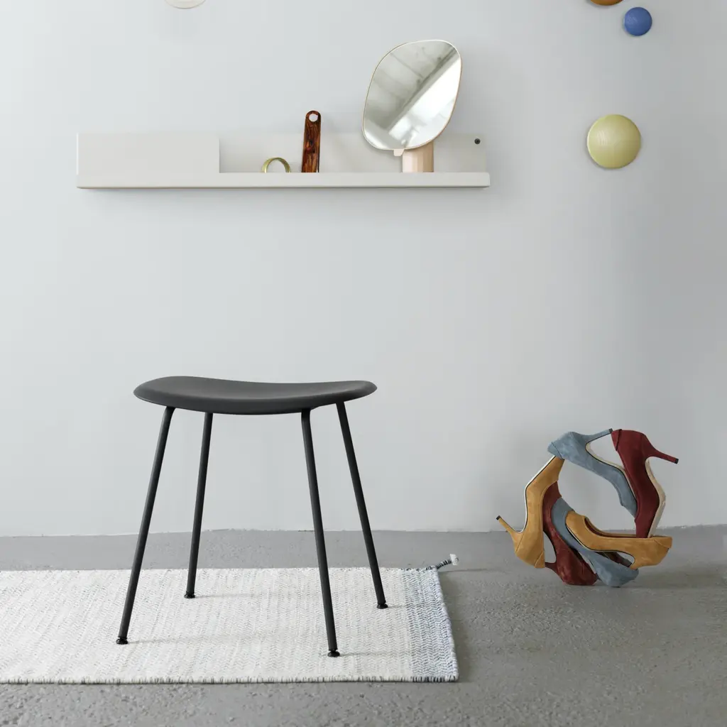 A linear tube base in powder-coated steel gives the Fiber Stool a sleek and lightweight appearance. Color-matched to the molded seat for a seamless sense of refinement. designer duo Iskos-Berlin riffs on their update to the classic Scandinavian shell chair, Also rethinking materials, they utilize a plastic material with 25 percent wood fibers, an innovative composite with its own appealing variegated texture.