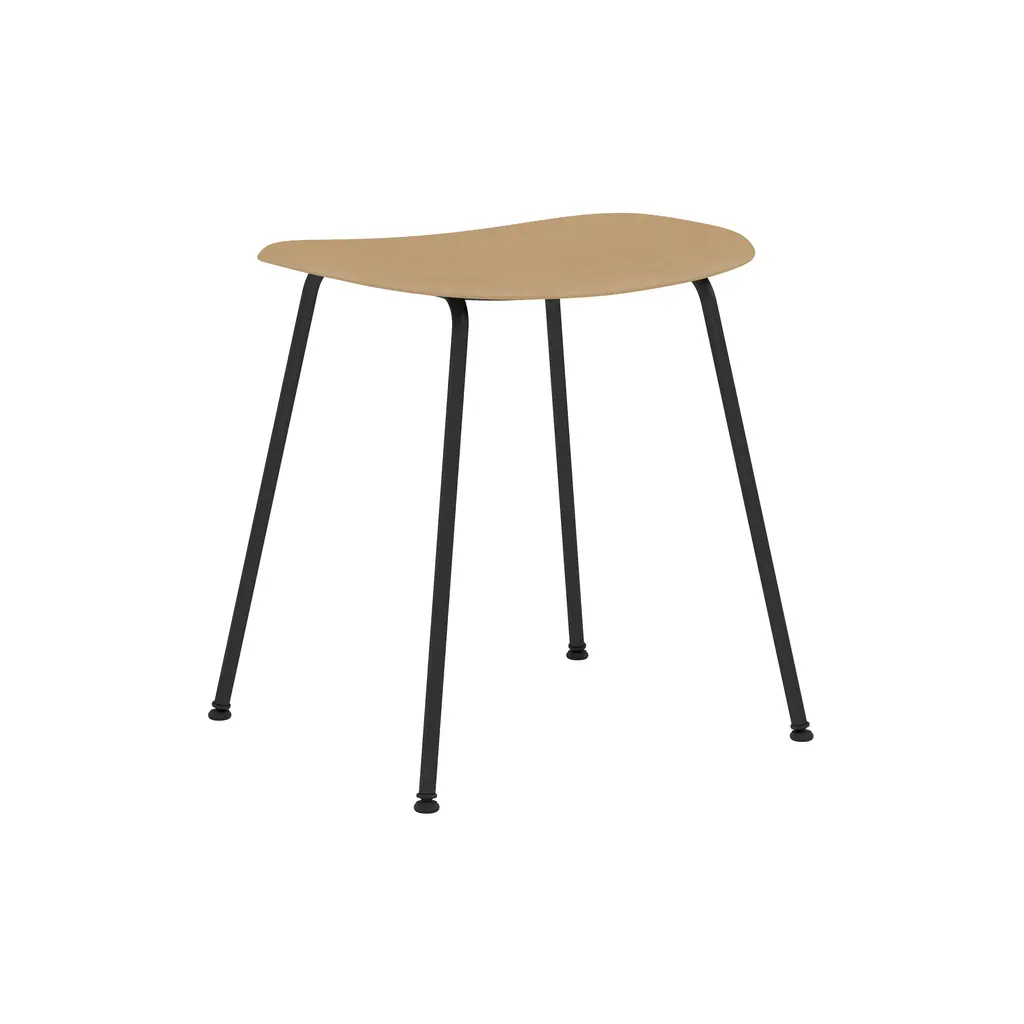 A linear tube base in powder-coated steel gives the Fiber Stool a sleek and lightweight appearance. Color-matched to the molded seat for a seamless sense of refinement. designer duo Iskos-Berlin riffs on their update to the classic Scandinavian shell chair, Also rethinking materials, they utilize a plastic material with 25 percent wood fibers, an innovative composite with its own appealing variegated texture.