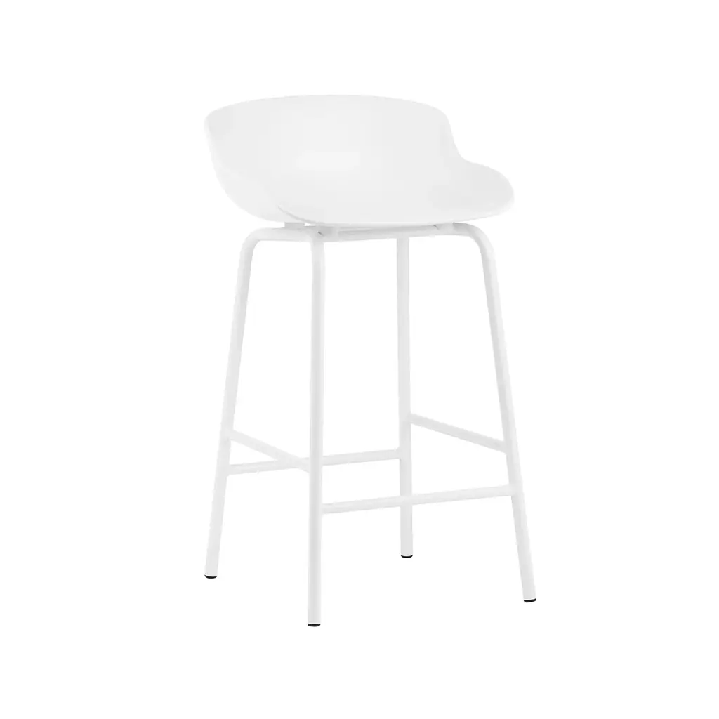 Add a gentle, pleasing character to cafes, kitchen bar, and more with the Fiber Stool Tube Base with Backrest from Muuto. A stylish spin on Scandinavian minimalism with a modern edge, it uses a series of slender, lacquered oak legs joined at their tops by short horizontal beams and braced by a square footrest to support a single-piece shell seat with a short, though supportive back. The shell itself is made from a composite of recycled plastic and wood fibers that lend it an intriguing natural texture when seen up close and easing into a stately smoothness at a distance.