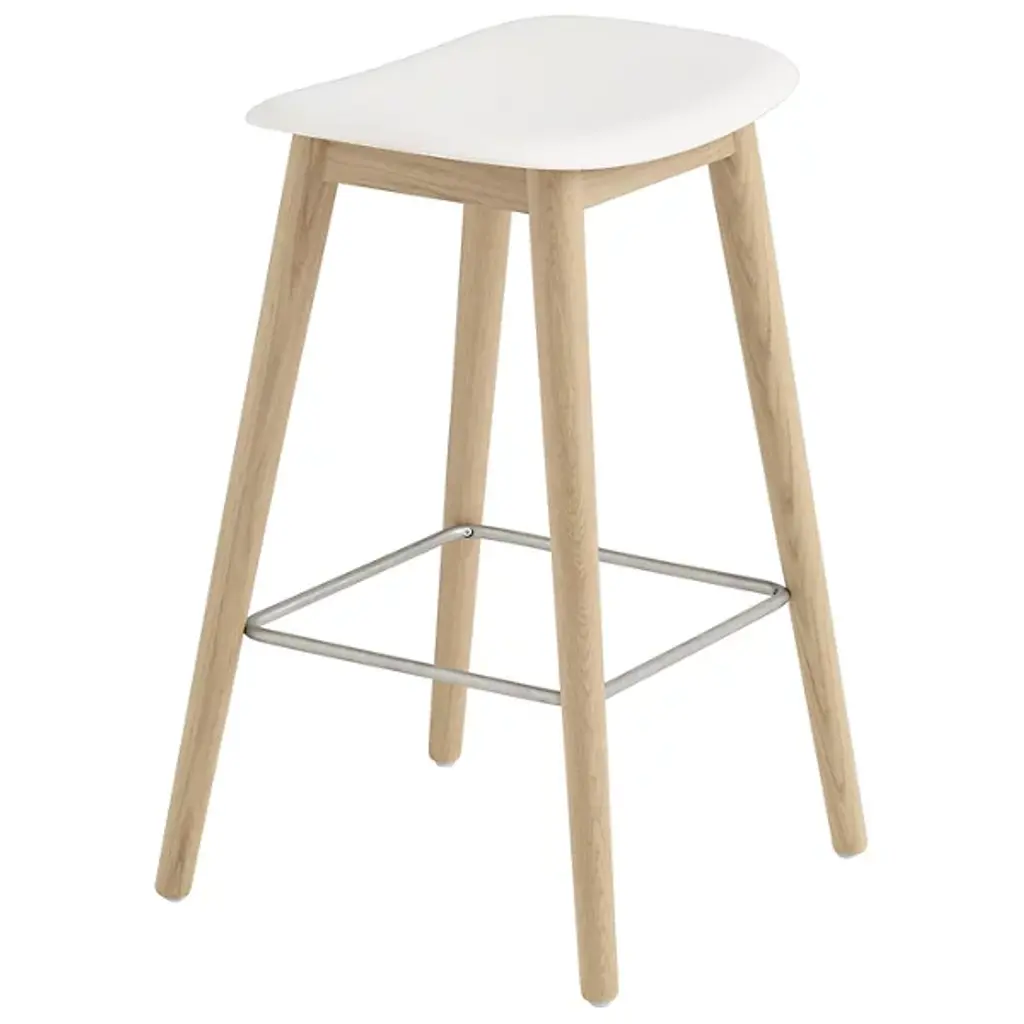 Memorable yet understated. The Fiber Stool Wood Base from Muuto creates a sense of harmony with the room in its clean design and with the body through its comfortable, sculpted shapes. Creator Iskos-Berlin approaches each piece like a storyteller. Like a story, this piece is clear, surprising, and makes one smile. Its clarity comes from a trim silhouette of wood legs. The legs achieve an open design that lets one’s feet move freely. The seat rest surprises and makes one smile with one sweeping curve. This curve hugs the lower body to provide a comfortable resting position. Its graphic silhouette complements the modern and contemporary space.