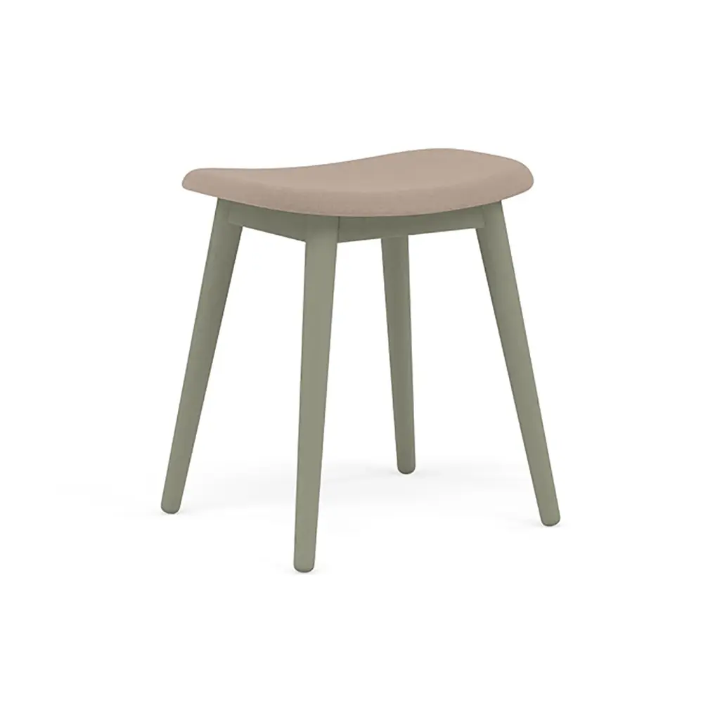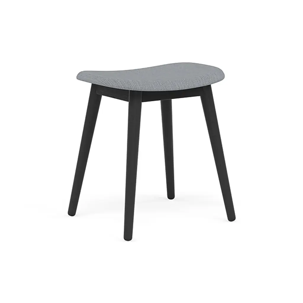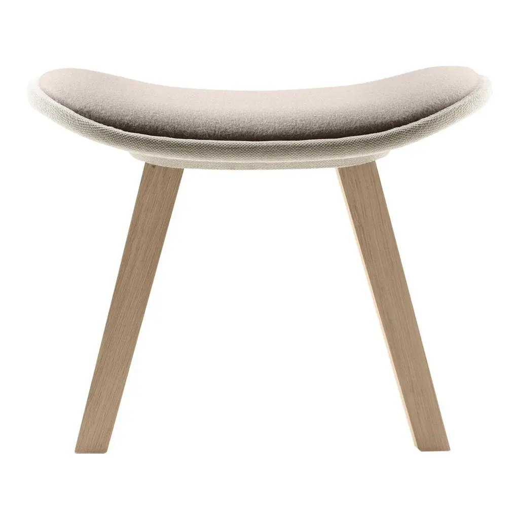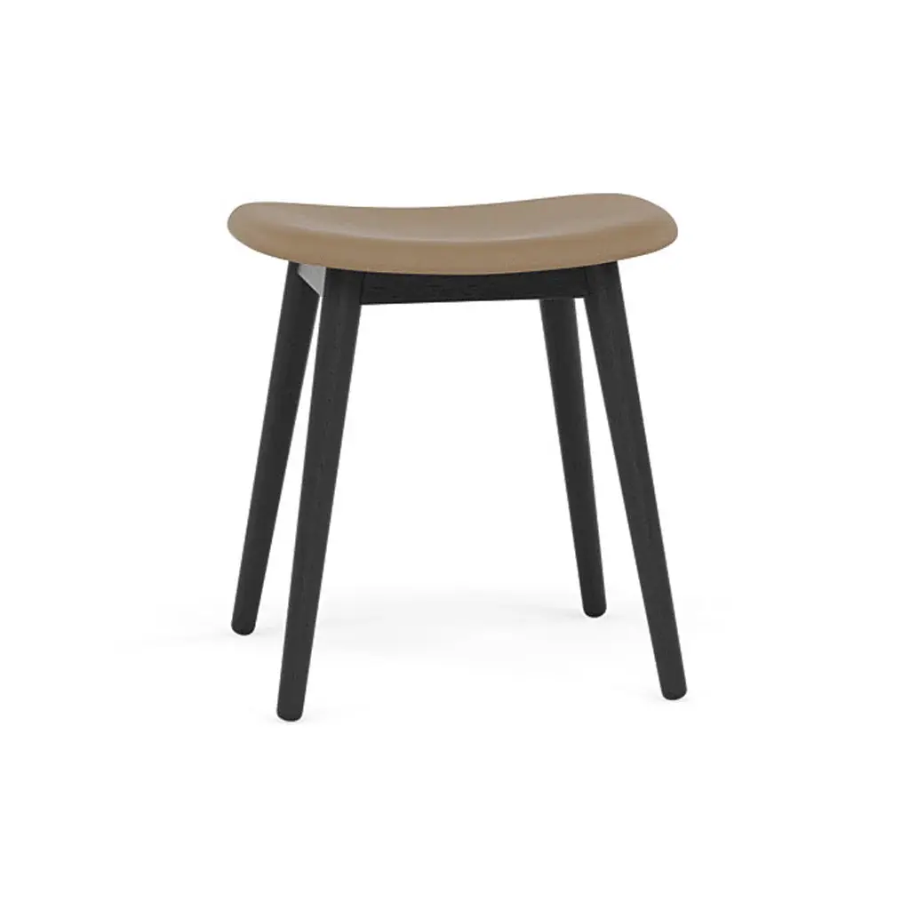 Design duo Iskos-Berlin ennoble this stool from their signature Fiber series with a silk-like leather overlay. Created for Copenhagen-based Muuto, the molded seat is inspired by the classic shell chair and given a timely update in an innovative plastic composite made with 25 percent wood fibers. Wood base crafted from solid oak, wet-lacquered in black to match black leather upholstery or in natural to harmonize with the cognac leather option.