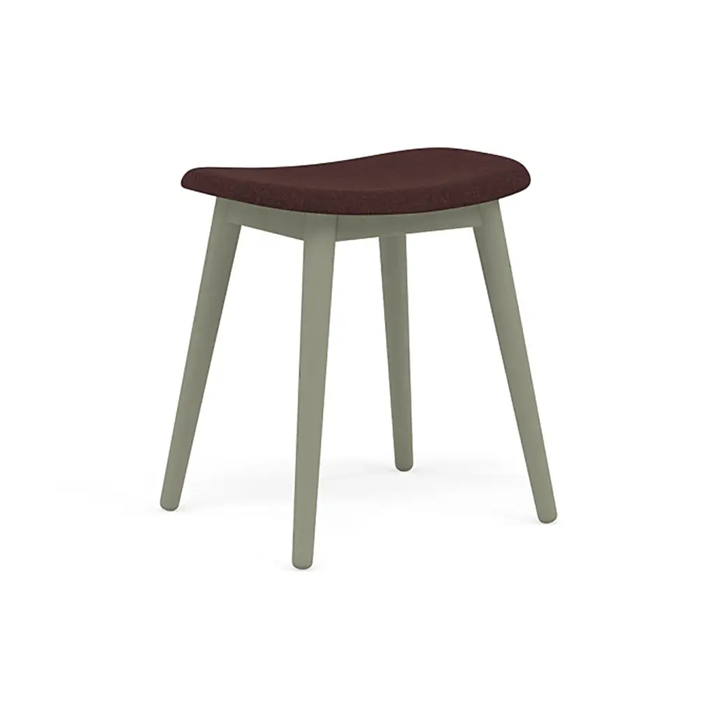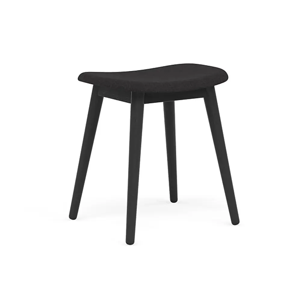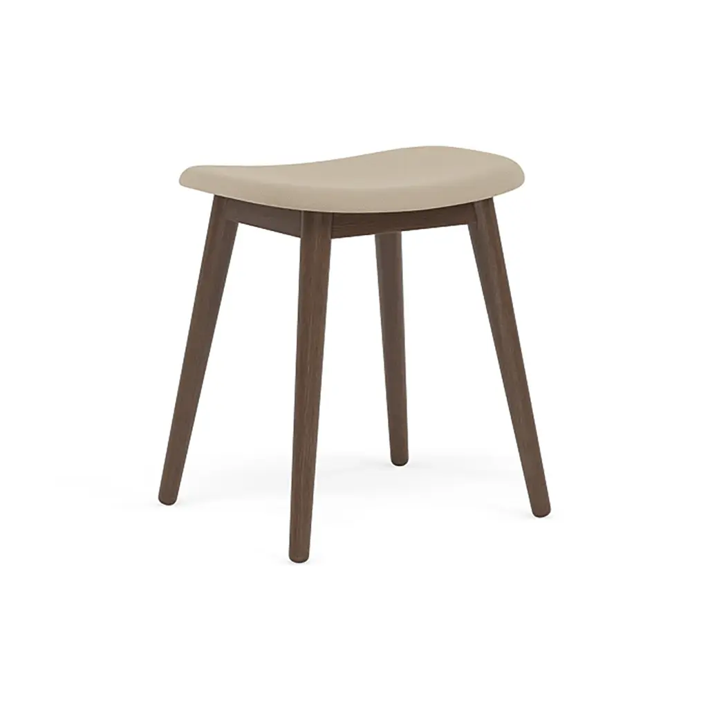 Design duo Iskos-Berlin ennoble this stool from their signature Fiber series with a silk-like leather overlay. Created for Copenhagen-based Muuto, the molded seat is inspired by the classic shell chair and given a timely update in an innovative plastic composite made with 25 percent wood fibers. Wood base crafted from solid oak, wet-lacquered in black to match black leather upholstery or in natural to harmonize with the cognac leather option.