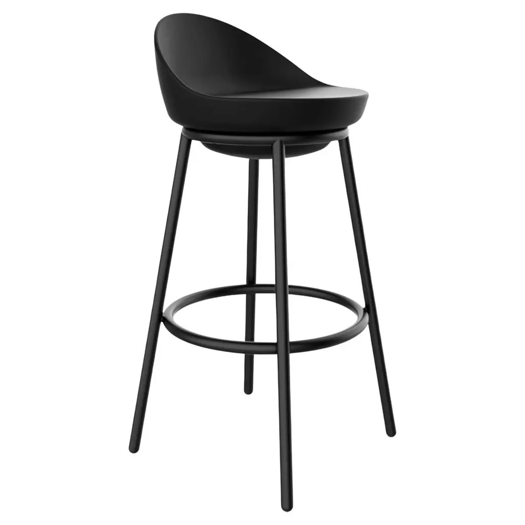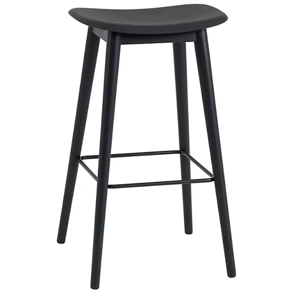 The Fiber Stool Wood Base with Backrest from Muuto is a balanced modern piece created with the idea of being low-key yet impressive. Design studio Iskos-Berlin looks at each design like a well-crafted story. A good story's essential elements of being clear, surprising, and making one smile are what Iskos-Berlin factors into this piece. Clarity and openness are displayed in the tall linear legs of the design. The wood construction of the legs charms with rich organic texture. This texture surprises in contrast to the cozy seat shell. The shell's soft curves caress the lower body and support the back for a smile-worthy seating experience.