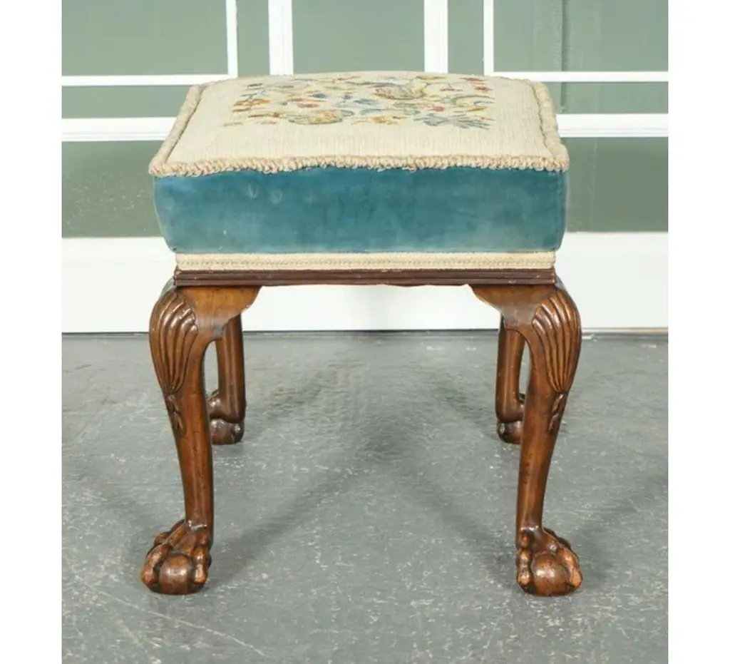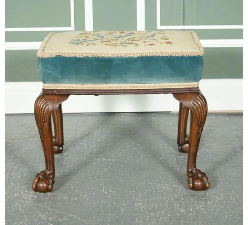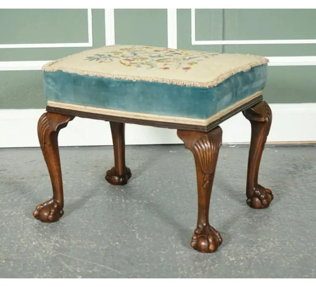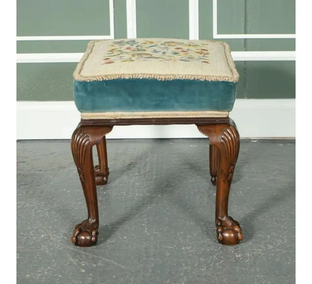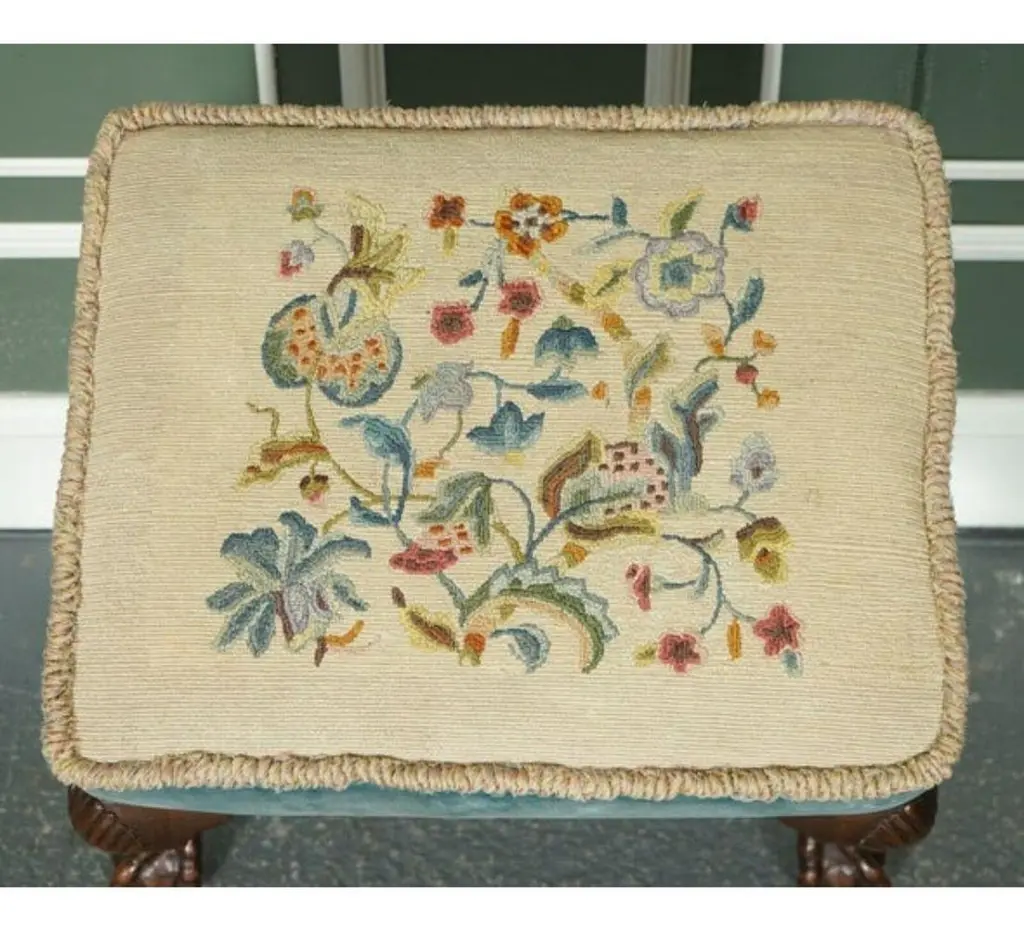 Fine Victorian Flower Upholstery Claw And Ball Carved Foot Stool