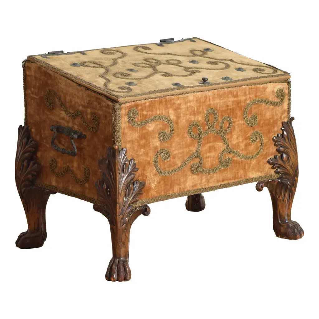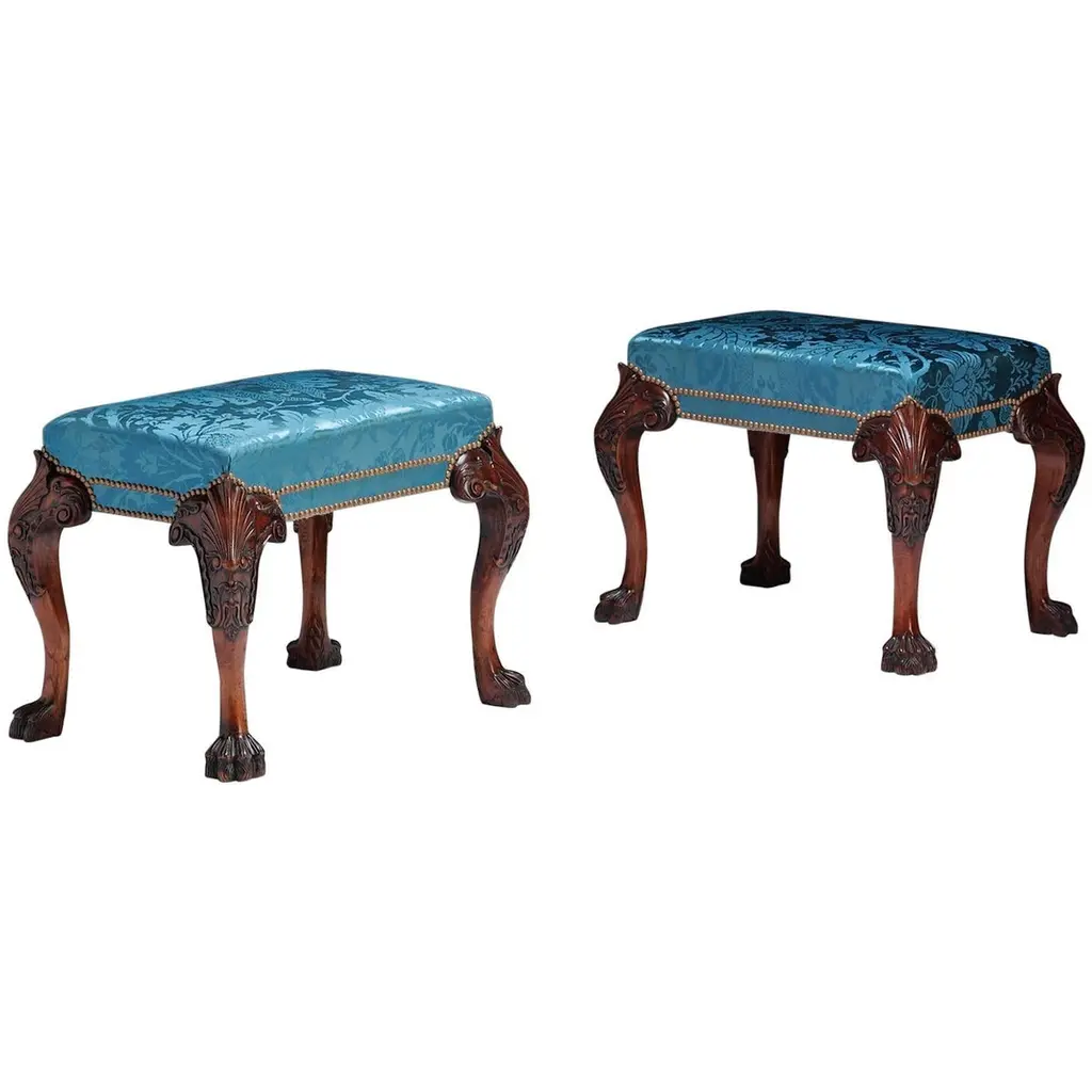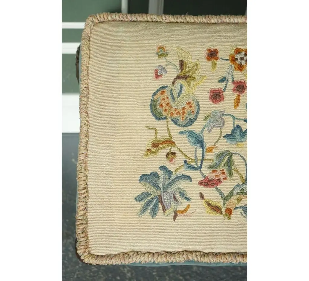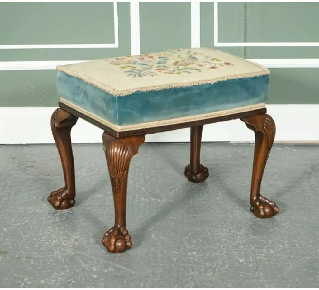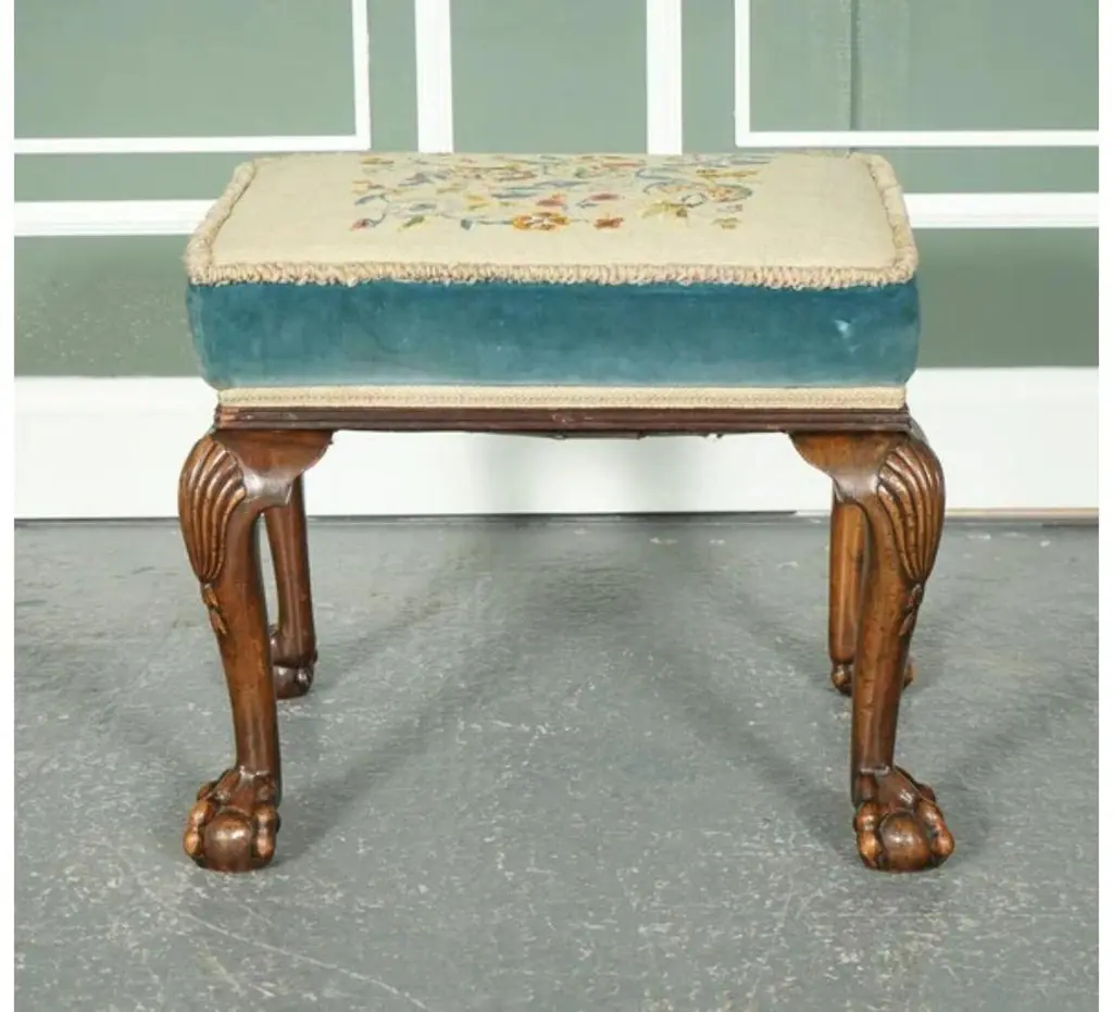 Fine Victorian Flower Upholstery Claw And Ball Carved Foot Stool