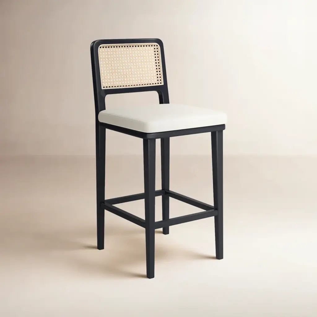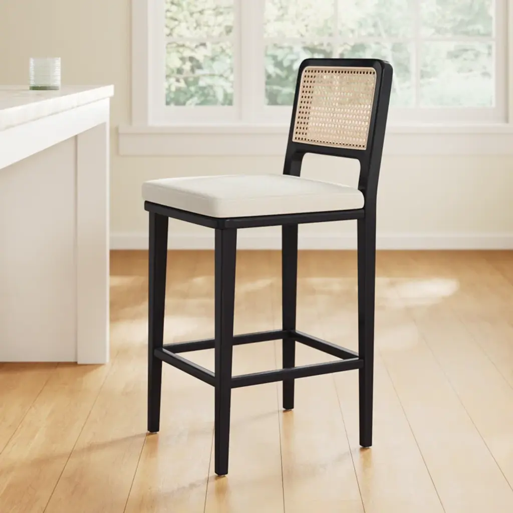 Modern materials refresh a mid-century look with solid ebony brushed beechwood frames and a textural inlay of natural cane with linen-like performance seating performance fabrics are specially created to withstand spills stains high traffic and wear ensuring long-term comfort and unmatched durability
