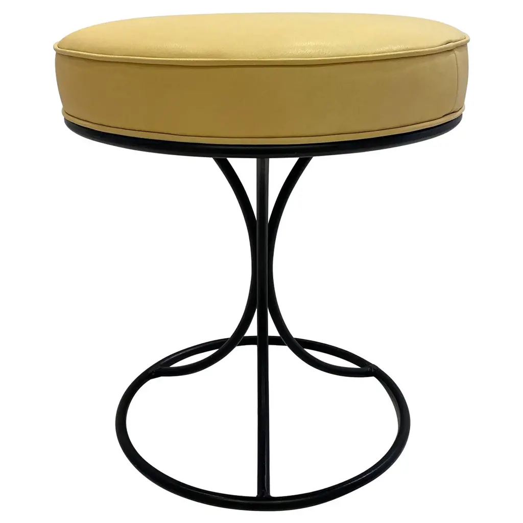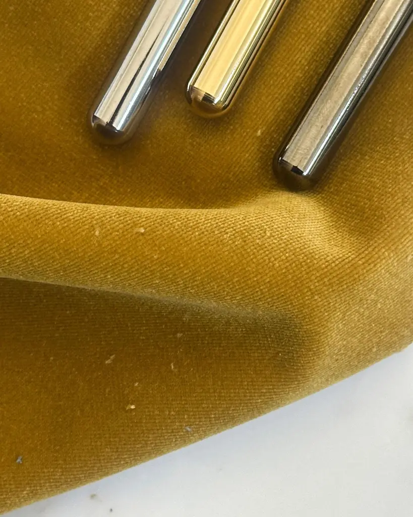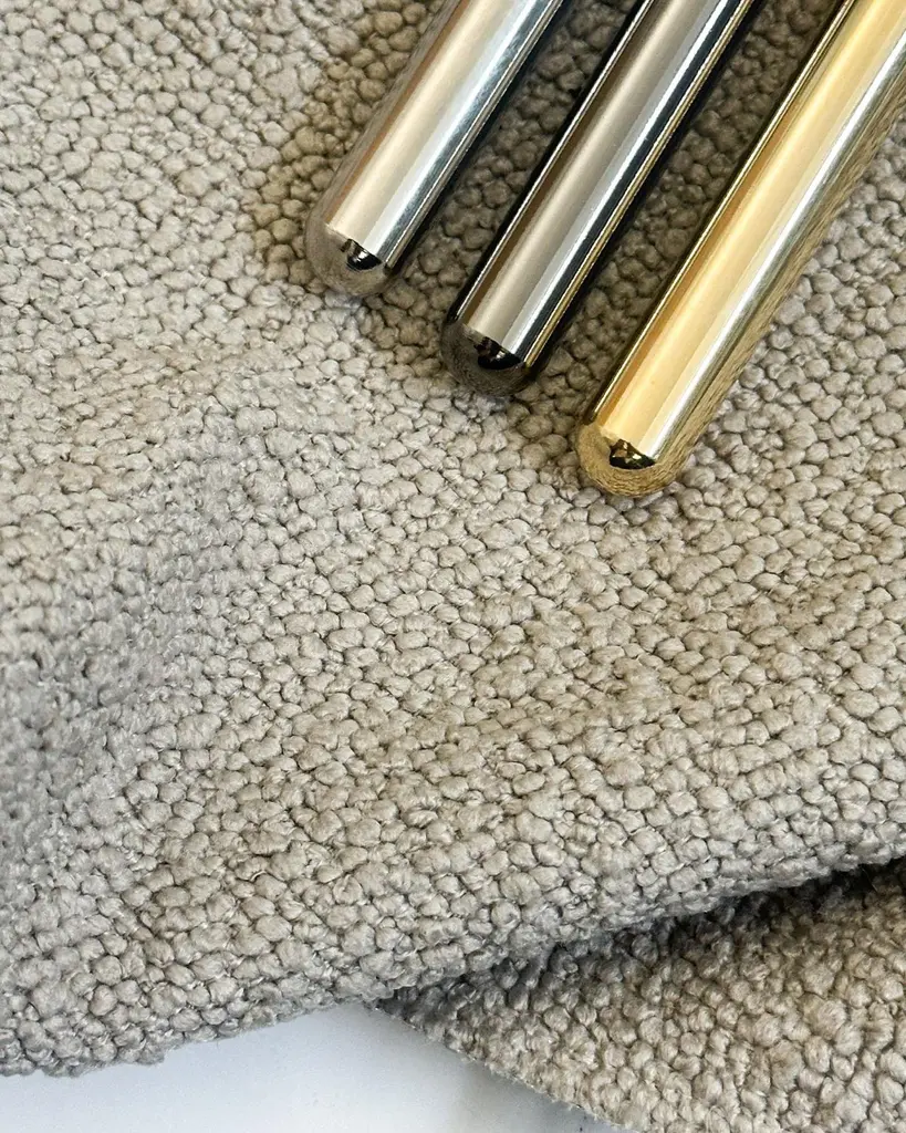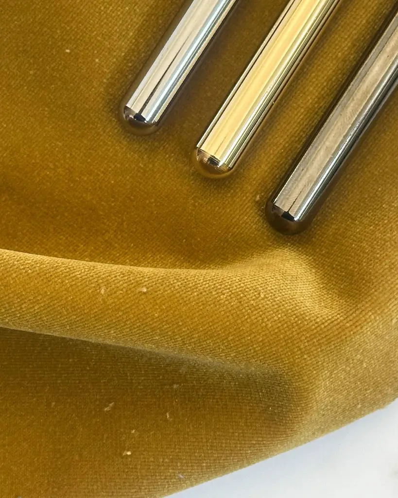 Flow low stool matt or light gold are made by an element, a continuous wire drawing geometries born from the projection of a circle on a triangle, in which the rigour of the continuous lines plays with the circular shapes that embrace the padding creating a support for the back.Flow low, stool or sculpture, design by Enrico Girotti, is characterized by elasticity and flexibility of design that uses wire, solid, durable and resistant, bent into shape with care and precision, completely made in Italy.More fabric and COM available and Hi Customizable.