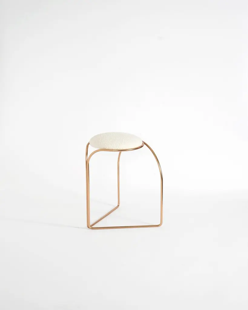 Flow Low Aureo Stool by GIROTTI ENRICODimensions: W 41 x D 37 x H 50 cmMaterials: Steel, Upholstery.Weight: 4 Kg. Enrico Girotti is an industrial designer who has found in the word “maker” his most authentic form of expression. Graduated in Industrial Design from the IUAV University of Venice, in his creations, he has established a strong connection between the creative and production processes, blending technical training with his personal research. He expresses himself in a continuous analog cross- disciplinary exchange between functions and forms. He engages in design both in the industrial and artisanal realms, striving to bring forth and incorporate the hidden connections between the concept, the context, and the people in the physical manifestation of the object. This integrated process, in which every occurrence is not random, rejects randomness. In 2017, he founded the brand lapiegaWD , as a direct and unmediated design initiative. This brand represents an ever-evolving synthesis of his research on materials, processes, forms, and relationships. In 2023, he founded EDIZIONI ENRICO GIROTTI, a platform to freely experiment with techniques, craftsmanship, and design, creating small series, uniquely numbered pieces, and advanced customizations of lapiega products, as well as pre-series.
