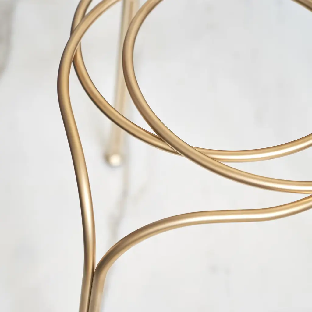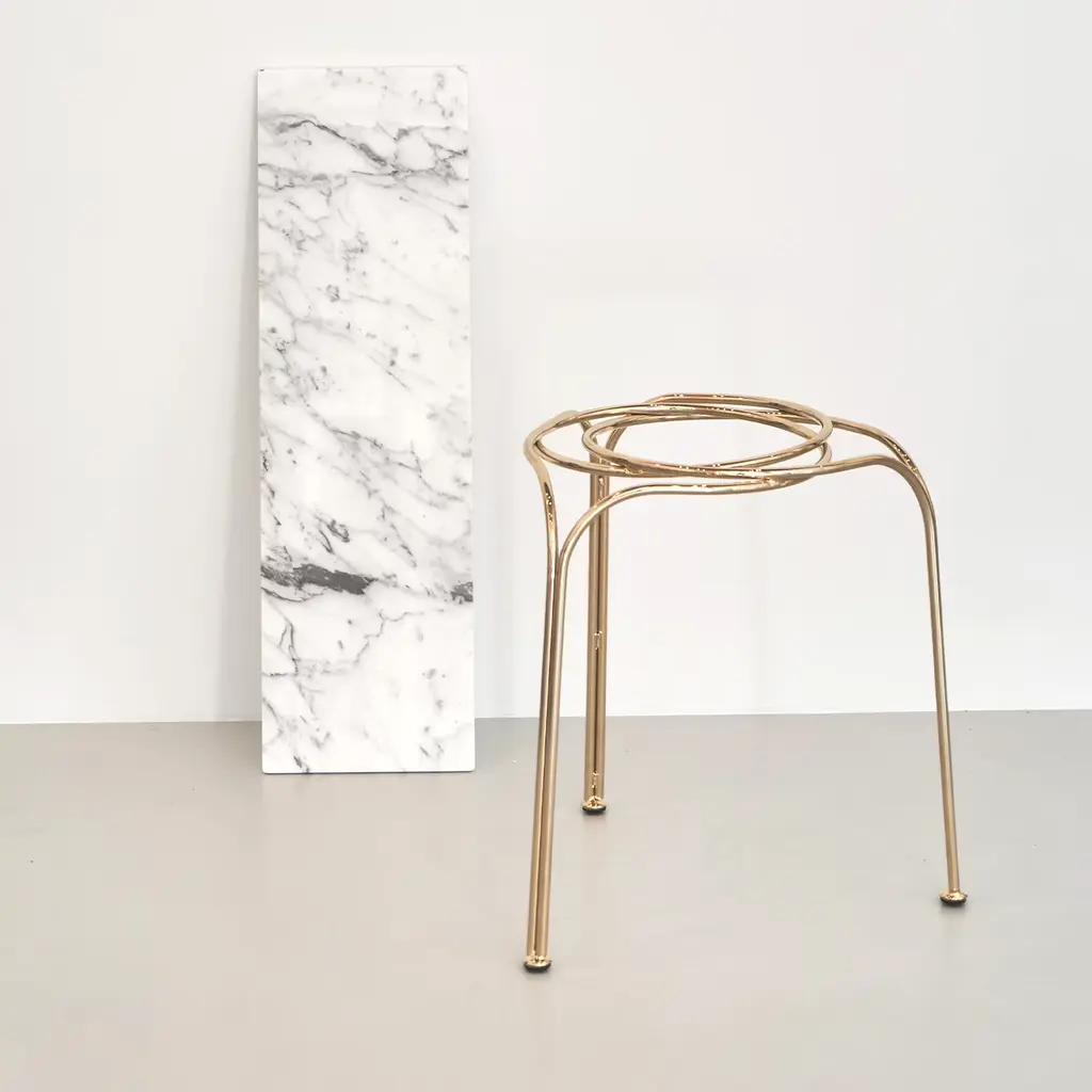 An element, a metal wire that is the stretch that draws a circle in space. Three elements, three circles, integrate and interpenetrate in a geometric game creating an unexpectedly solid object. Flow by Enrico Girotti is made in steel galvanized in polished gold. Please, ask the Concierge for customization options.
