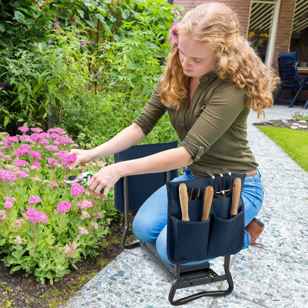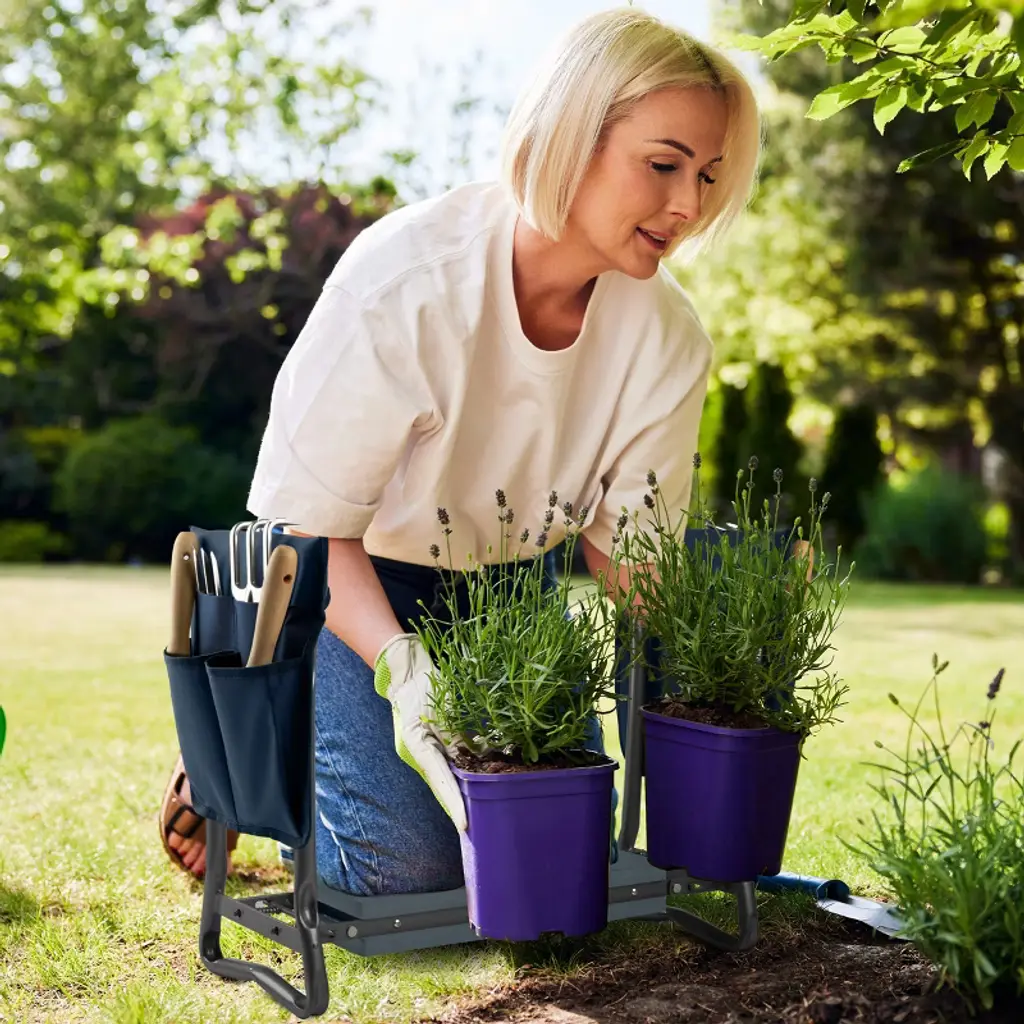 Stay comfortable while you keep your lawn or garden looking beautiful with the Garden Kneeler and Seat by Pure Garden. The dual-purpose kneeling pads for gardening with a weight capacity of 300lbs feature durable steel frames that fold for compact storage, two handles with convenient tool pouches for garden tools, detachable leg protectors, and an EVA foam pad with ample cushioning for your knees. Whether you're planting flowers, pulling weeds, or picking vegetables in the garden, this versatile bench helps reduce aches and keep your knees off the ground, making it a great addition to your gardening supplies or gifts for moms.