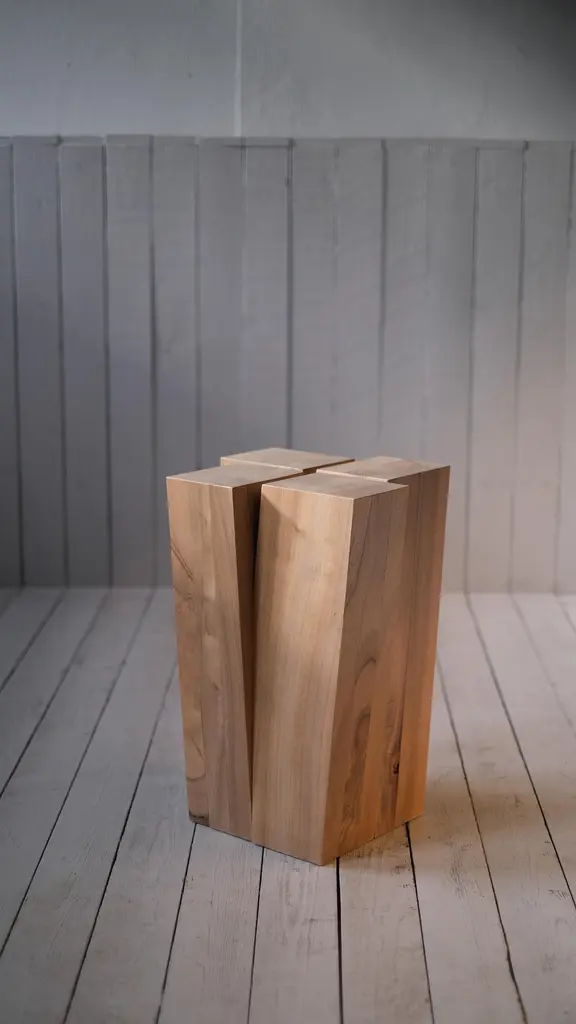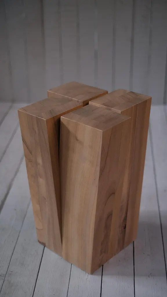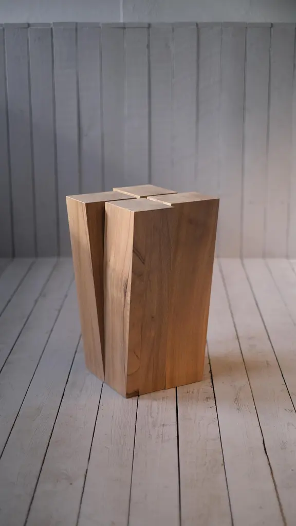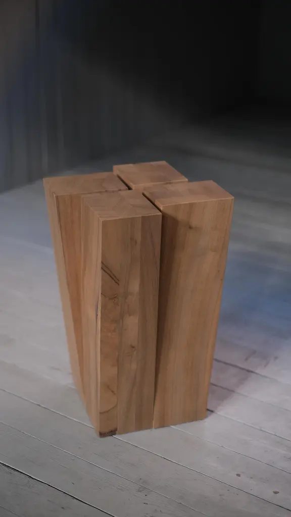 Four legs stool naturel by Arno DeclercqDimensions: W 32 x D 32 x H 50 cm Materials: African walnutArno DeclercqBelgian designer and art dealer who makes bespoke objects with passion for design, atmosphere, history and craft. Arno grew up in a family with parents who like to work with beautiful brands and objects.His father studied at the Royal Academy of Arts Fashion Department, he worked for Bikkembergs and made his own fashion brands, but has also collected tribal arts for more than 20 years. His mother, who worked with his father from the beginning, bought a shoe store in 2010 where they sold brands as Rick Owens, Ann Demeulemeester, Maison Martin Margiela, ... With the interest in beauty he learned from his parents, Arno studied interior design, after learning a lot about materials and with great knowledge of history he designed interiors and opened his own gallery for ethnographic art and design.The collection has come to the idea that there are too few interiors where they no longer have the big and static vases and candlesticks that the people had in big houses over 100 years ago. By focusing on architecture, ancient arts and design, after war buildings, defense buildings (bunkers and fortresses) and tribal arts, he created a collection that became a Classic.Each piece is unique because it is entirely handcrafted by him. Made of tropical hardwood called Iroko this he discovered after one of his many trips to West Africa interested in voodoo arts.In these strange tribal arts, the wood "Iroko" is used in many objects, according to their culture, the ancestors lives in these trees, and they also call this tree "the king of the forest".Arno also combines this with Belgian oak, that dried for more than 30 years, wood that was provided for the many furniture makers in Mechelen.By treating these objects through the Yakusugi technique or another mentioned "Shou Sugi Ban" an ancient Japanese technique where the objects are burned to protect the wood from weathering and subsequently fixed to get a patina look as long as possible. This gives each object a unique texture.