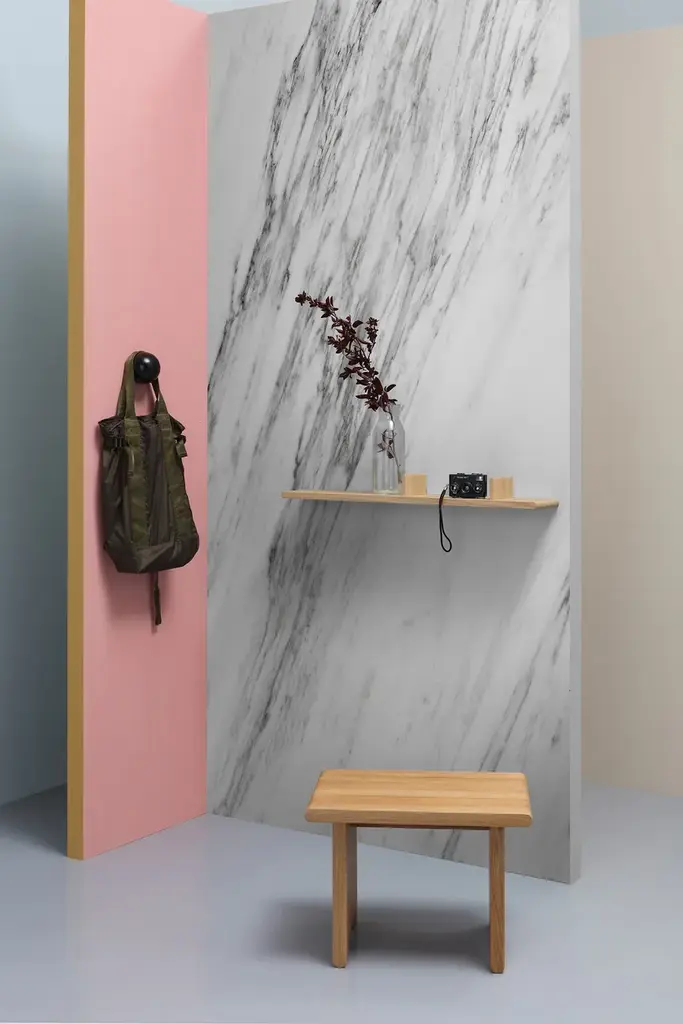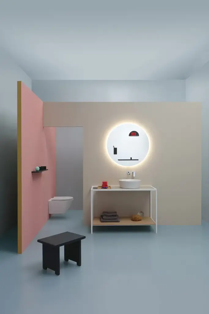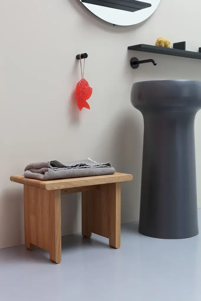 Stool in solid wood seat.Finishes: anthracite, laquered open-pore finish solid wood, natural oak.Franky is the bathroom accessories collection.