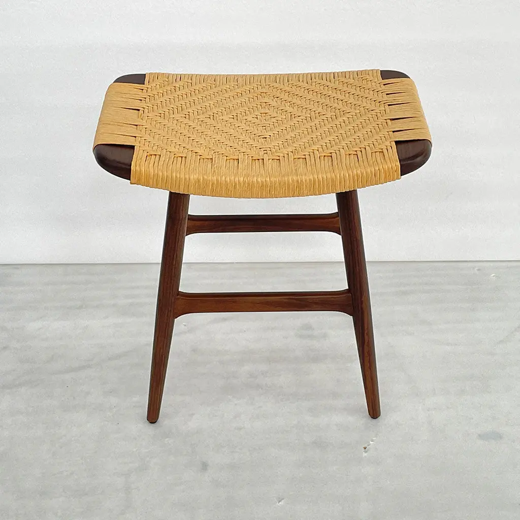 Freja is a collection of stools and bench that comes out of a wish to create sculptural furniture with the soothing visual appeal of Scandinavian furniture making traditions and a Japanese mode of expression. The archetypal furniture making principles of static and ornament converge to give Freja its elegant, yet simple character. Seen from different angles legs and aprons optically interweave to form a trellis, the seat floating lightly with either woven paper cord or leather as only decorative feature.