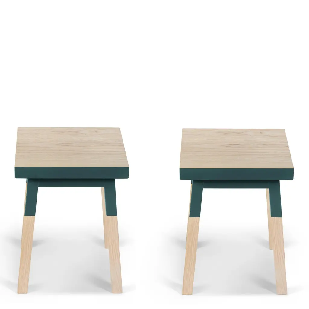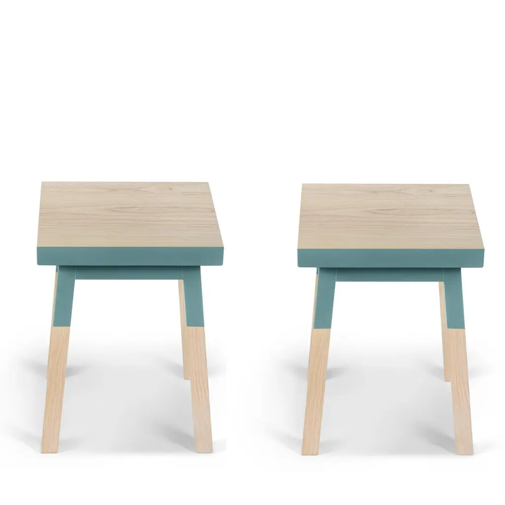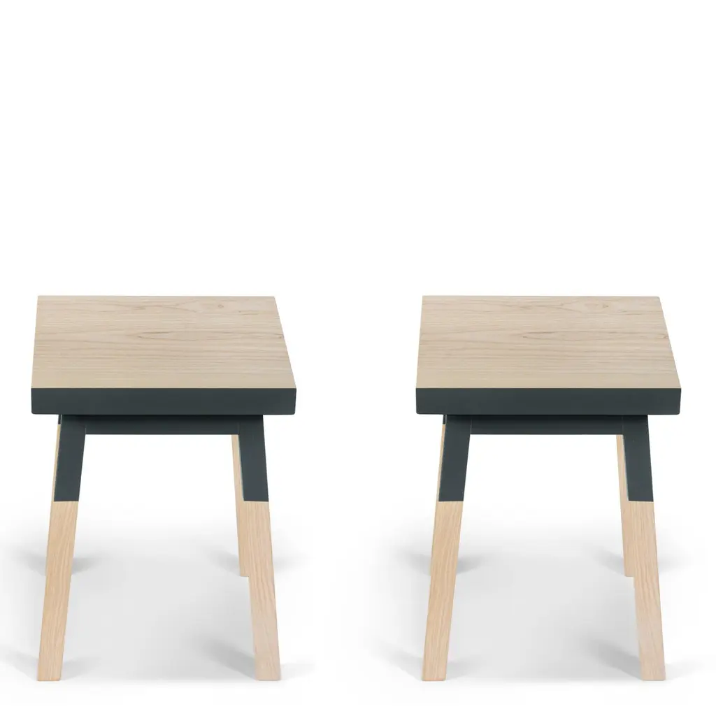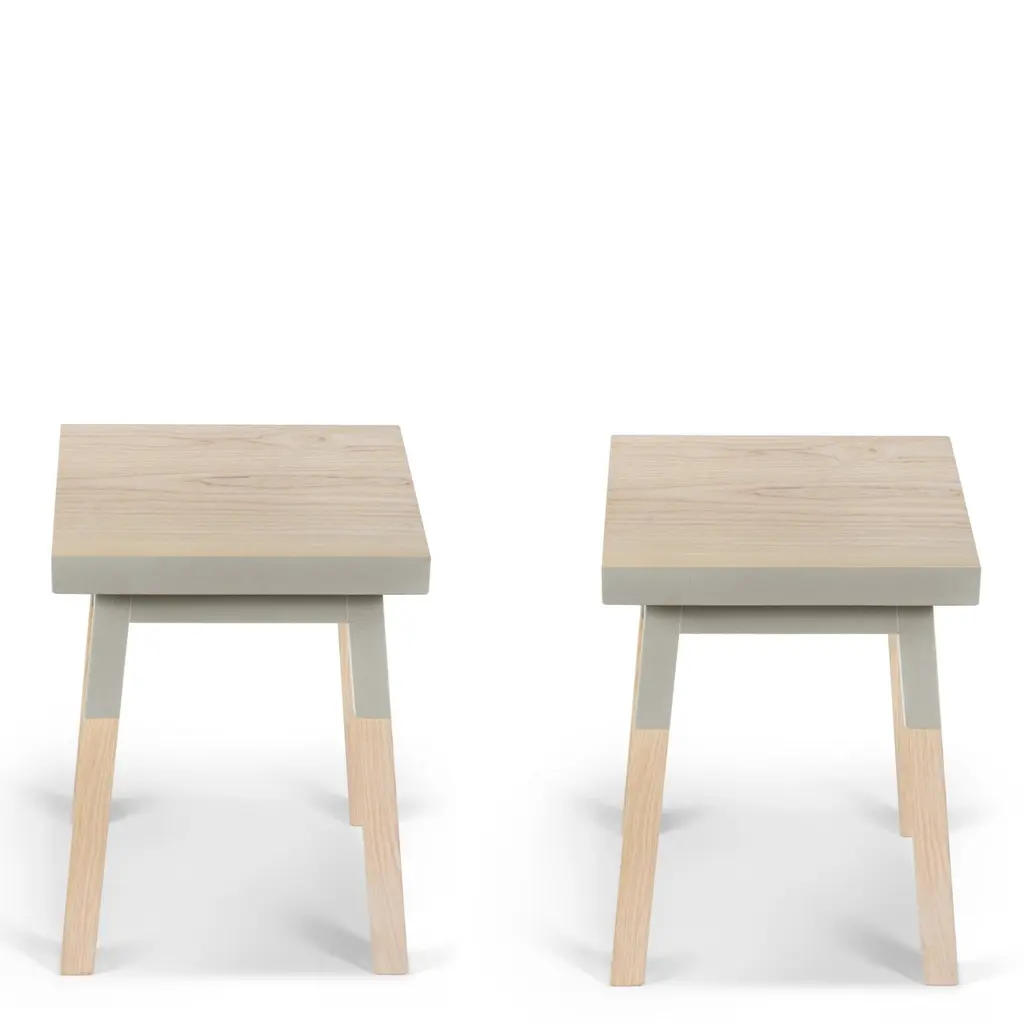These 2 square stools belong to the EGEE Collection designed by the famous Parisian Designer Eric Gizard. EGEE has this very fluid and sleek design enhanced with trendy and muted colors painted with a very special and recongnizable "short-pants" finish from the Belt to the knee.100% solid ash wood from French sustainably managed Forests.Weight: 5 kg / 11 lbs each Side: 35 cm / 13.8''Height: 45 cm / 17.7''Mon Petit Meuble Français provides exclusively with 100% Made in France Furniture.