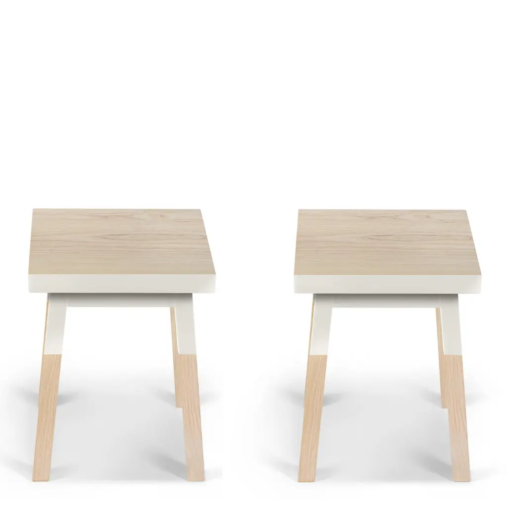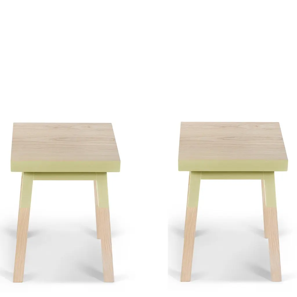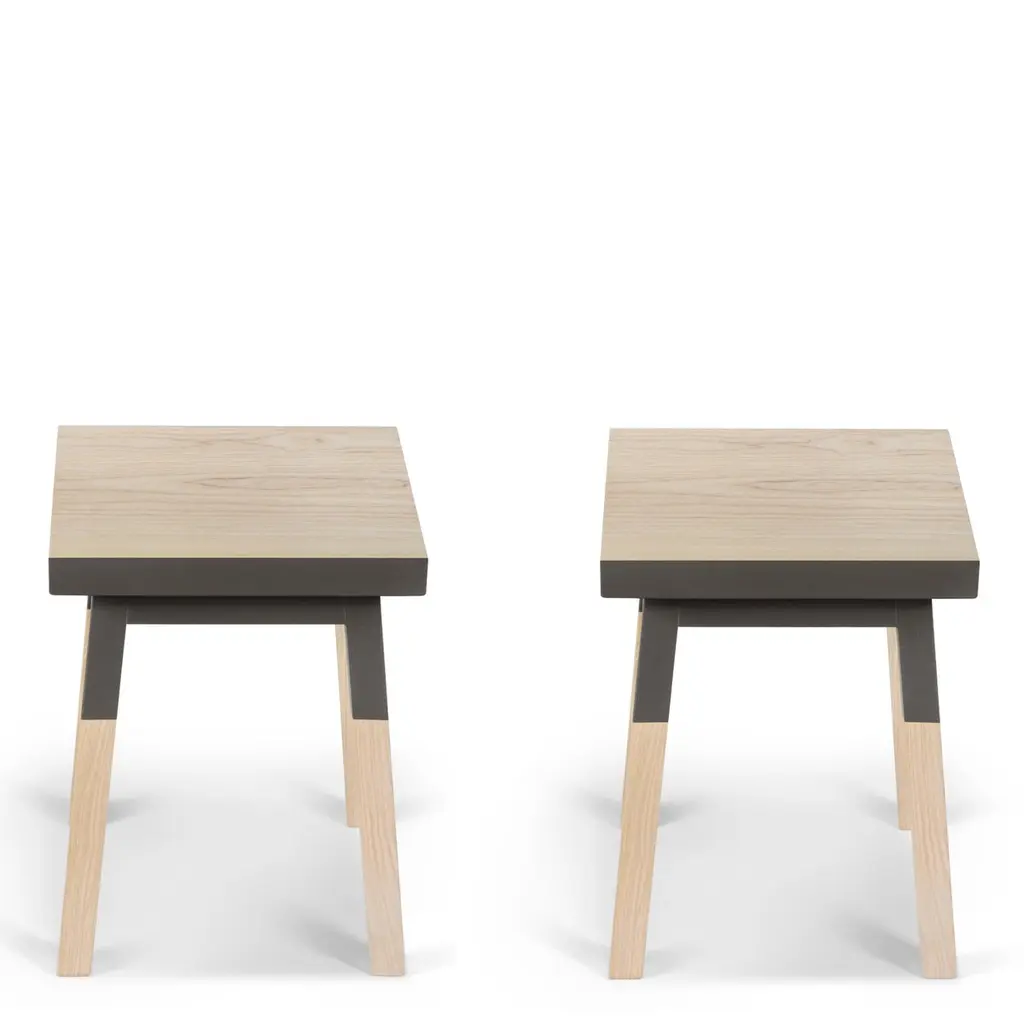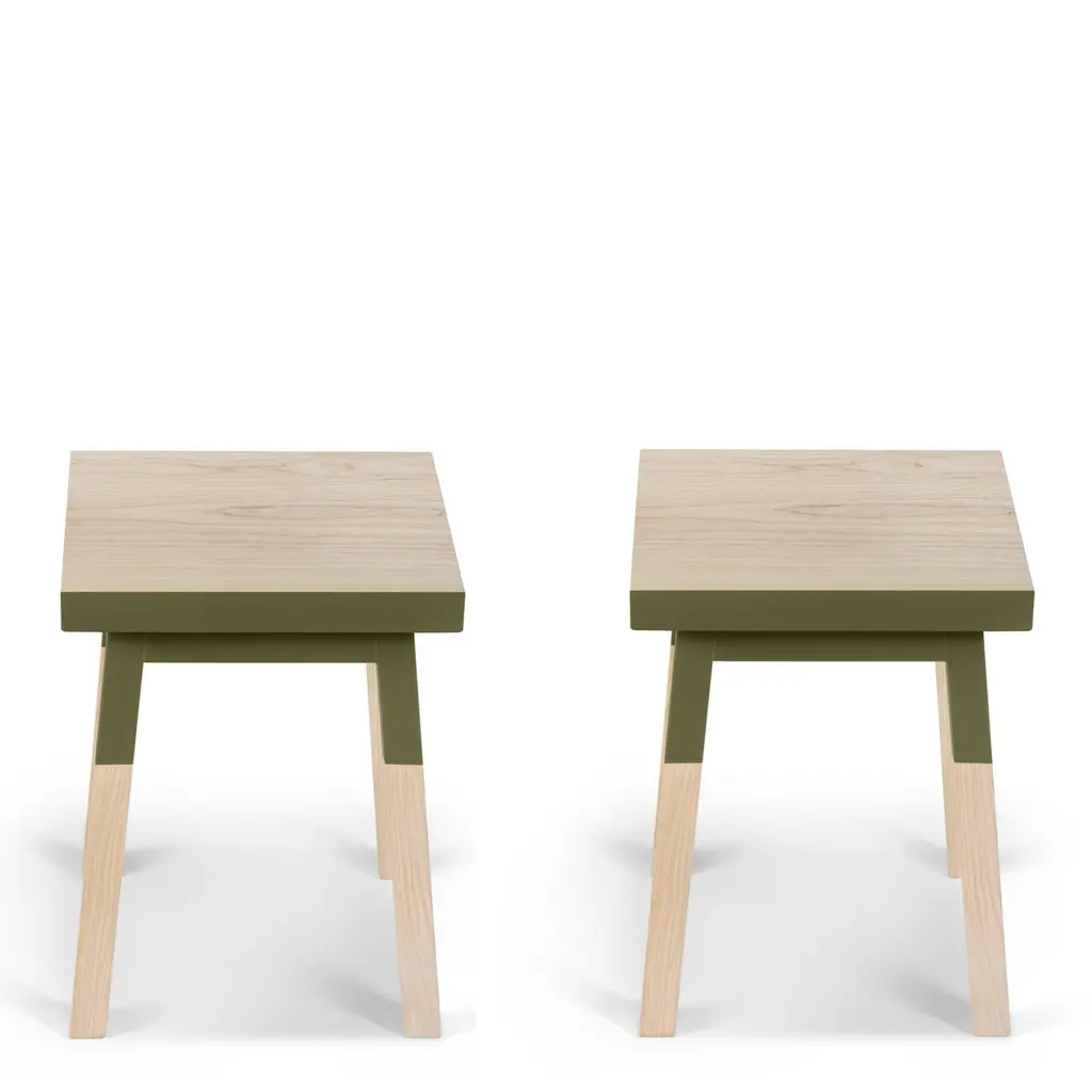 These 2 square stools belong to the EGEE Collection designed by the famous Parisian Designer Eric Gizard. EGEE has this very fluid and sleek design enhanced with trendy and muted colors painted with a very special and recongnizable "short-pants" finish from the Belt to the knee.100% solid ash wood from French sustainably managed Forests.Weight: 5 kg / 11 lbs each Side: 35 cm / 13.8''Height: 45 cm / 17.7''Mon Petit Meuble Français provides exclusively with 100% Made in France Furniture.