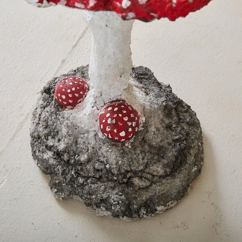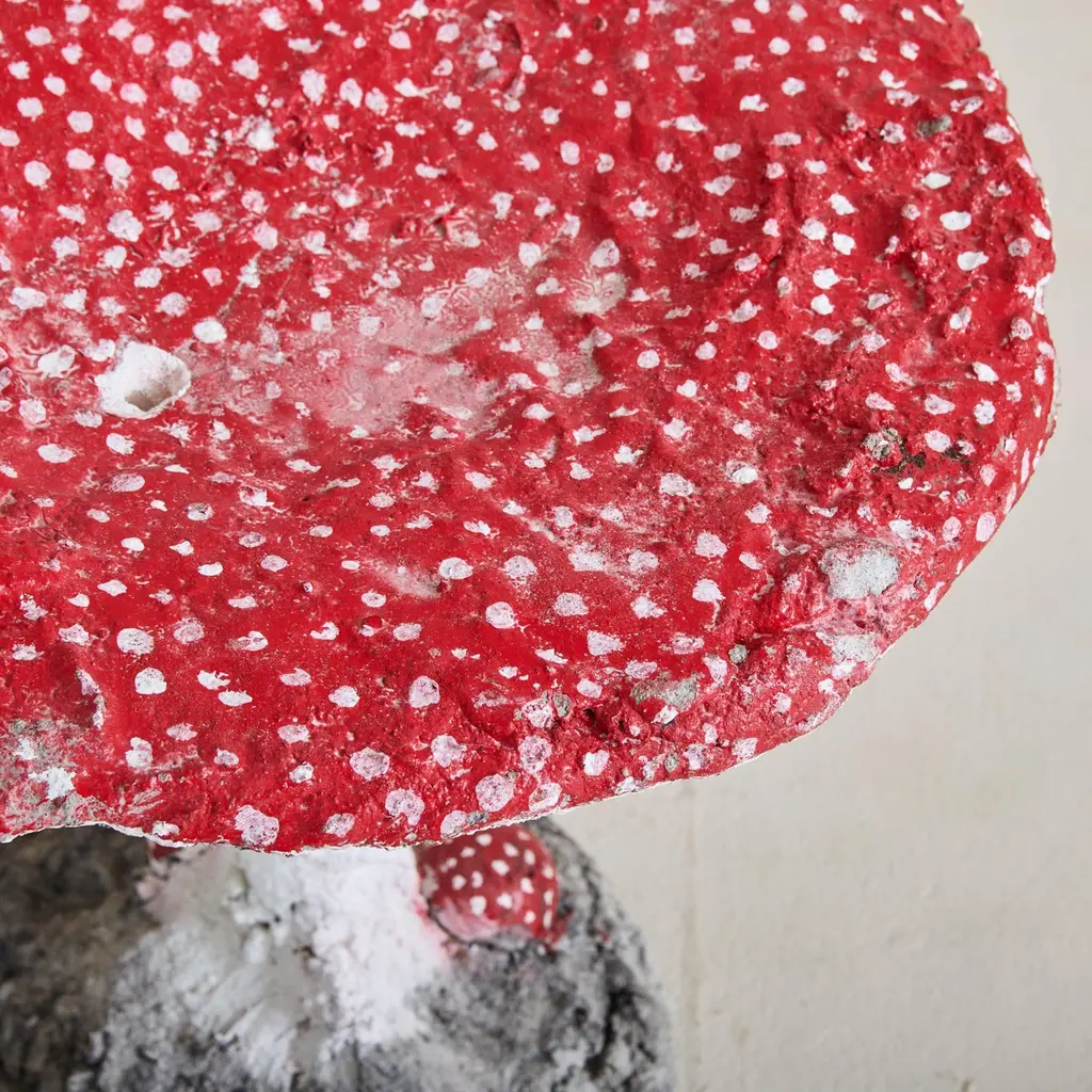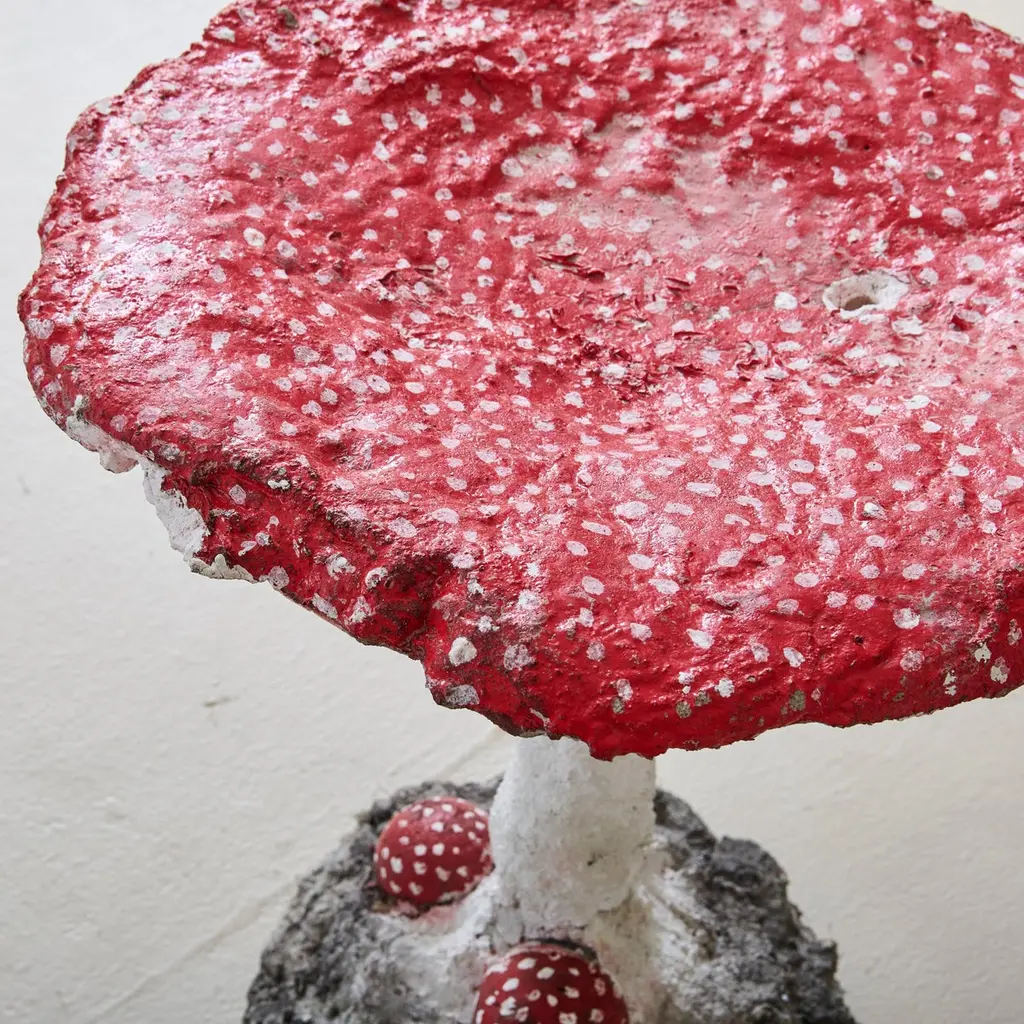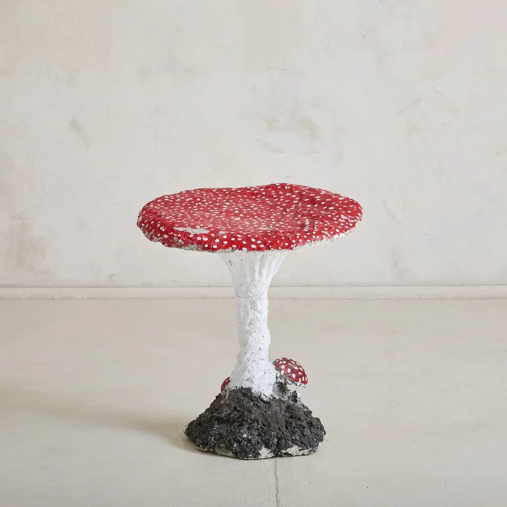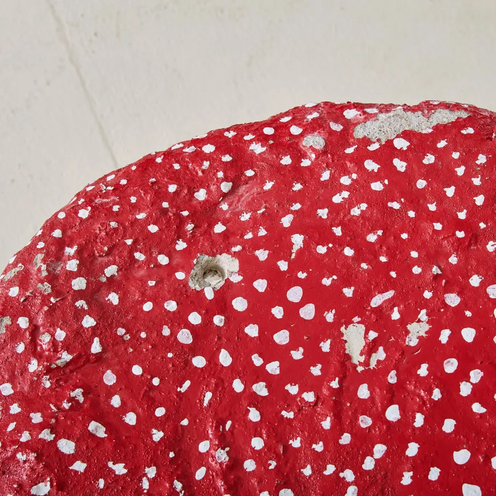 A 1960s French hand-painted concrete mushroom stool or garden sculpture featuring a red and white spotted top and small decorative mushrooms along the base. This garden decor could be used indoors or outdoors; it’s playful, whimsical, and has beautifully endured the test of time.Sold and priced individually.Condition: Good vintage condition. This piece shows signs of age that align with outdoor use, including paint chipping.While our vintage garden furniture, decor, and lighting were originally used as indoor/outdoor, prolonged exposure to direct sunlight, rain, extreme humidity, heat, cold, or wet climates can lead to natural aging, fading, and potential deterioration. We recommend using protective covers when not in use and storing items indoors during adverse weather or cold winters.Stone and other durable materials will develop a unique patina and character but may also weather and change color when left outdoors for extended periods. Some wear and tear is expected and adds to the vintage charm of your garden decor. The seller is not liable for cracks and fissures that occur on natural stone, either vintage or contemporary, in freeze/thaw environments or environments with excessive heat or moisture.By purchasing this item, you acknowledge that our Garden products require appropriate care to ensure longevity and optimal performance across different climates.