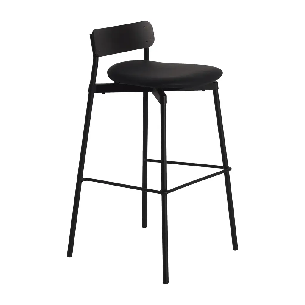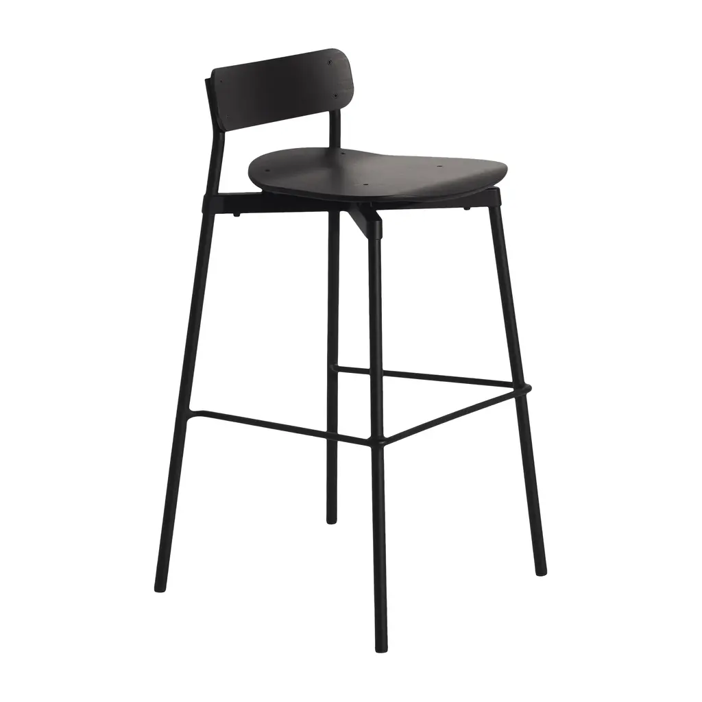 Indulge in the luxurious design of the Fromme Wood Stool from Petite Friture. Inspired by sleek racing bikes, this stool boasts a compact design and soft, comfortable flexibility thanks to strategically placed shock absorbers. Experience the ultimate in style and comfort with this one-of-a-kind piece. Highlights