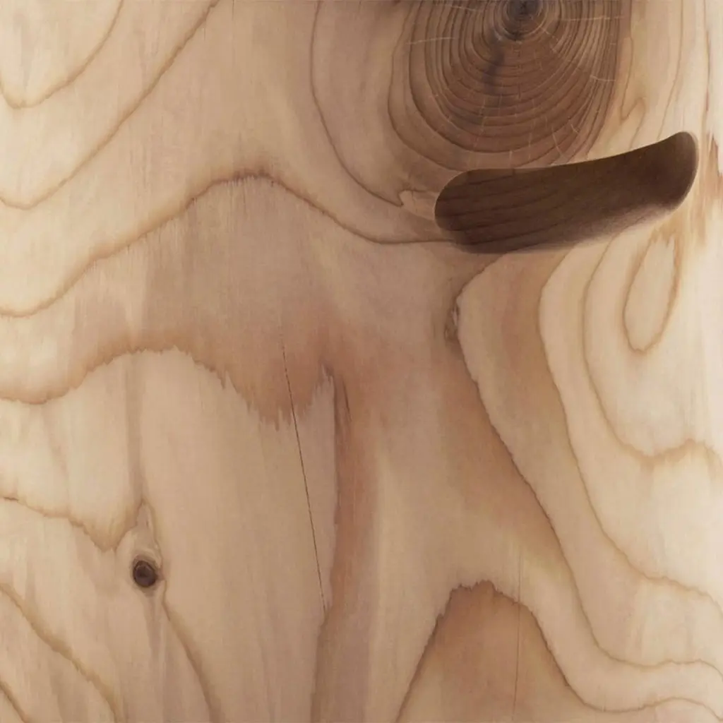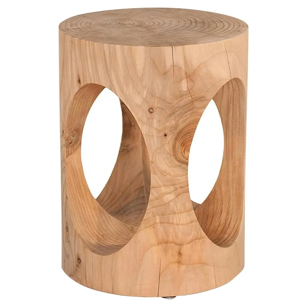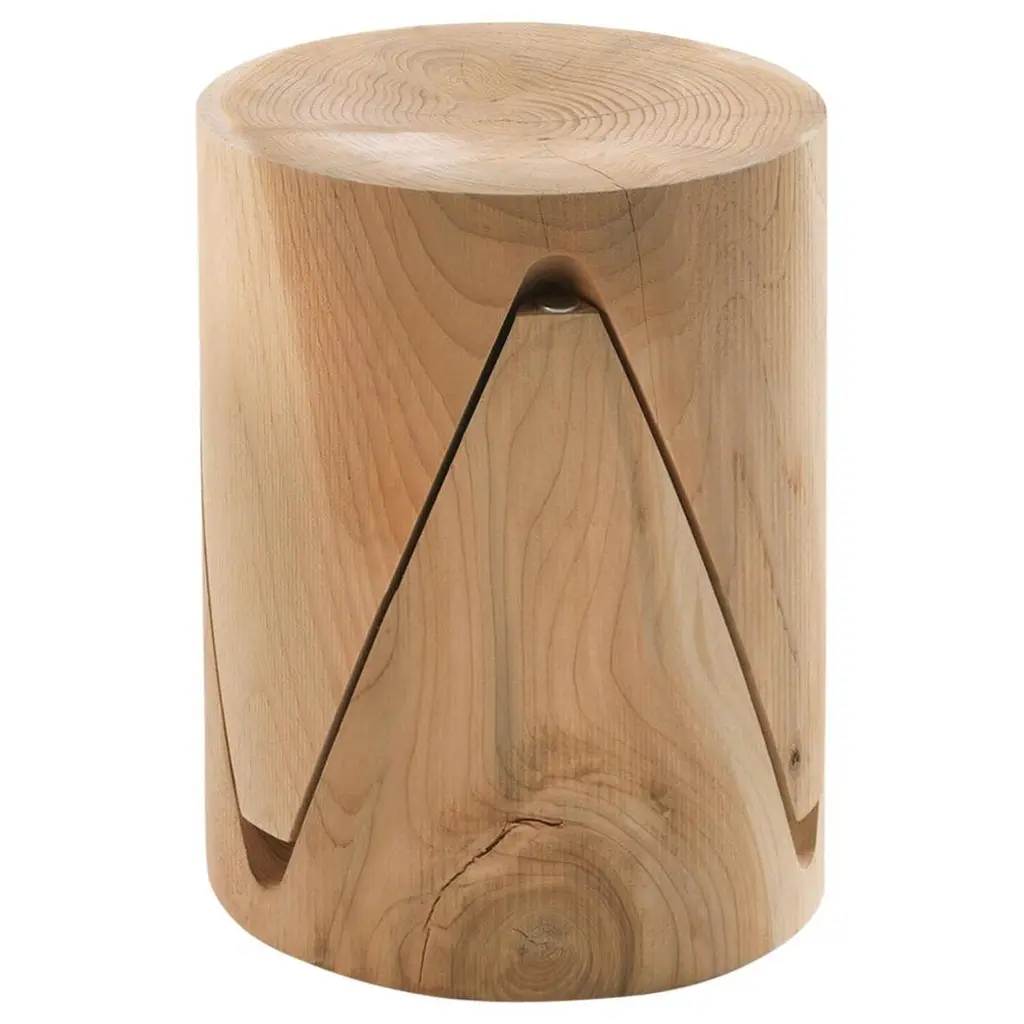 Stool Fuga in solid natural aromaticcedar wood. Made in one block of cedar wood.Treated with natural pine extracts wax.Solid cedar wood include movement, cracks and changes in wood conditions, this is the essential characteristic of natural solid cedar wood due to natural settlement and different environmental conditions.