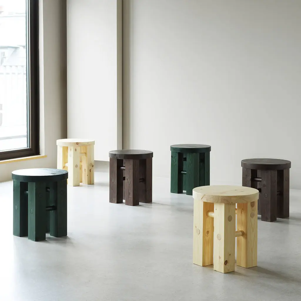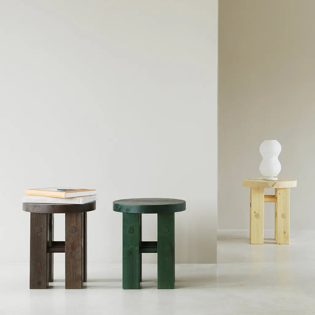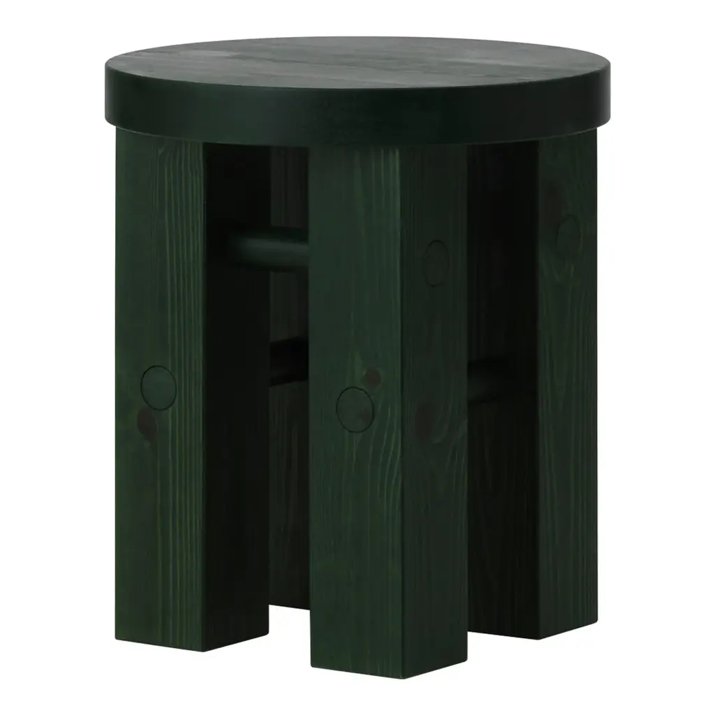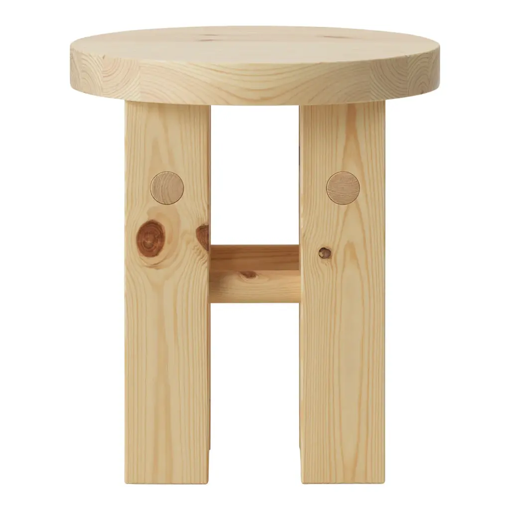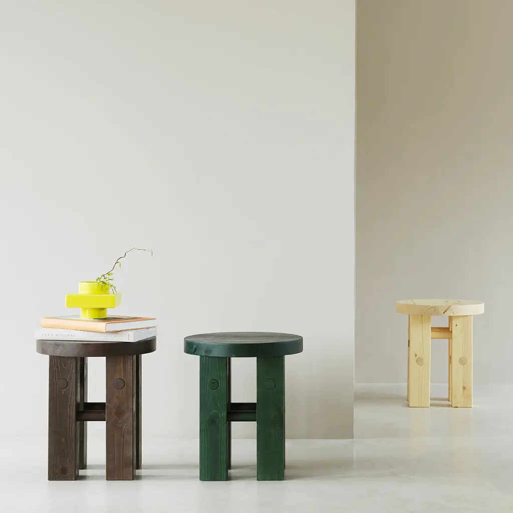 Pine is a decorative and versatile stool. The stool can be used as extra seating, as a side table for a lamp, as a pedestal for a vase or as a bedside table. Pine is named after its construction, which consists of 100% solid pine wood.