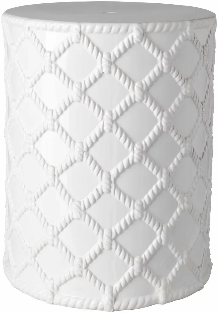 A stylish addition to the porch or patio, this ceramic garden stool is full of nautical appeal with its raised, rope-like design in blue.