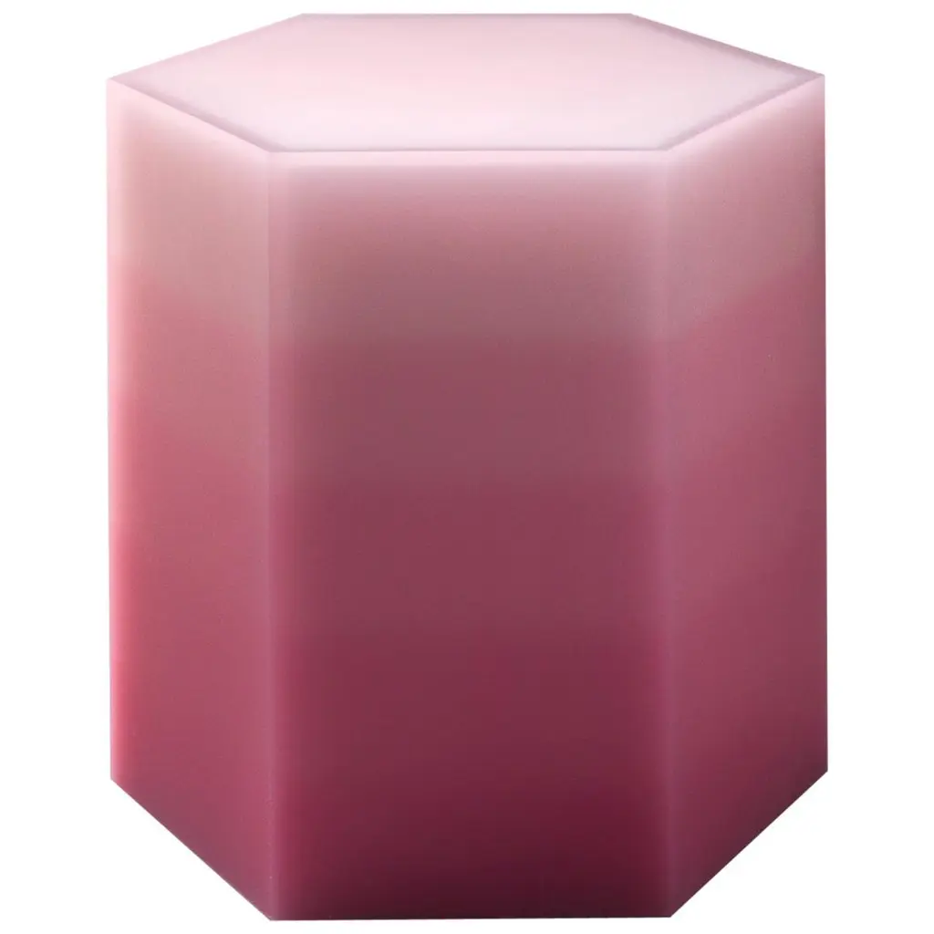 This ombre resin side table by Facture Studio goes beyond a simple accent piece to make a commanding statement. Hexagonal in shape, it is meticulously crafted from five layers of ascending color saturation, gradually shifting from dark to light in a captivating illusion of dimension and translucence, bringing an artistic touch to this furniture piece. The contemporary design combined with the bright colors used by Facture Studio create a playful and modern effect that can brighten your space. The piece can also function as a stool. Available in grey, orange, pink and with a blue stripe. However, colors can be also customized from any Pantone Reference. Contact the gallery for more information. The lead time for this item will vary depending on level of customization. The item is available in custom colors from any Pantone reference and can be made to custom size specifications.See our shipping policies. For quotes, please contact us. All sales are final.