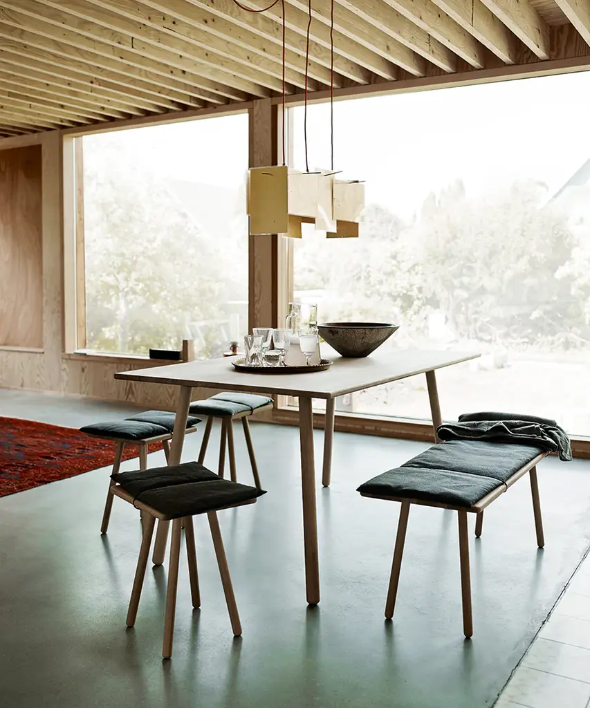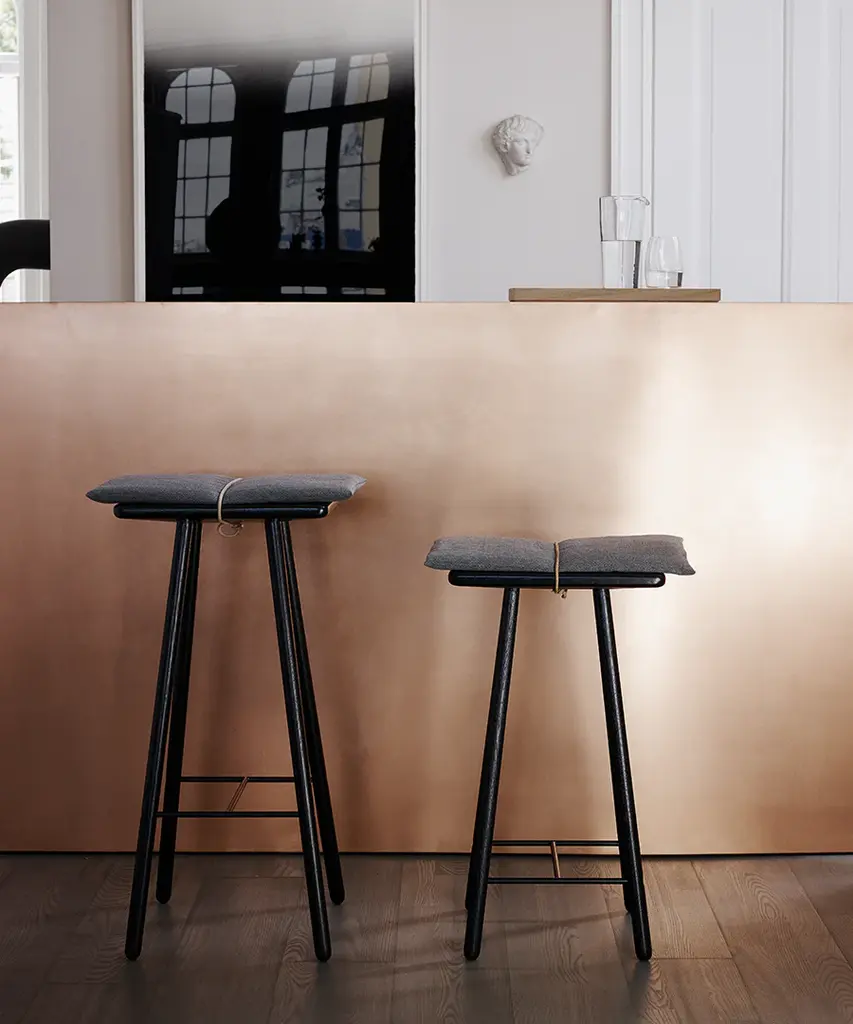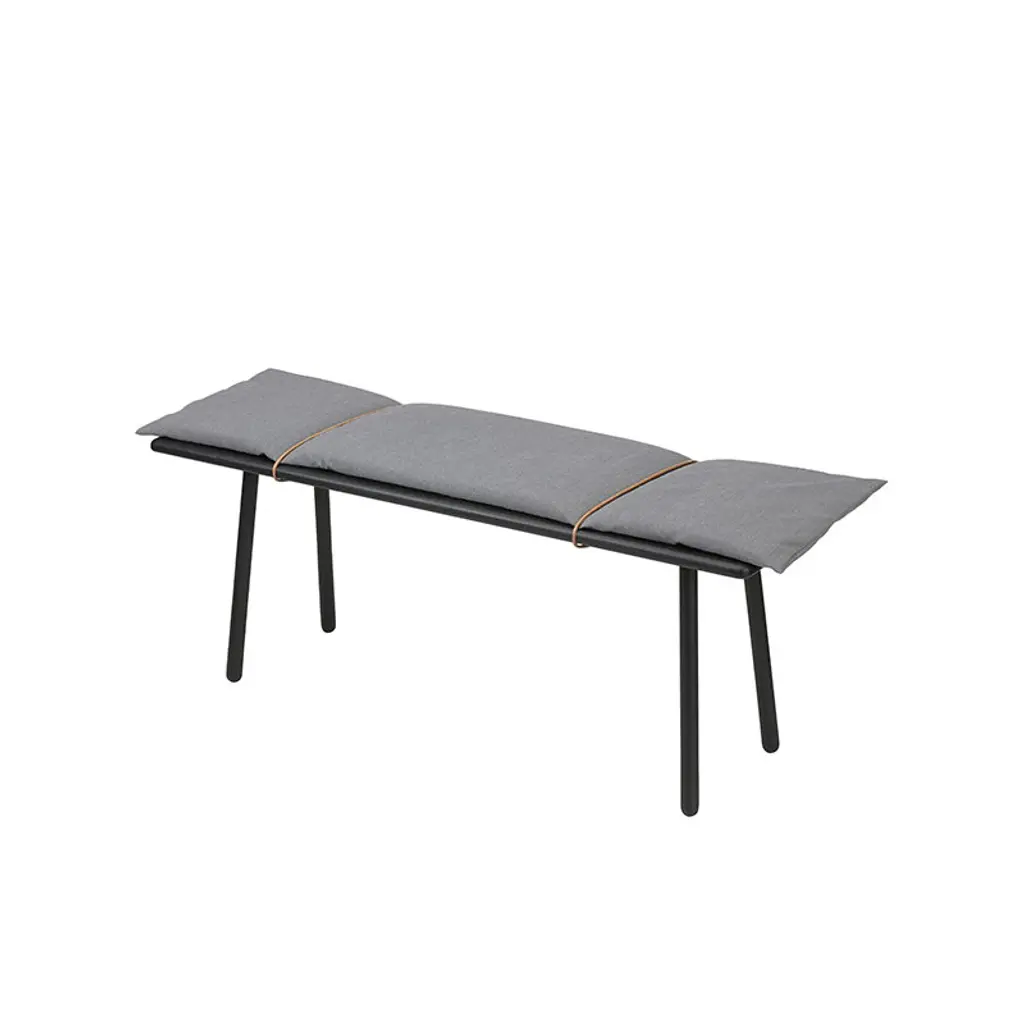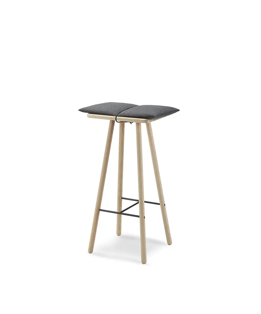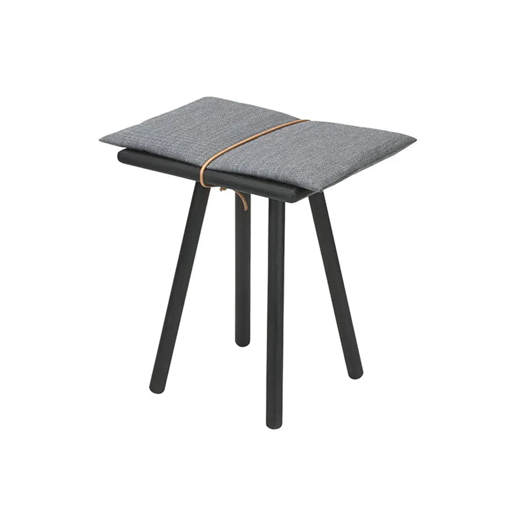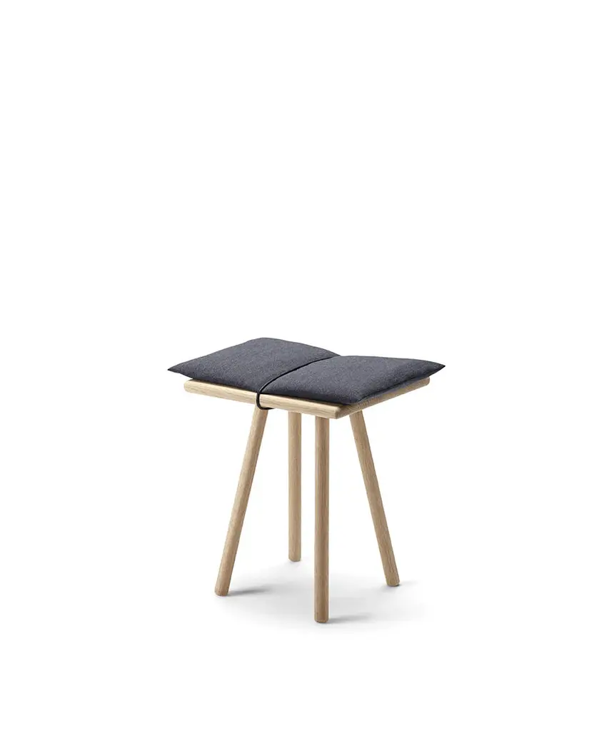 Japanese and nordic sensibilities meet in the minimalist Georg series. The design is characterized by the slender wooden poles and soft surface, where a woolen cushion is kept in place by a braided leather strap. The legs are stabilized by metal H-frame that also serves as a footrest. Designed by Chris Liljenberg Halstrøm and manufactured by Skagerak, a family-owned design company from Denmark established in 1976.