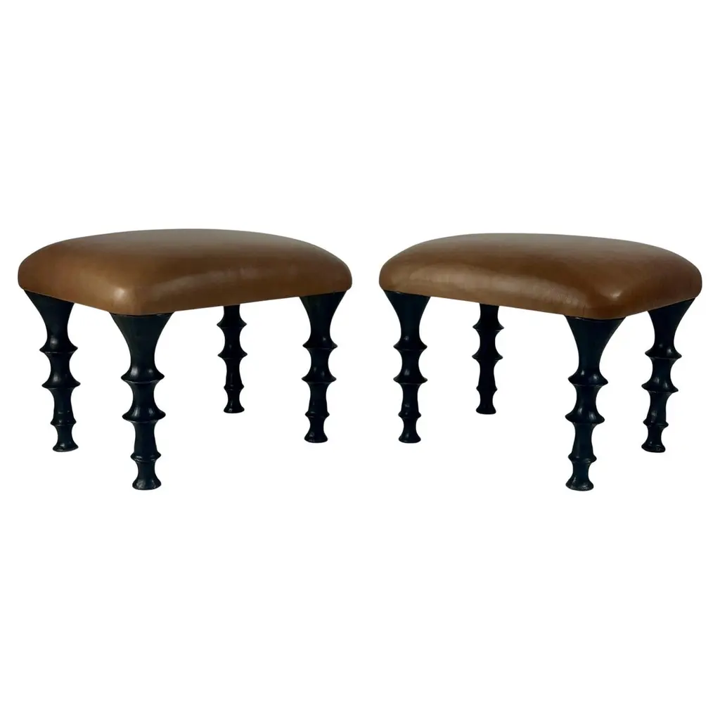 George V Pair Of Leather Upholstered Fireside Stools With Nail Head Trim