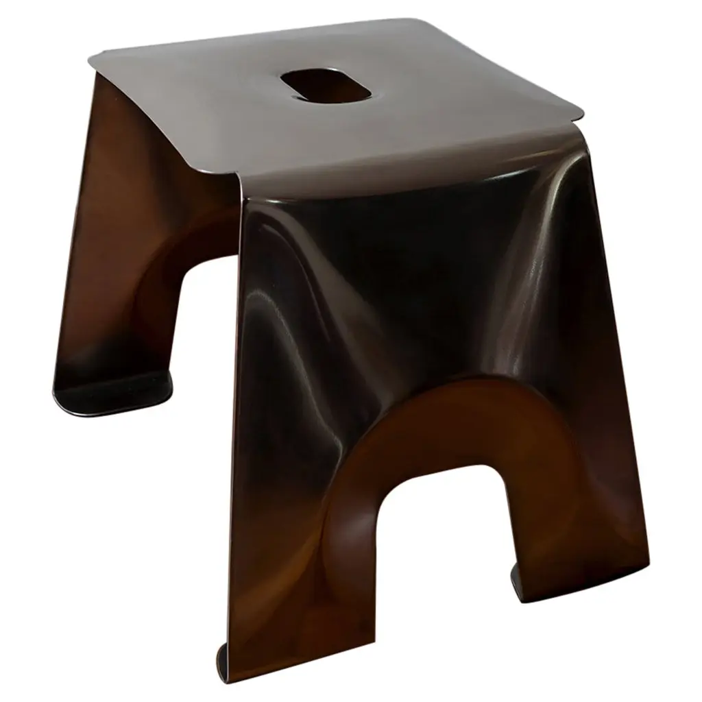 A family of coffee tables made of aluminium in two different sizes, Inout 45/46 have a rectangular shape and are characterised by the particular aluminium finish that creates a mirror effect, allowing the light to reflect on the surfaces to create different suggestions each time. Not guaranteed for uncovered outdoor use.Side table/stool in aluminium.Additional Information:Material: AluminumDimension: 35 W x 35 D x 45 H cmQuick Ship: Available with shipping the week after the order receipt, upon confirmation of availability.