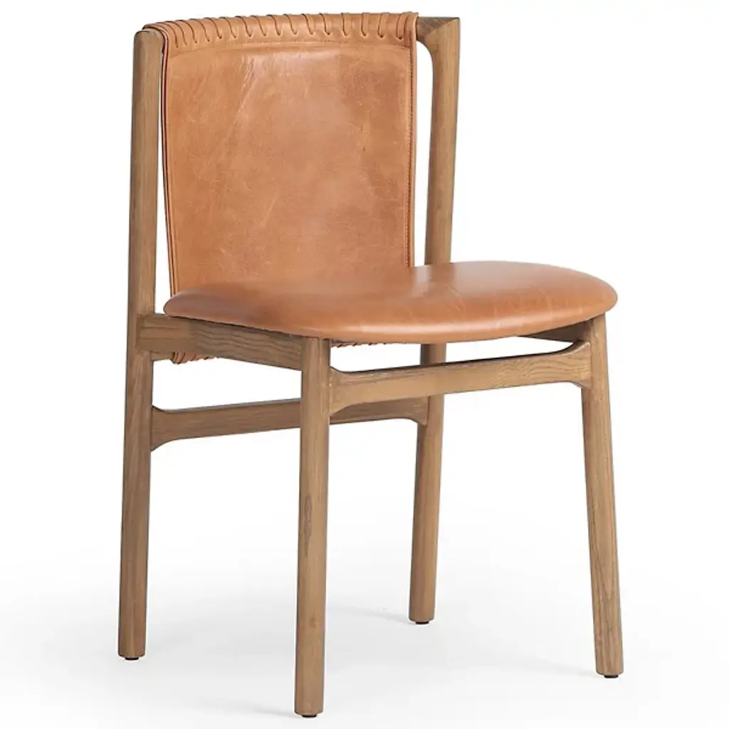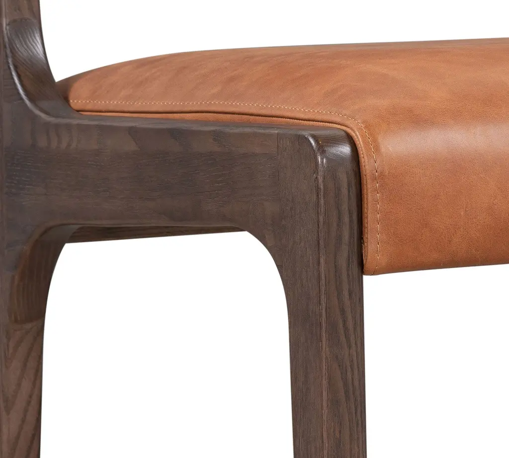 Poise leather against wood whenever you want a balance of warmth and formality, soul and sophistication — like a minimalist casita in Santa Fe. Hammered glassware at the counter is the perfect match.