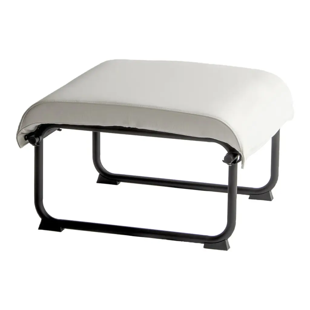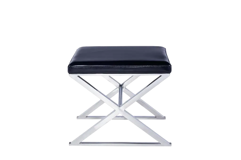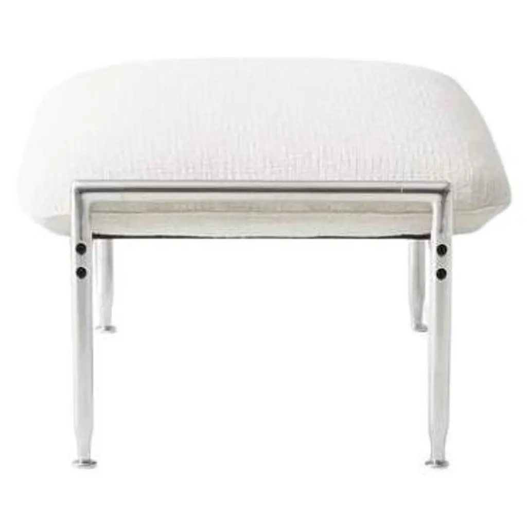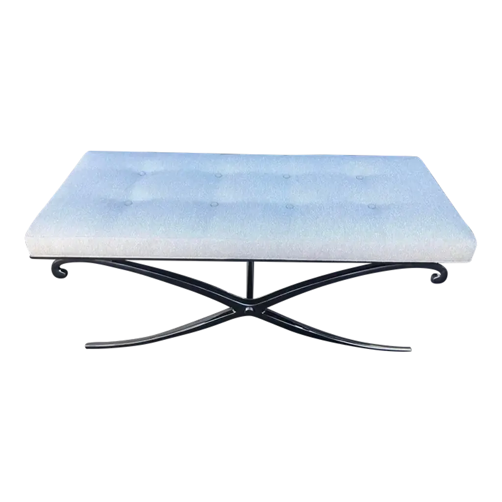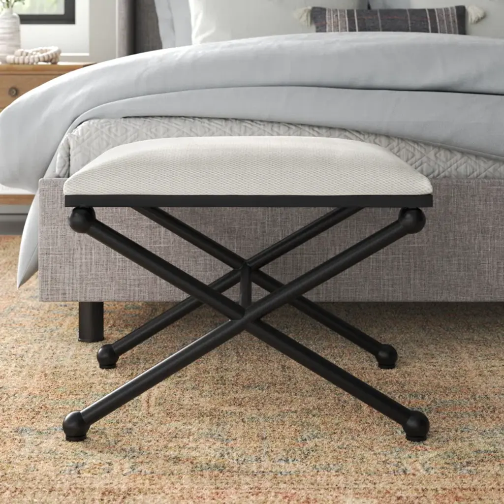 With classic simplicity, this small bench features a smooth iron base finished in satin black, and upholstered in a crisp textured white polyester.