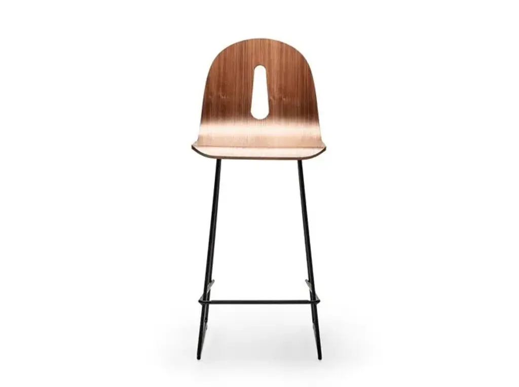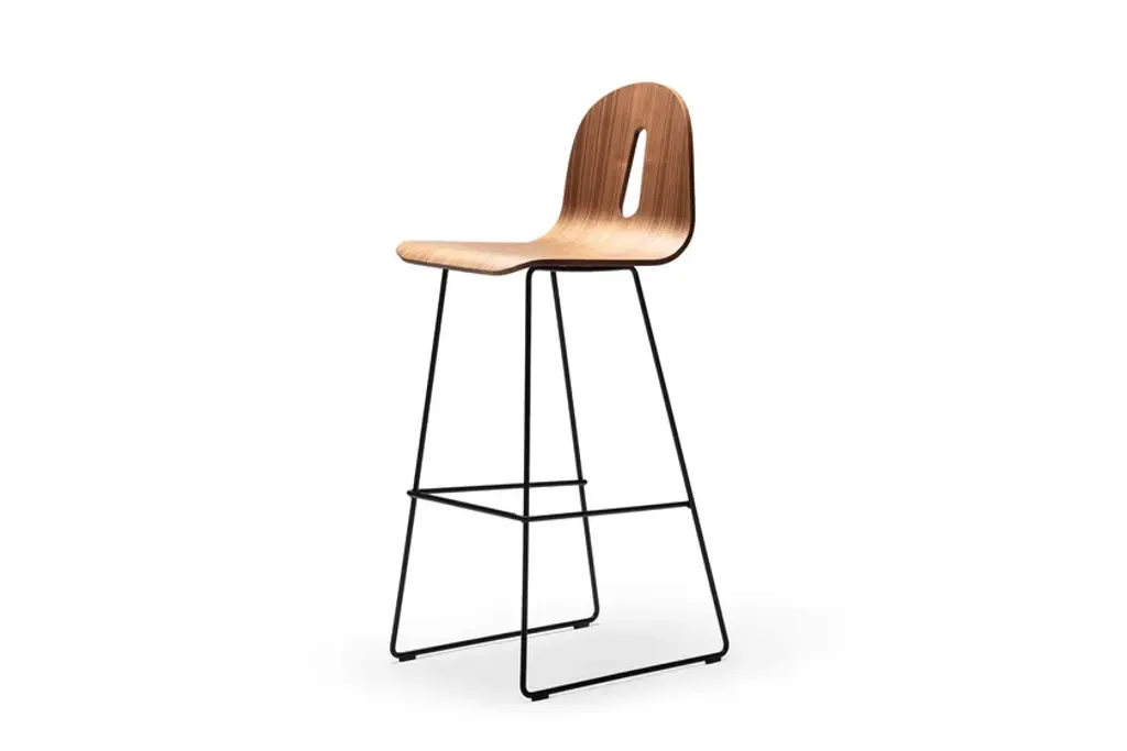 Gotham Woody SL SG 80The Gotham Woody is a stylish collection of chairs, stools and a lounge chair, with walnut veneered shells and black painted metal sled base. Gotham Woody is a well articulated family, with a choice of the shells combining the precious nature of wooden shells with the modern and light shapes of the metal frames. The range is expanded by the padded version available in many different colors.Gotham It may look like a raindrop, a slender linear cut, an open - ing for gripping and for anchoring or even a window from which you can look through. Gotham was born like this, with this distinct and recognizable graphic detail which, in different versions, takes on different meanings and functions, strengthening its identity without ever appearing excessive. A seat that gradually, over time, has evolved into new versions enriched with finishes, colours and details. Created in 2010 from an idea of Dario Delpin, it has proven to be able to stand strong against passing fashions by being always modern without ever betraying its distinctive features: the delicate curve of its silhouette, its graceful graphic detail and the feeling of snugness and coziness of the seat itself. Simple concepts, but never conventional, which make this piece of furniture completely original notwithstanding its extreme linearity, and make it suitable for any setting and for every purpose