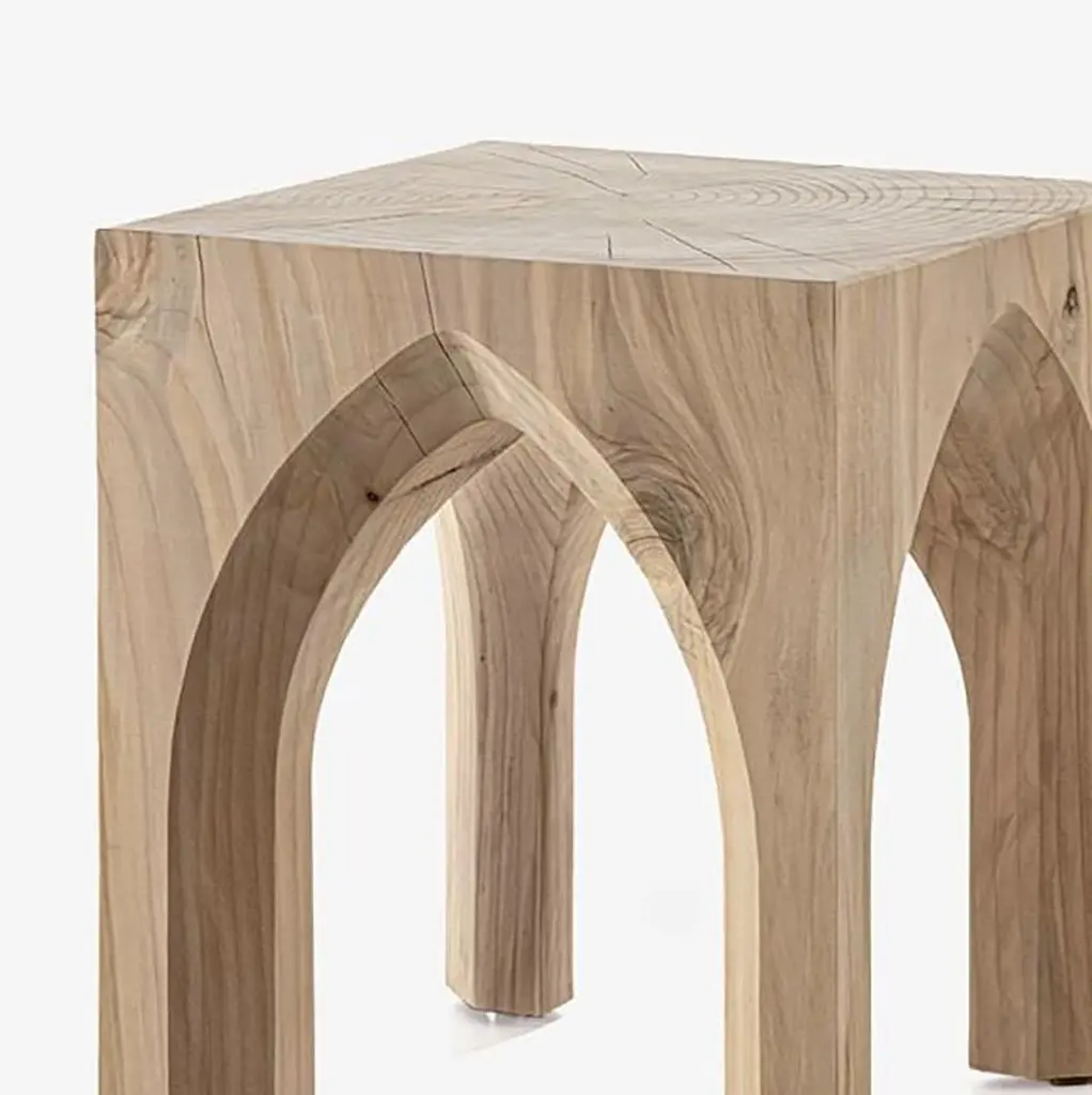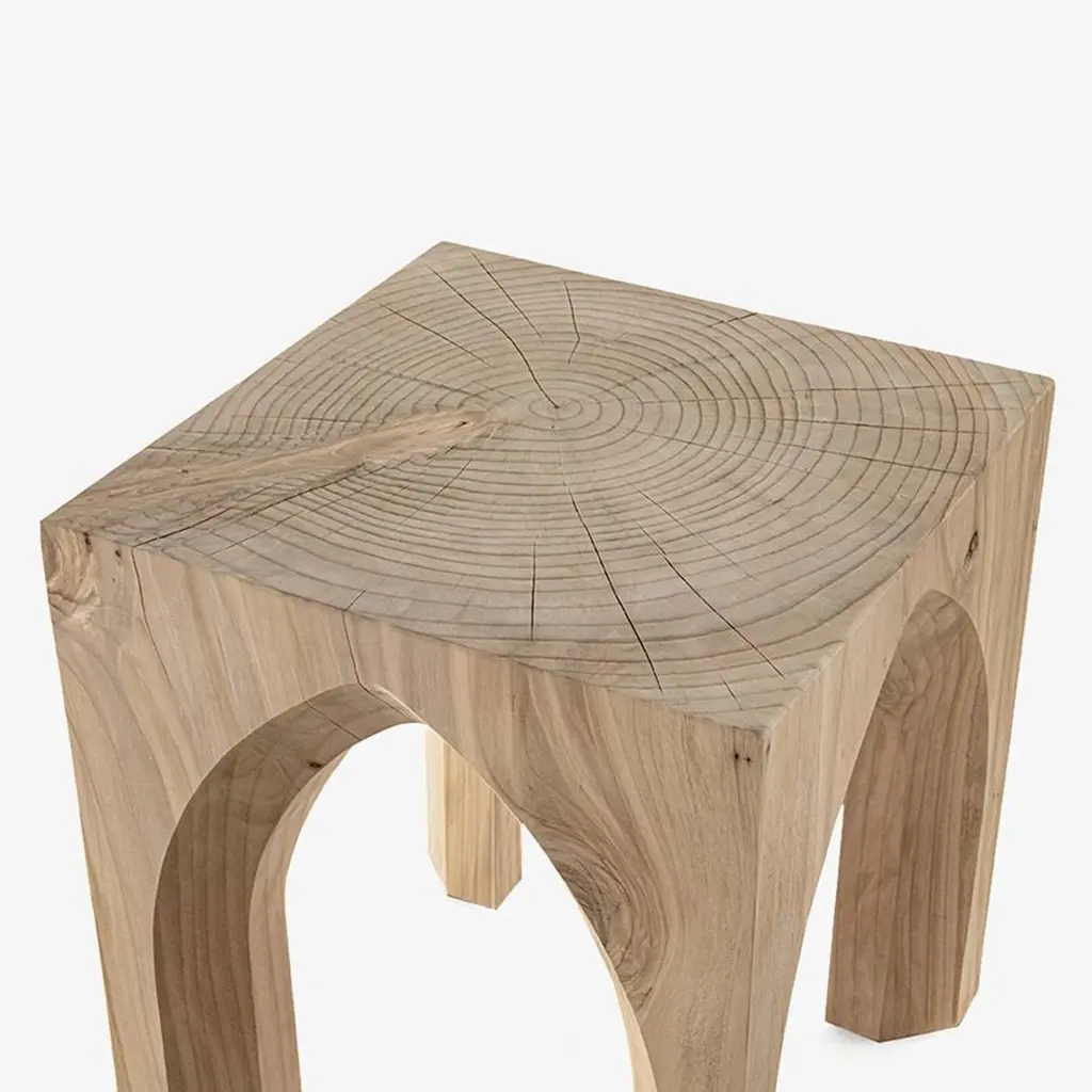 Stool Gothic Cedar made in natural solid cedarwood with natural pine extract wax treatment.Solid cedar wood include movement, cracks and changes in wood conditions, this is the essential characteristic of natural solid cedar wood due to natural settlement and different environmental conditions.