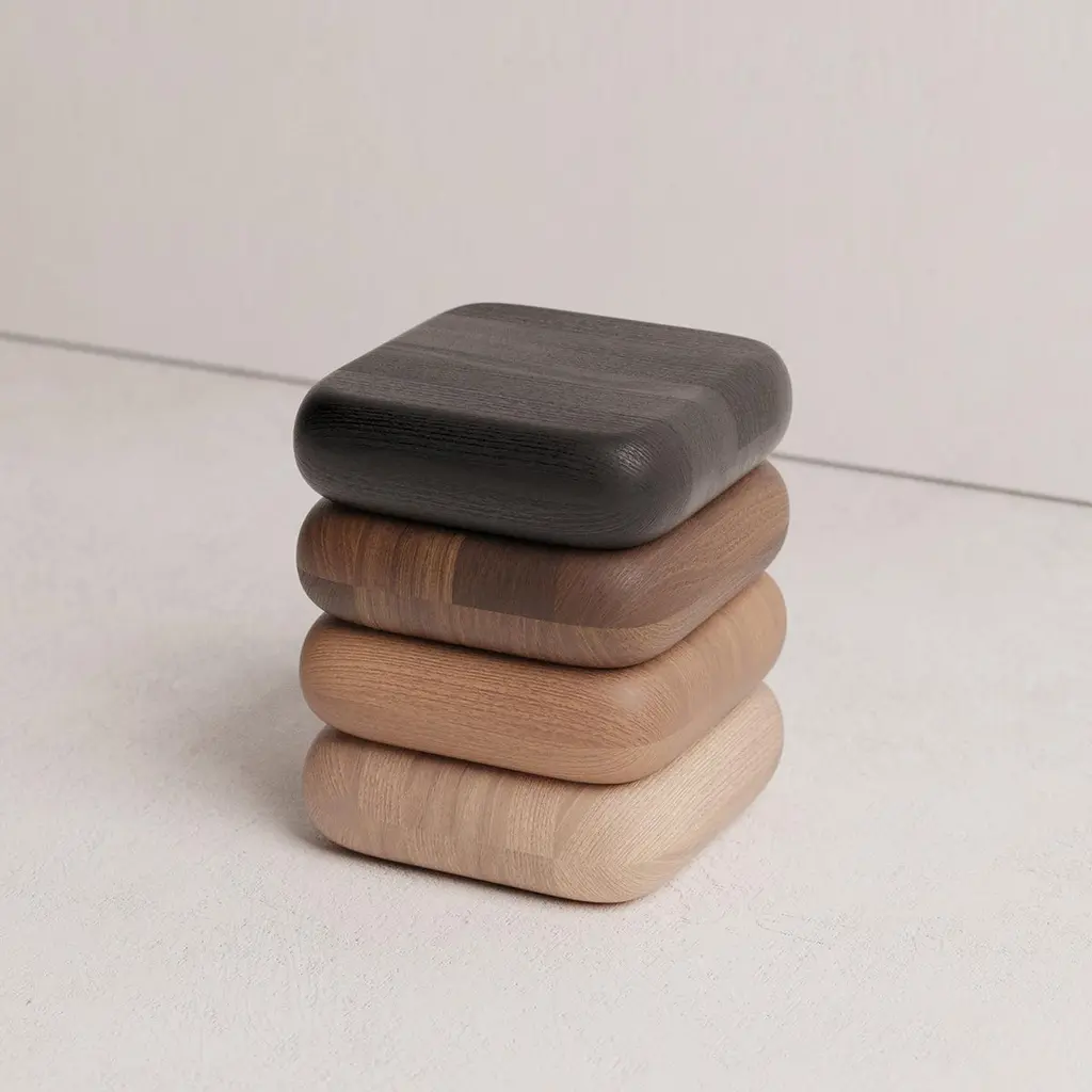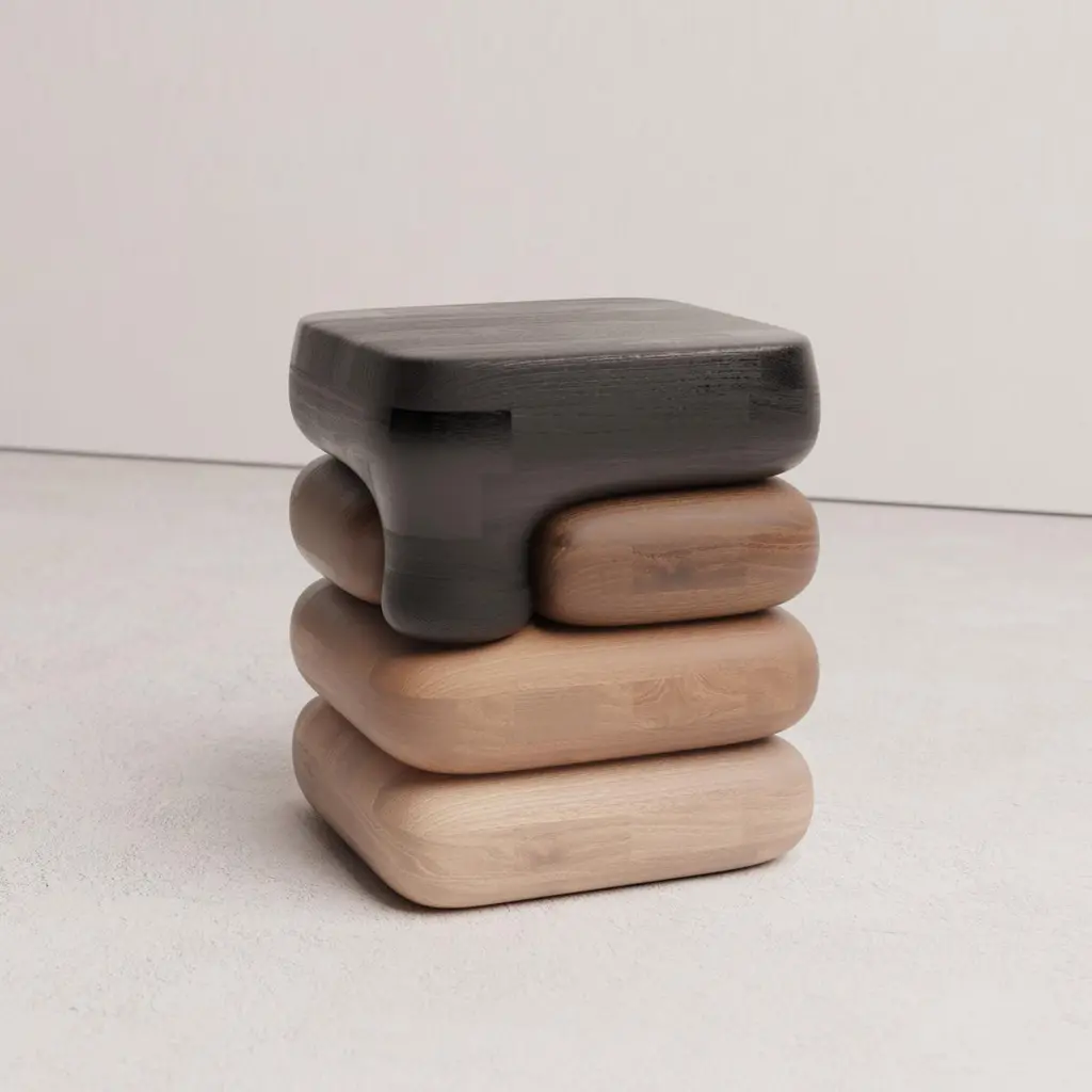 Gradient 02 Stool / Side Table by Luis GimenoDimensions: W 40 x D 40 x H 50 cmMaterials: Black Stained Oak, Chestnut Wood, Ash Wood and Beech Wood. The idea behind this design was to highlight the natural colors of different woods creating a natural color scale. Due to its size and weight, it is a piece that is designed to occupy a special place in the house and not be moved. Beeing a hand made product made of wood, there can be differences between each item, in color and wood grain.About: Luis Gimeno is a furniture and lighting designer driven by a passion for creating thoughtful, timeless, and unique pieces. His design philosophy is both fun and functional, rooted in the belief that great design should transcend trends and seasons. Instead of mass production, he focuses on quality-driven, low-impact processes that prioritize craftsmanship and sustainability. Each piece is made to measure, ensuring durability and individuality. Inspired by the bold, organic forms of 60s and 70s design, Luis explores playful yet balanced aesthetics, using harmonious and natural color palettes to create graceful, inviting spaces. His work embraces natural materials—sand, glass, and wood—always considering both social and environmental responsibility. Each piece its meant to resonate with an aspect of himself and hopefully others, helping others creating their ideal home.All our lamps can be wired according to each country. If sold to the USA it will be wired for the USA for instance.