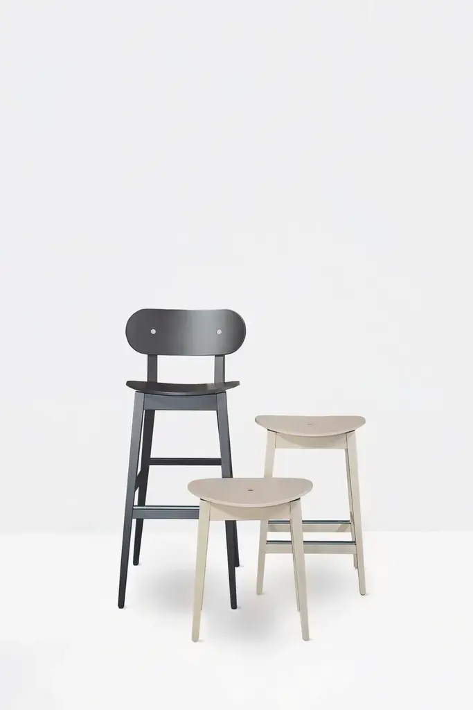 Gradisca 617 is a low stool with a beech wood frame.Gradisca is a collection that synthesizes the traditional values of the chair district—productivity and practicality—through lively lines and new production techniques. It is an example of how Friuli-made chairs can be transformed into universal objects.