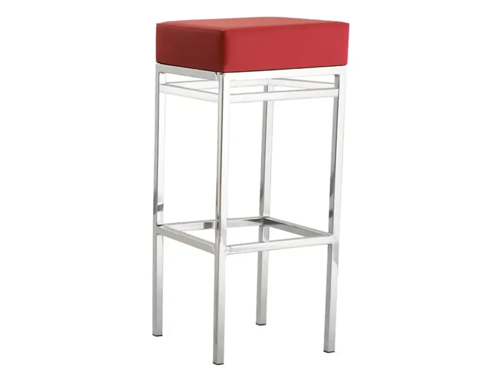 Decisive and clear lines for a minimal design. The frame can be in chrome or painted in many colours, the seat can be in wood or padded and cover with eco-leather or fabric