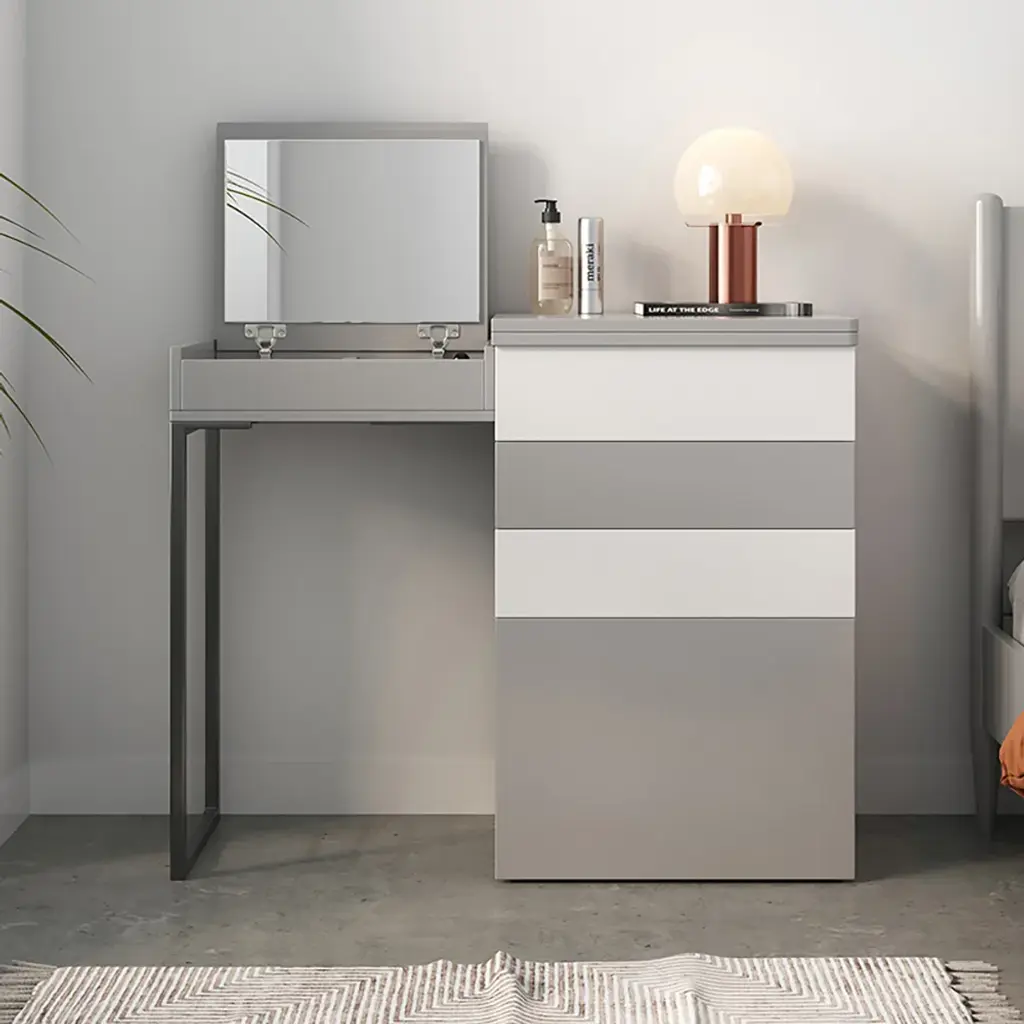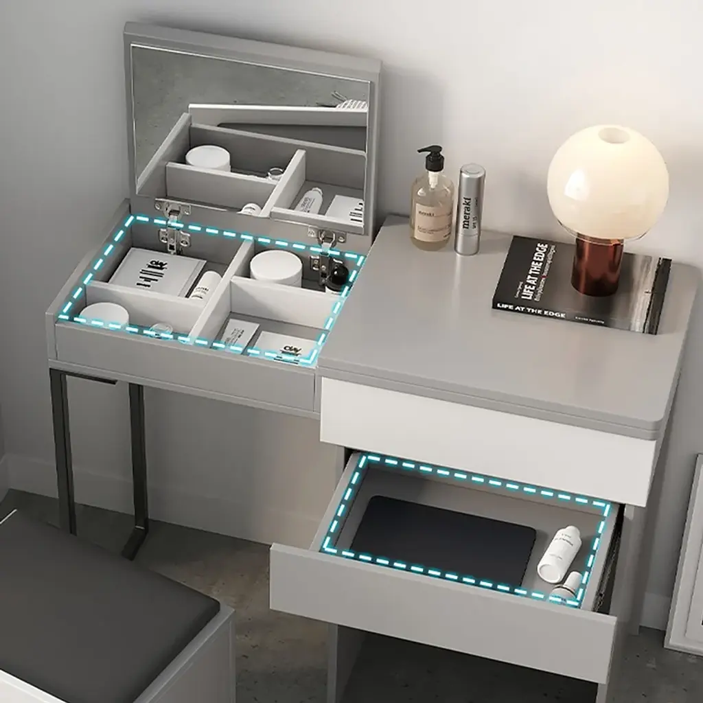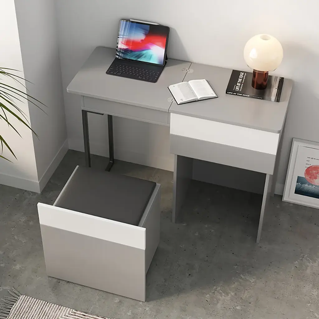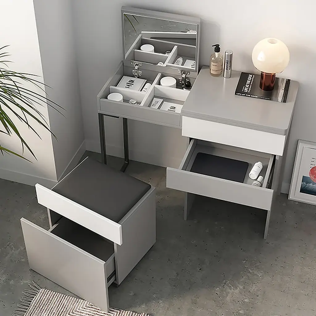 Gray Makeup Vanity With Mirror Foldable Dressing Table With Stool & Hidden Drawer